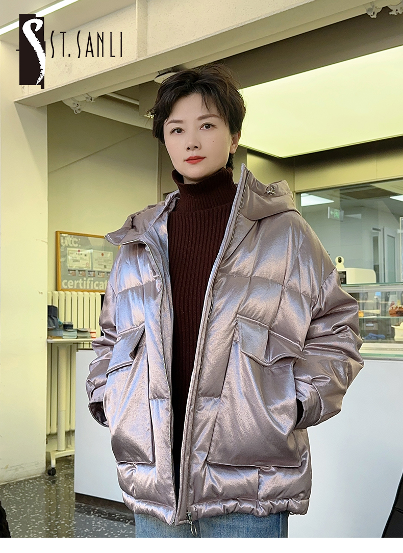 圣三利女装新秋冬季连帽短款休闲羽绒服SL121S01