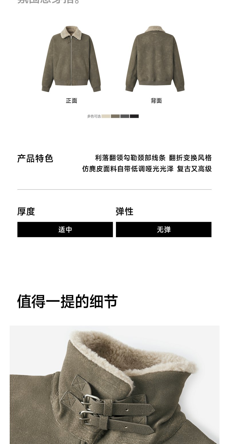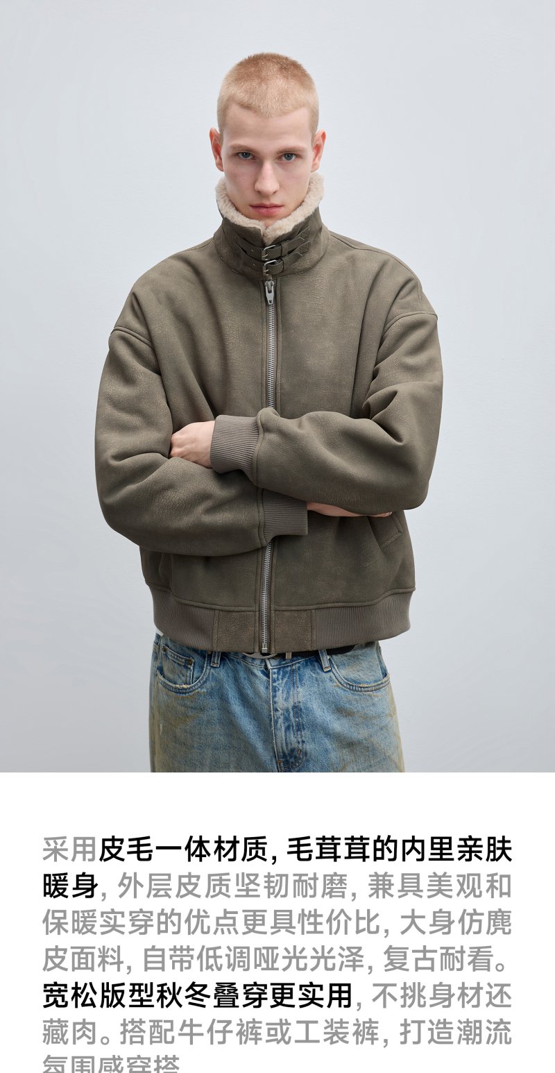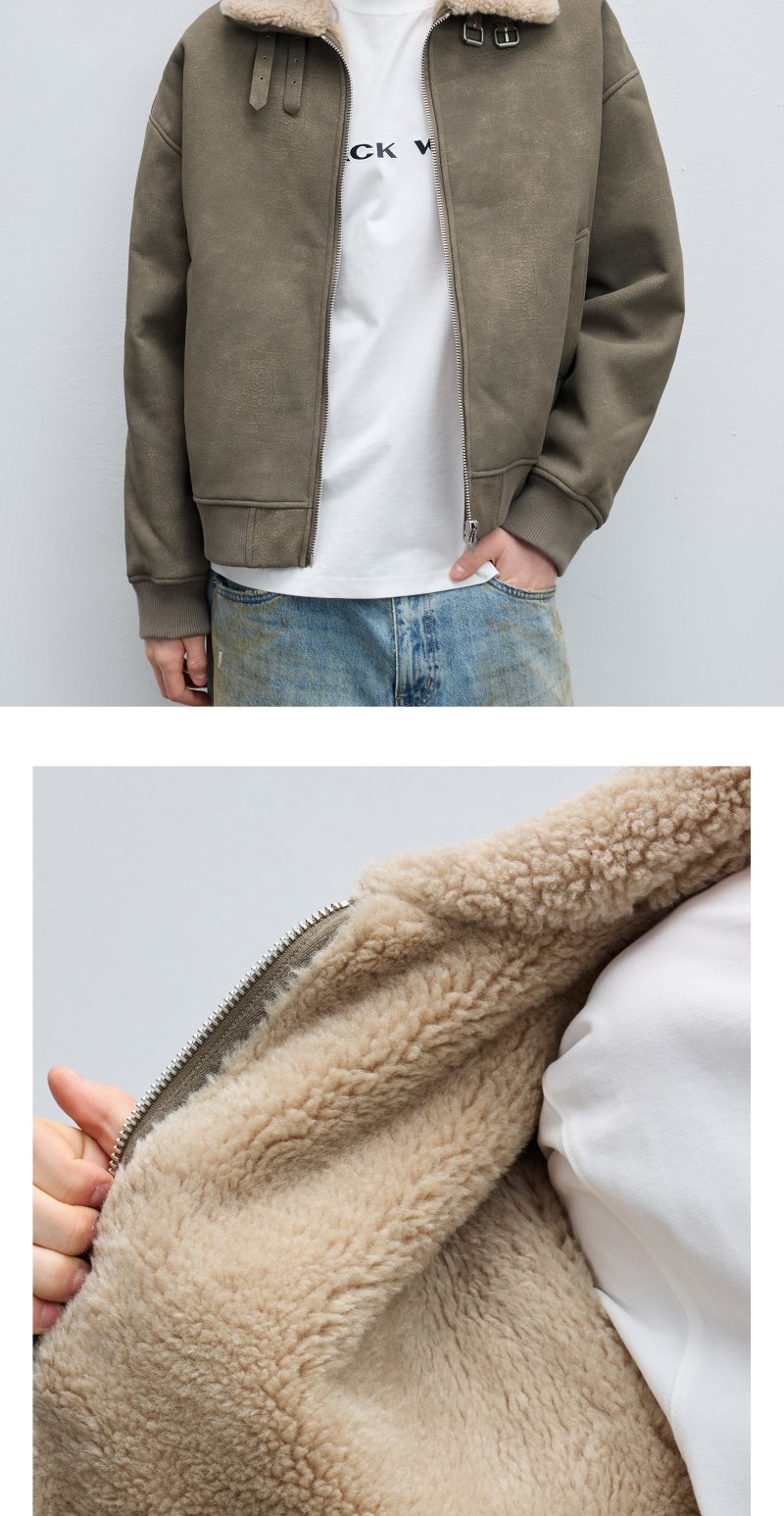 CHINISM赤尘 皮毛一体仿麂皮棉服男冬季毛领棉衣加厚羊羔绒外套
