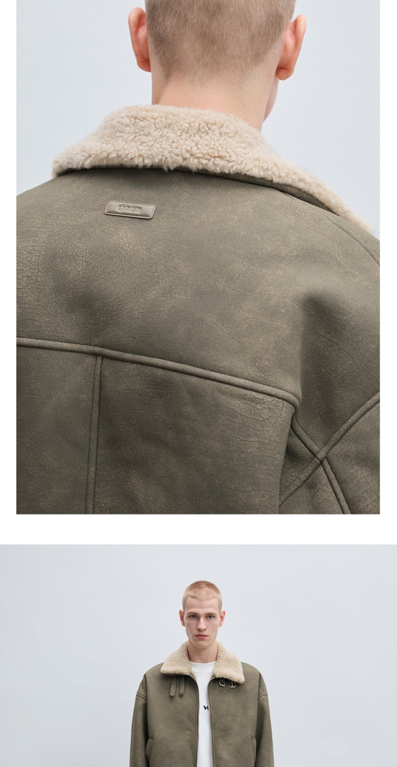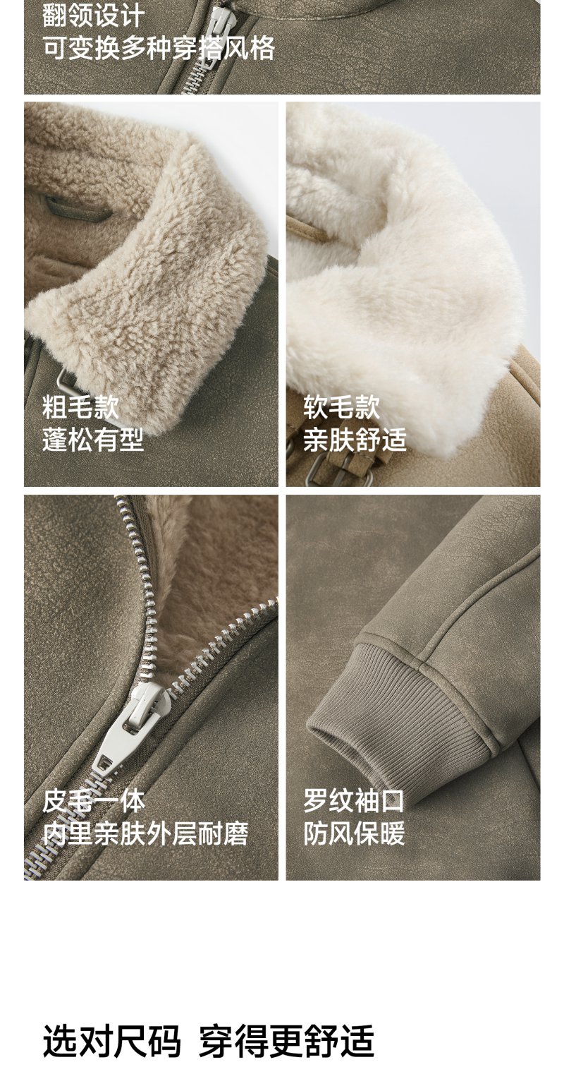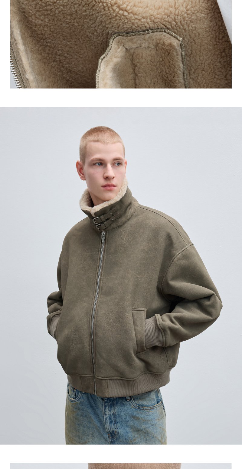 CHINISM赤尘 皮毛一体仿麂皮棉服男冬季毛领棉衣加厚羊羔绒外套