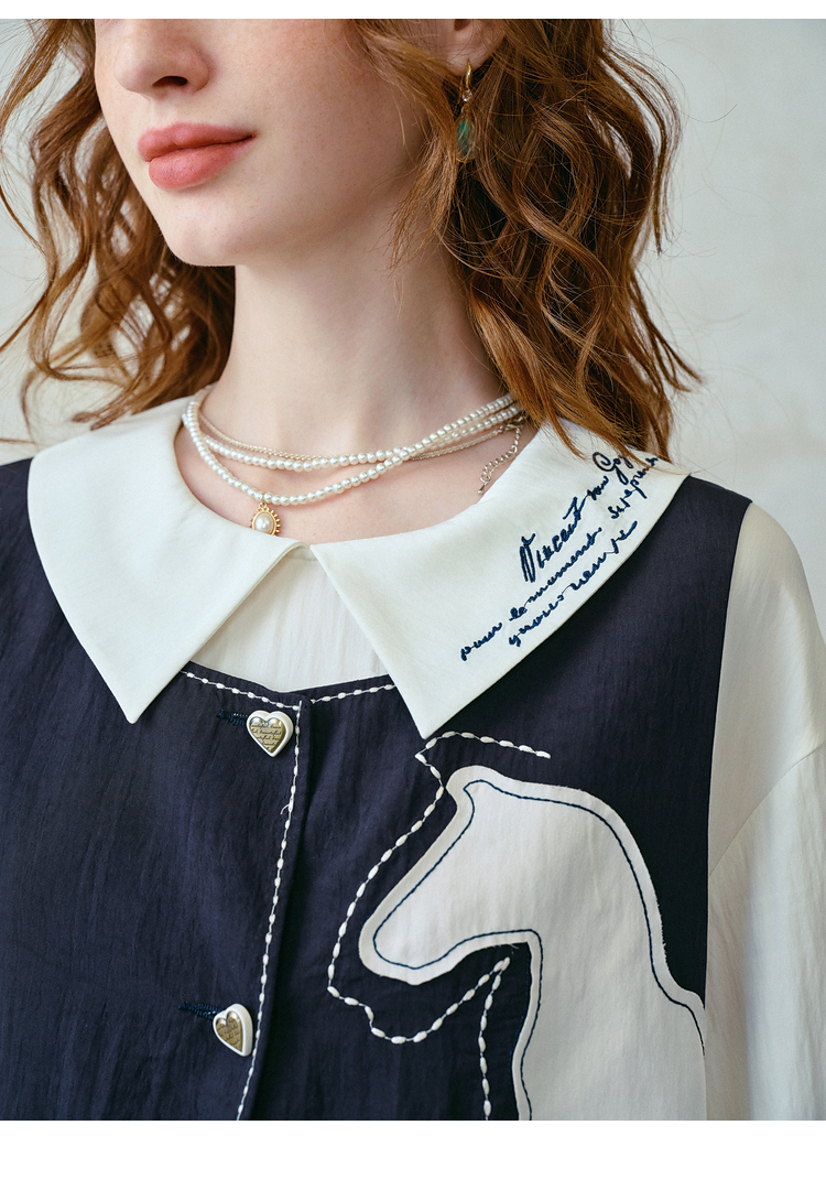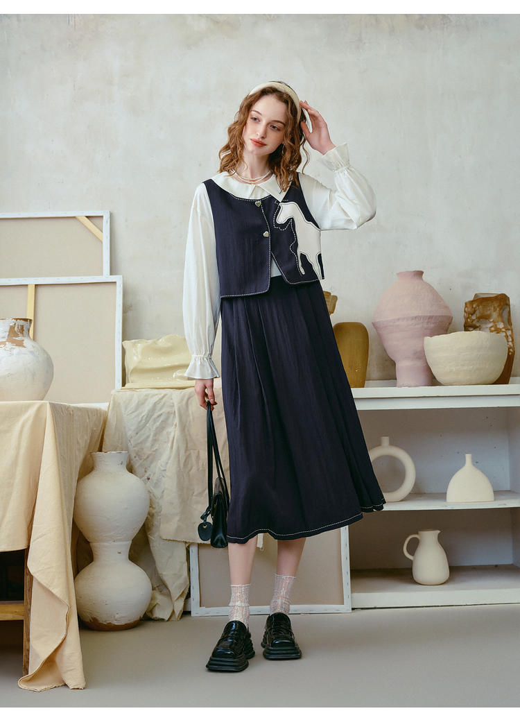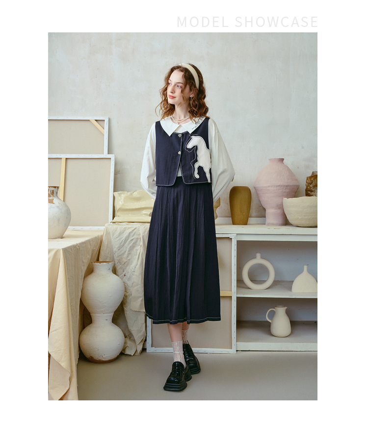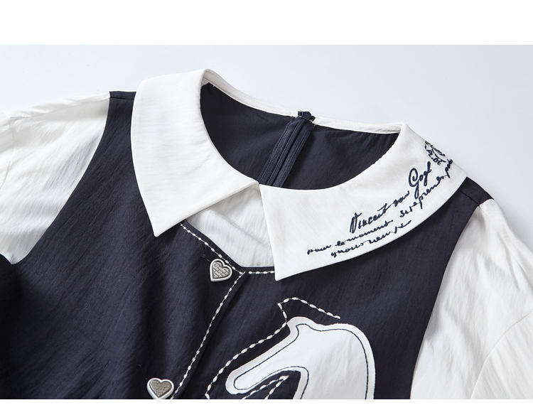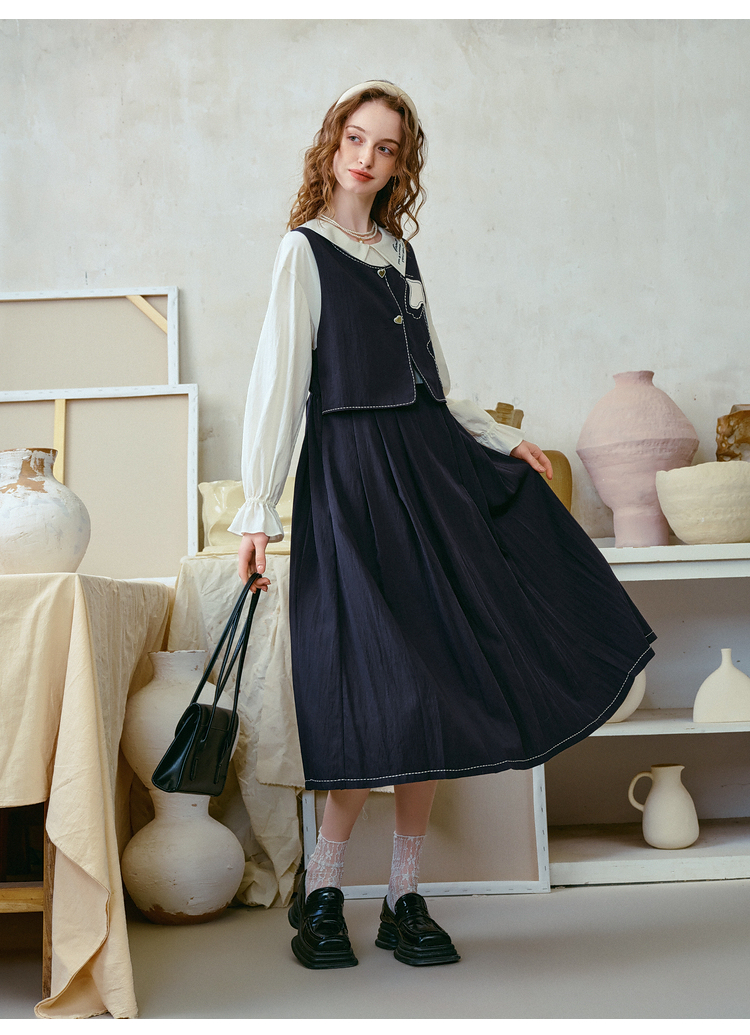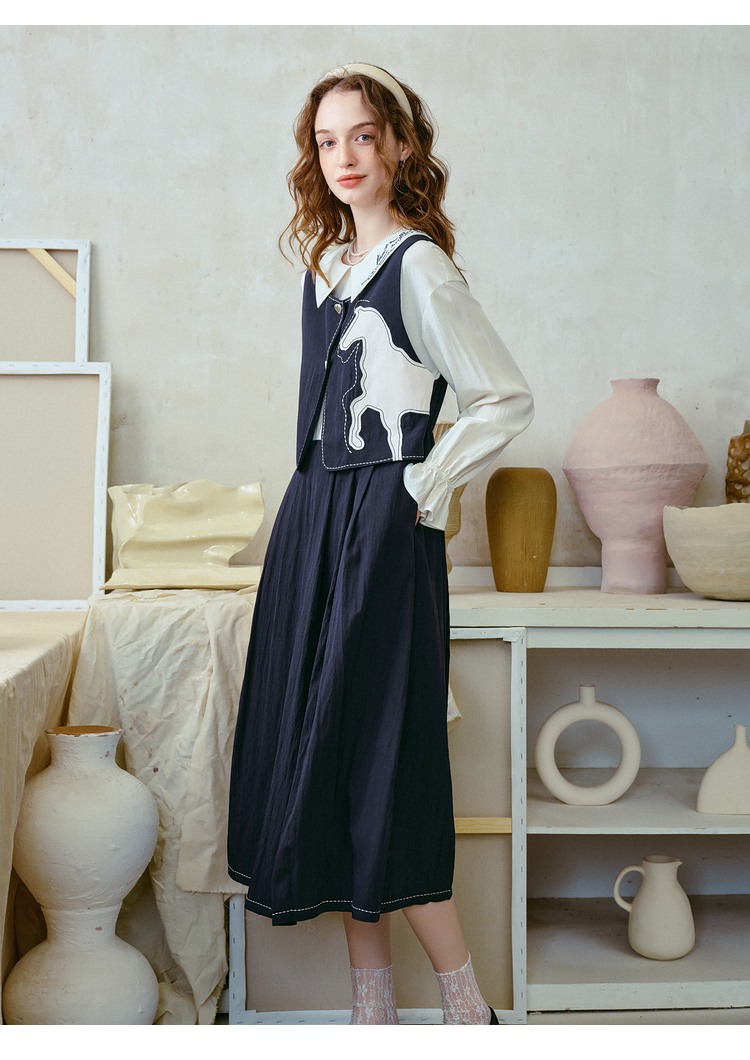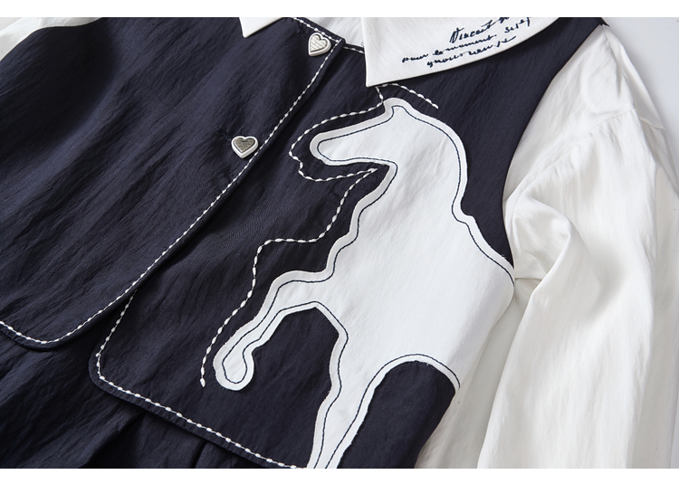 两三事梵高文艺 永夜无形 2026春季新款复古贴布绣假两件连衣裙