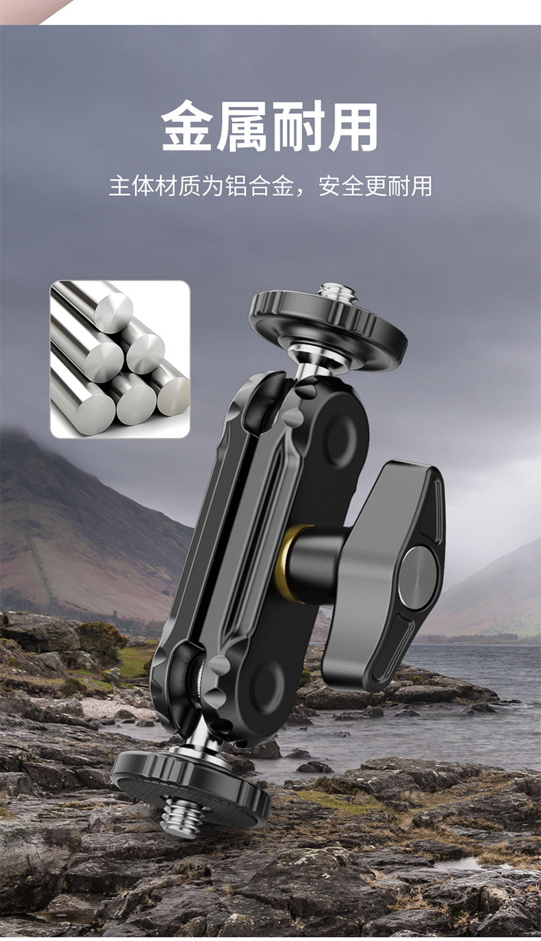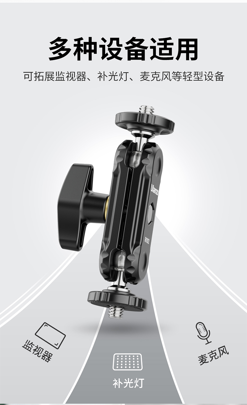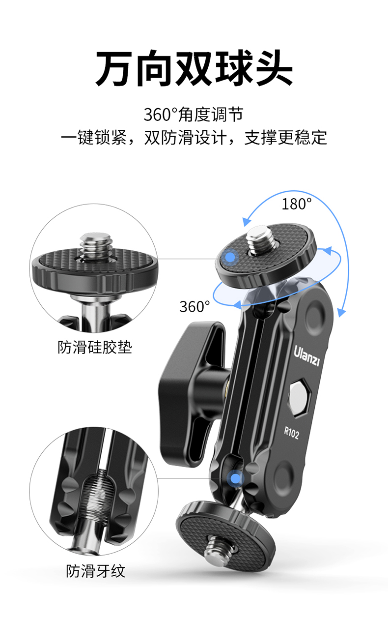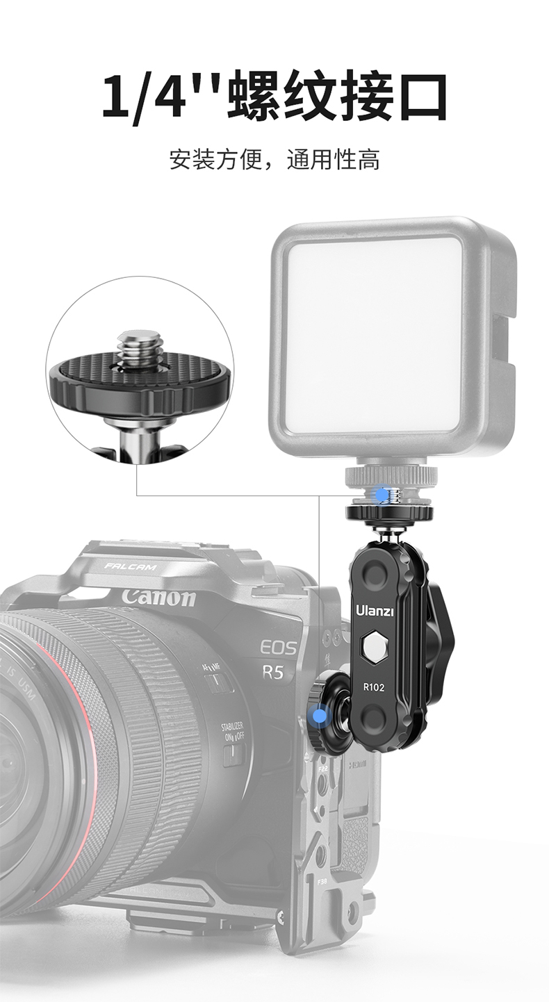 Ulanzi优篮子 R102金属豌豆荚万向魔术手双球头拓展监视器补光灯麦克风迷你便携摄影机配件支架