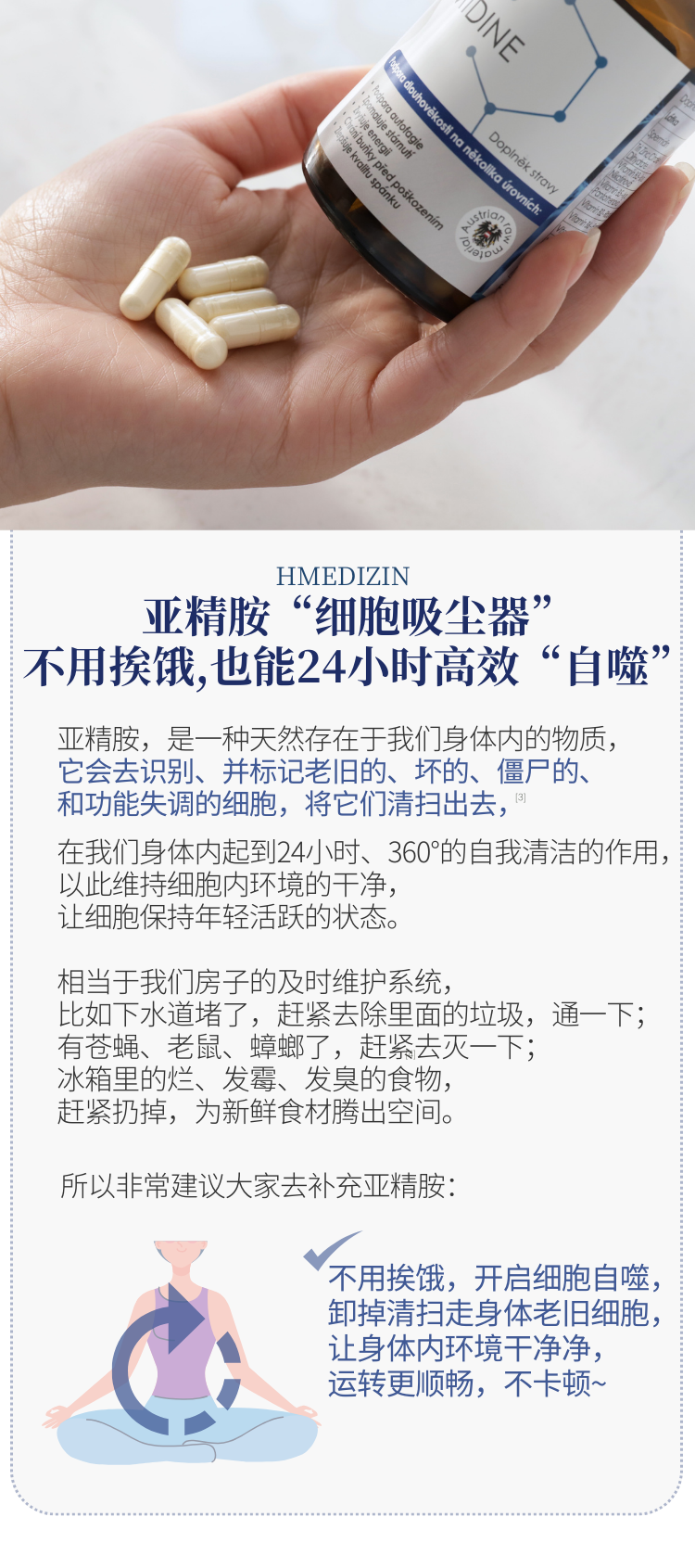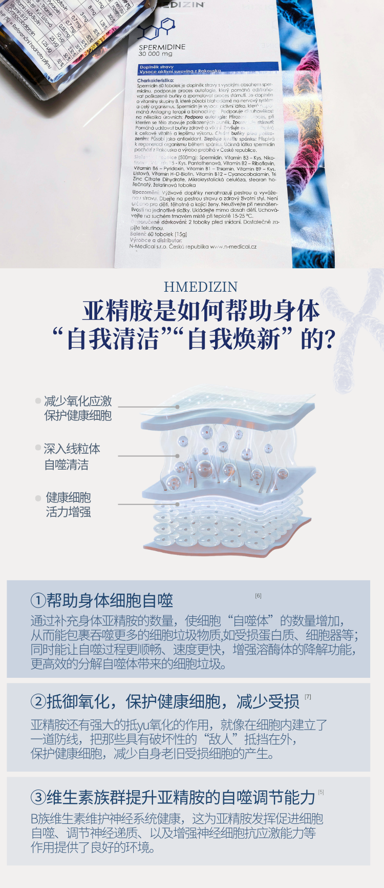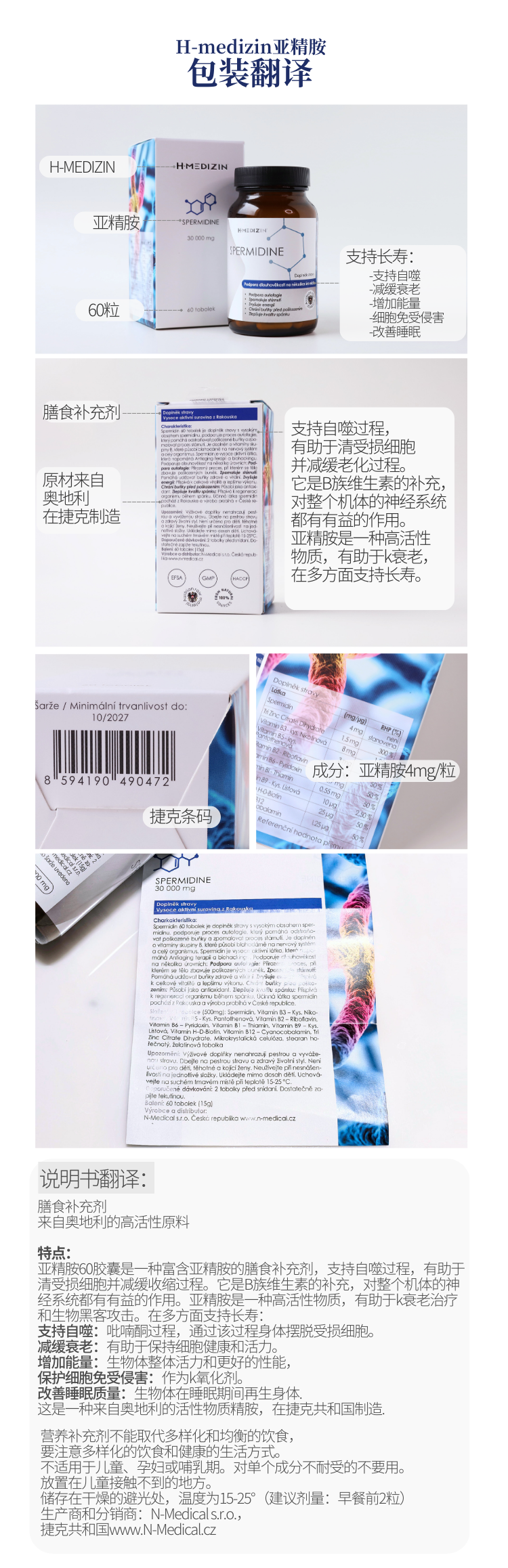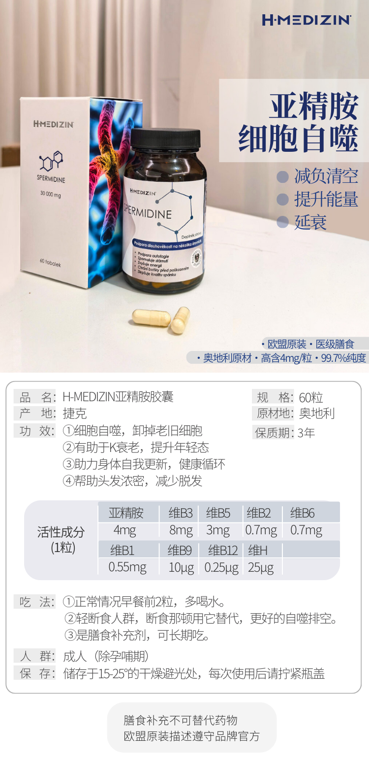 【细胞自噬 垃圾大扫除 身体干净】亚精胺胶囊60粒 捷克H-Medizin