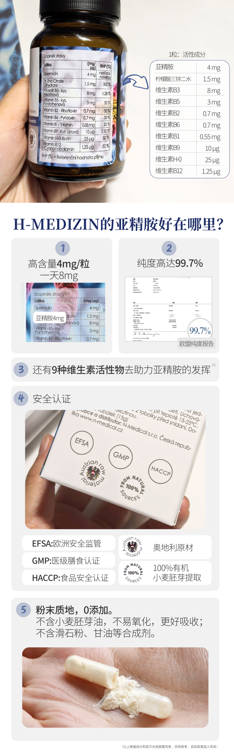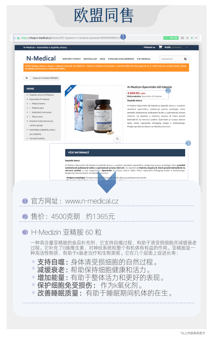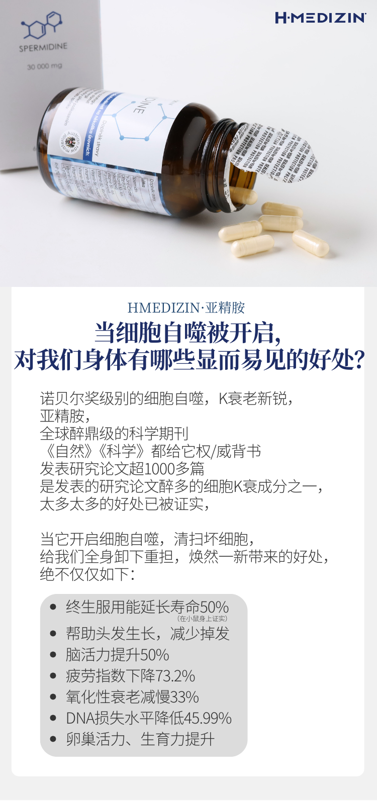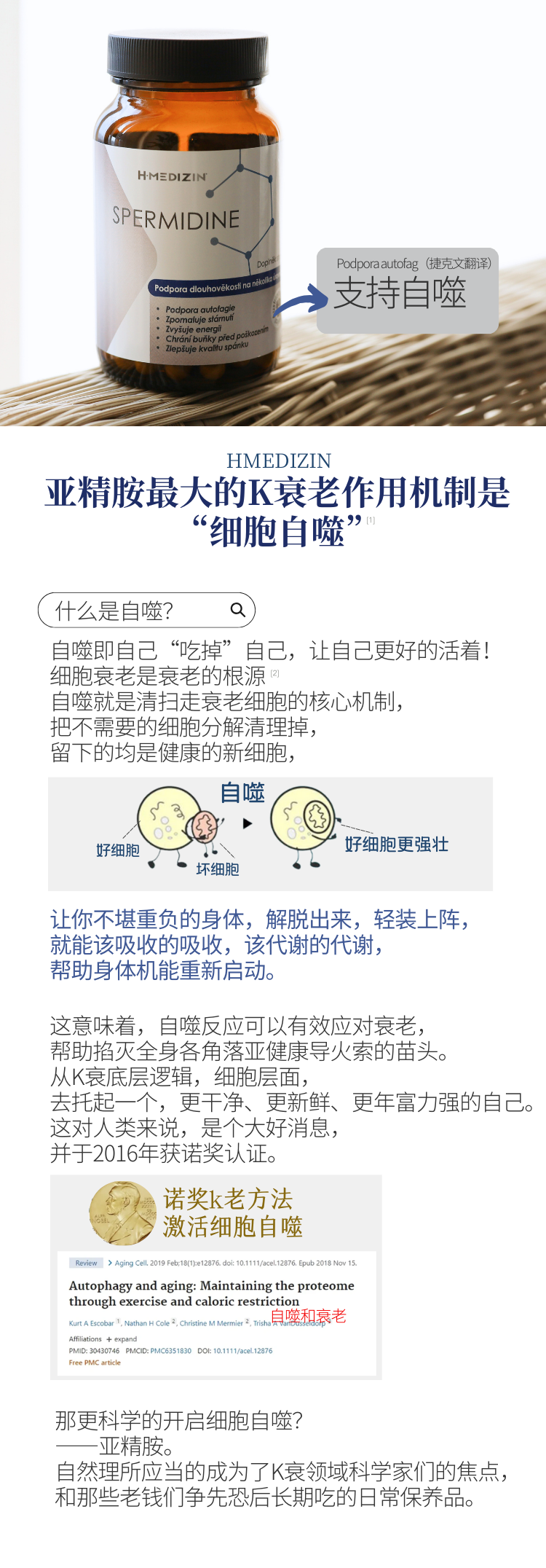 【细胞自噬 垃圾大扫除 身体干净】亚精胺胶囊60粒 捷克H-Medizin
