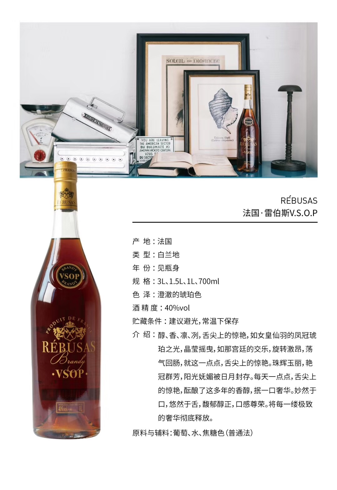 法国进口雷伯斯VSOP白兰地 700ml