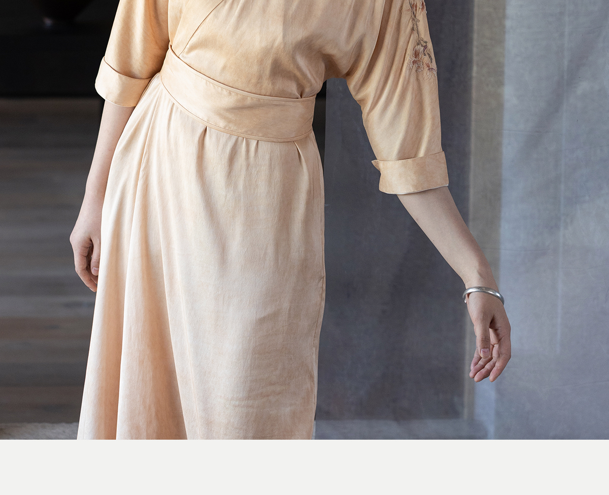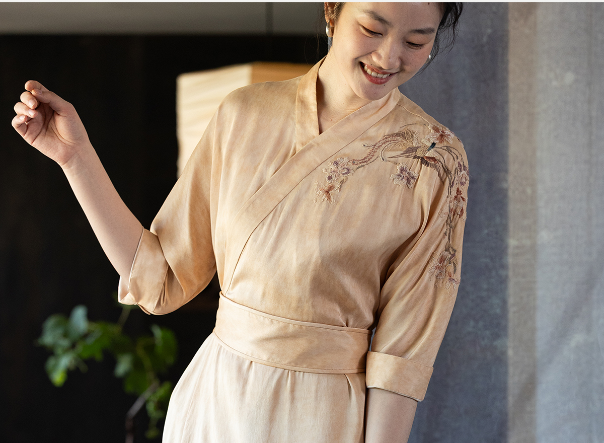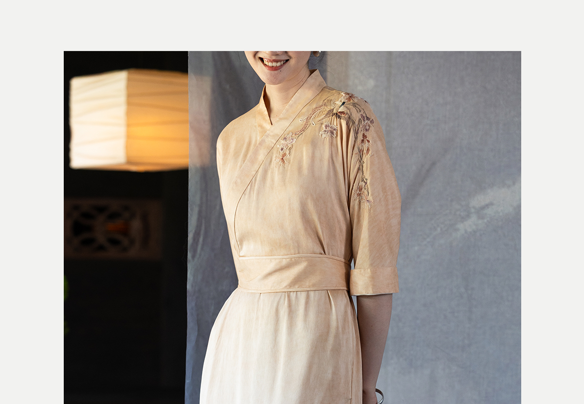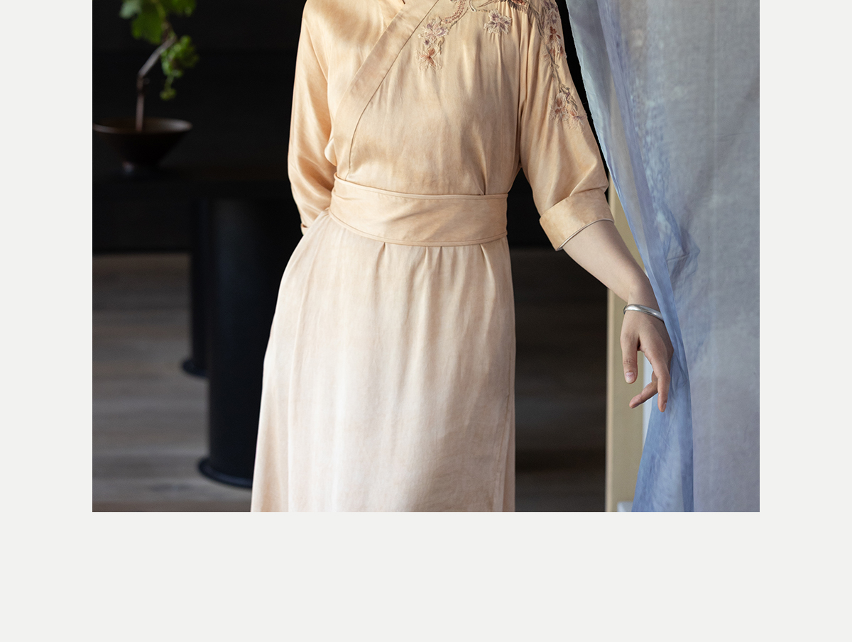 牧衣游原创 重磅22姆米精工手绣真丝连衣裙新中式长裙礼服 月胧明