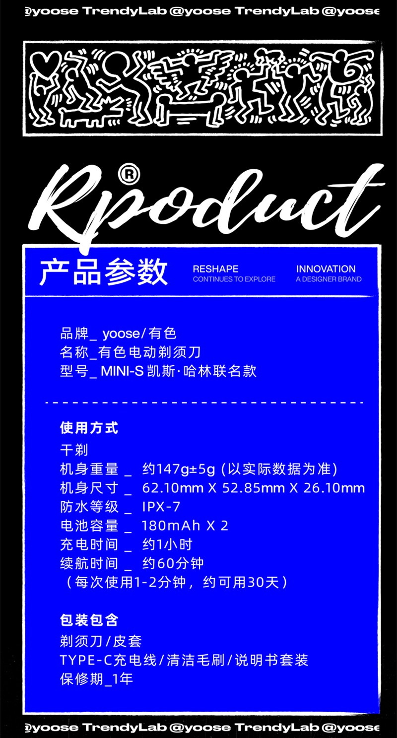 yoose有色 电动剃须刀MINI-S 凯斯·哈林联名款[福利品]