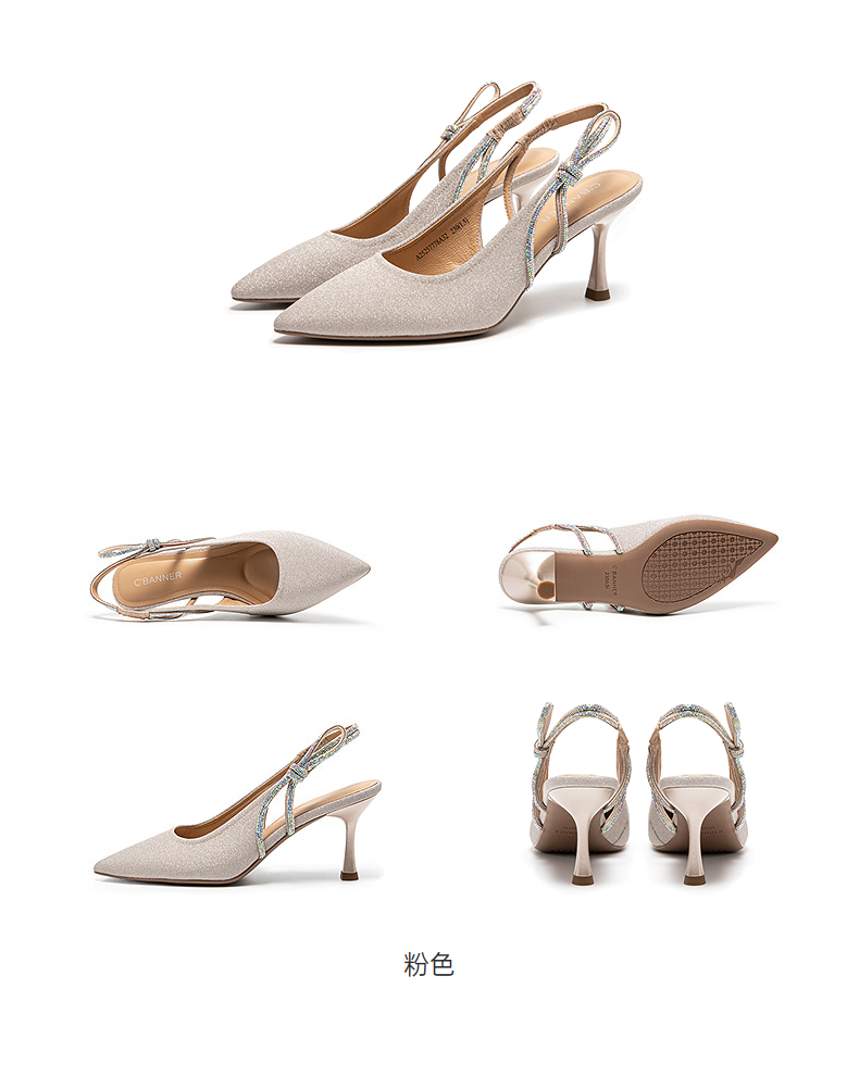 【静音系列】千百度细高跟鞋女包头后空绝美时装凉鞋A25257778