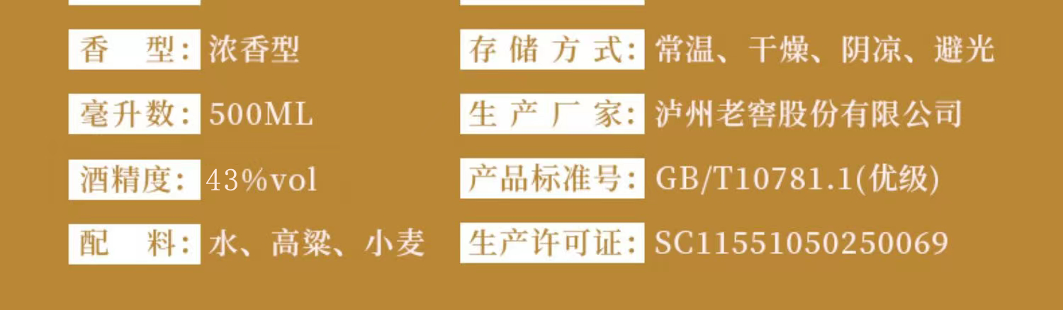 【泸州老窖官方形象店】38度中华老字号特曲(第九代) 500ml 浓香型