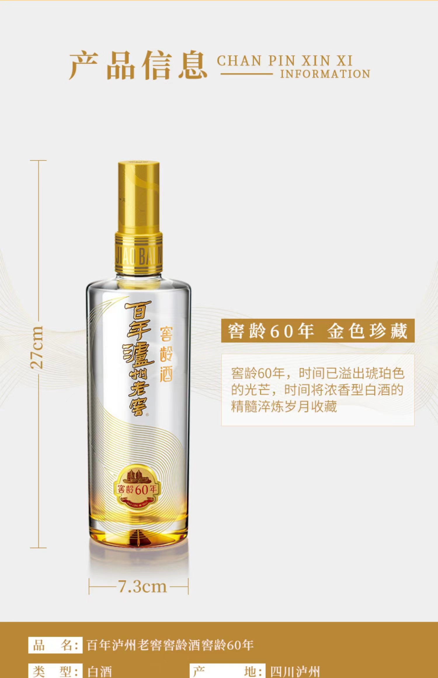 【泸州老窖官方形象店】43度百年泸州老窖窖龄酒60年 500ml 浓香型白酒