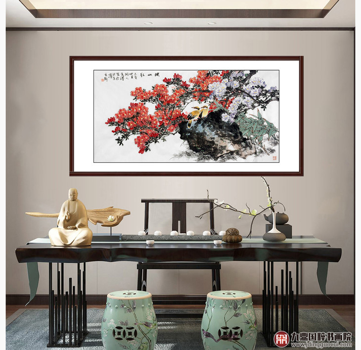 杨秀泽《映山红》68*138cm 花鸟横幅作品 书房/卧室挂画