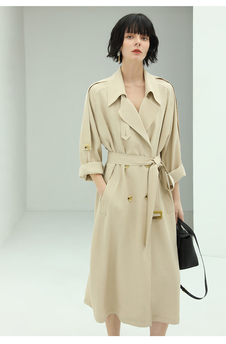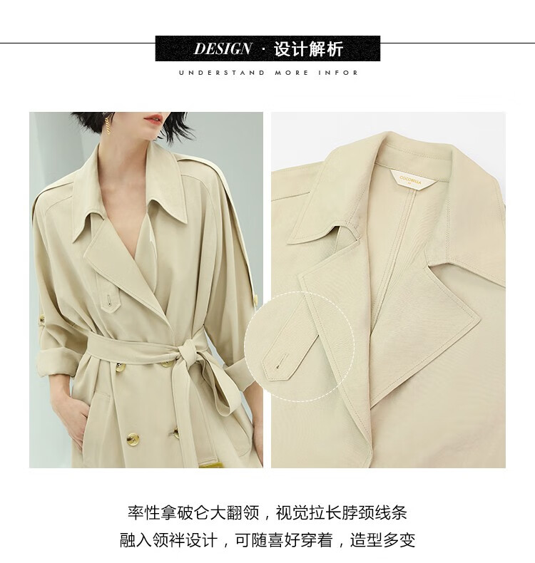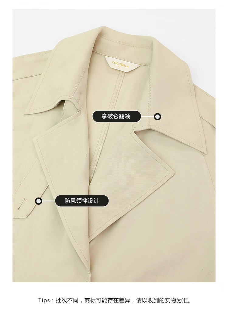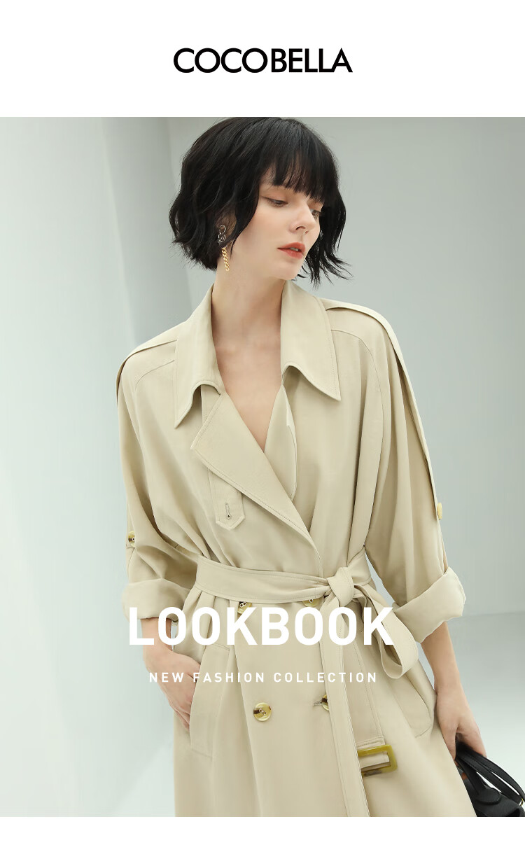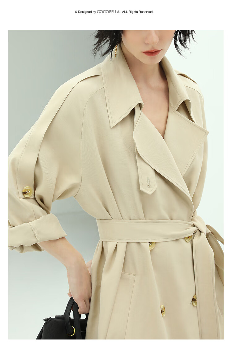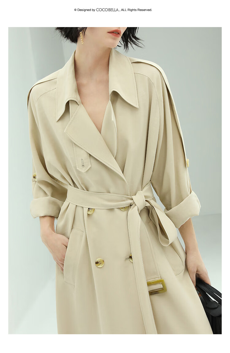 COCOBELLA纯色系气质双排扣风衣女秋知性都市长款外套WN500
