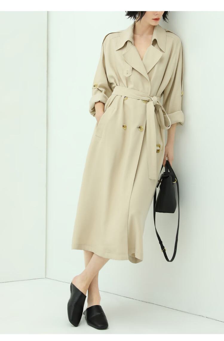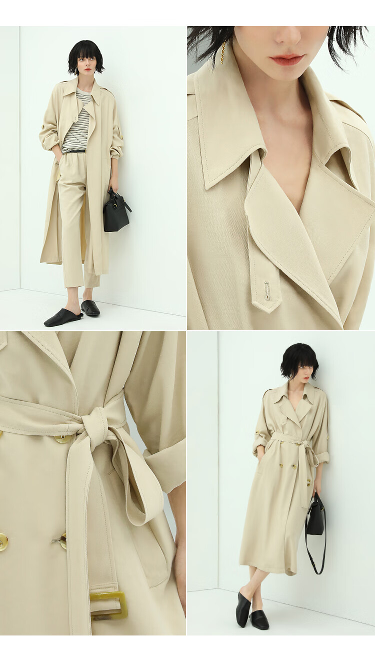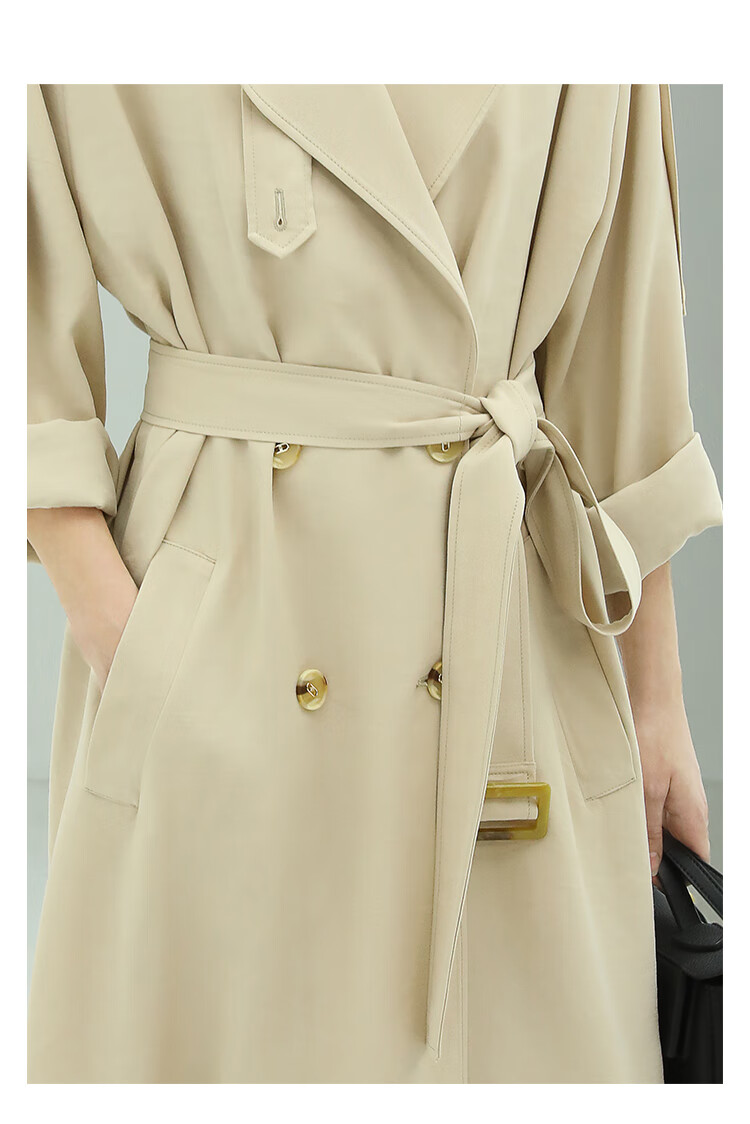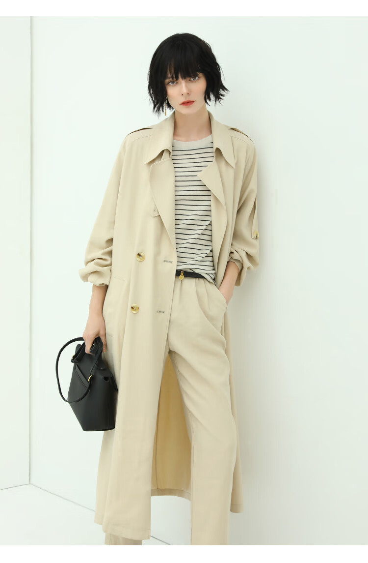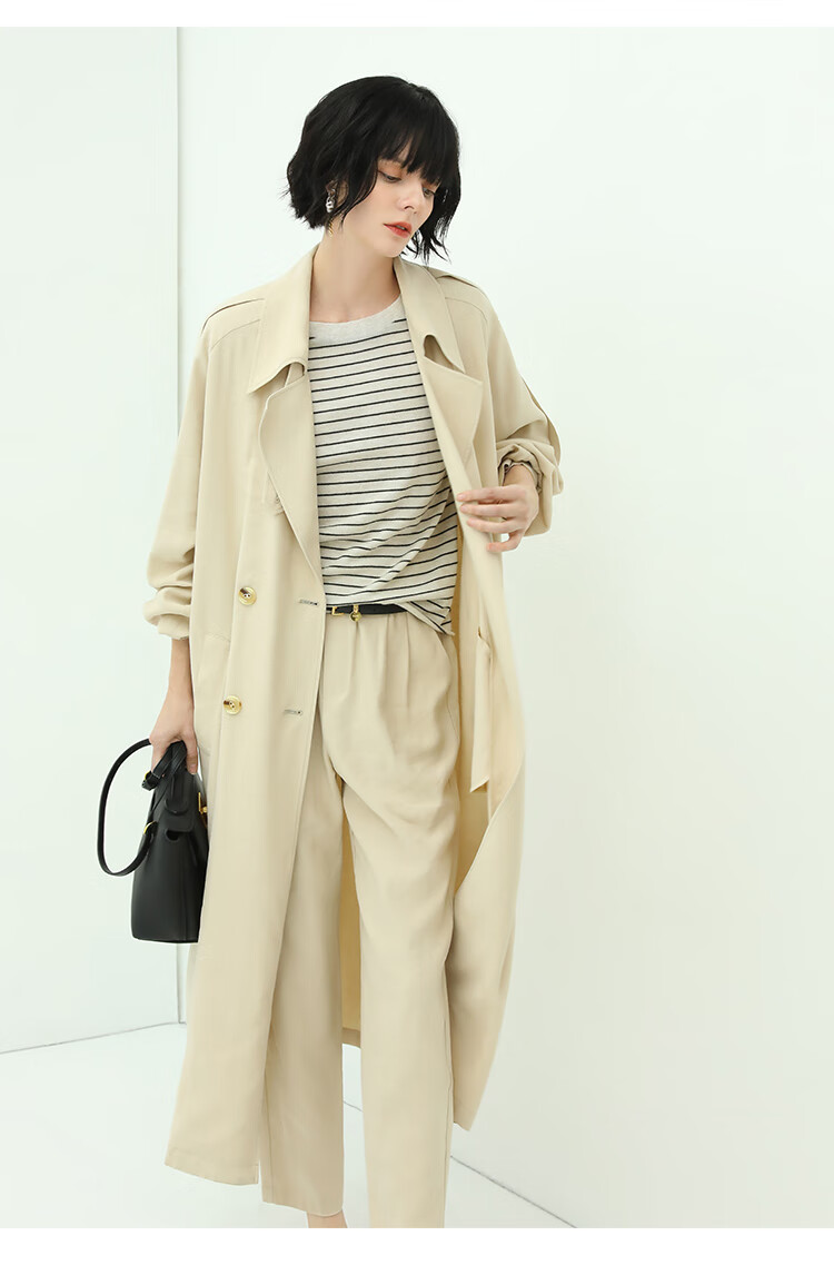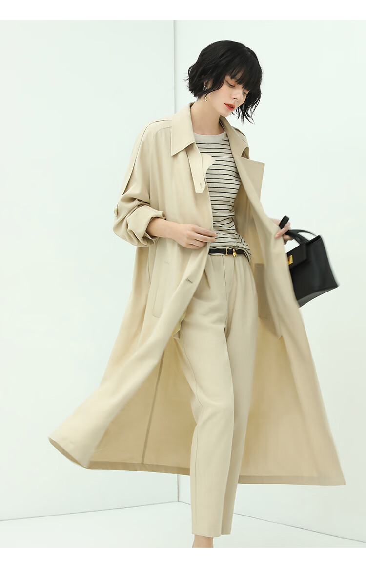 COCOBELLA纯色系气质双排扣风衣女秋知性都市长款外套WN500
