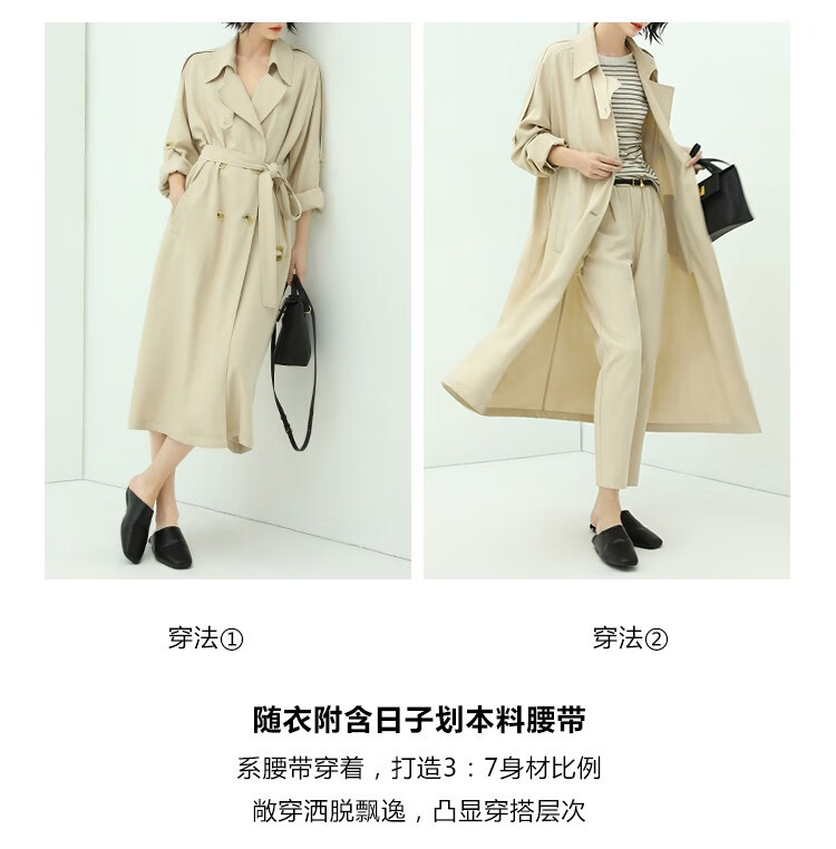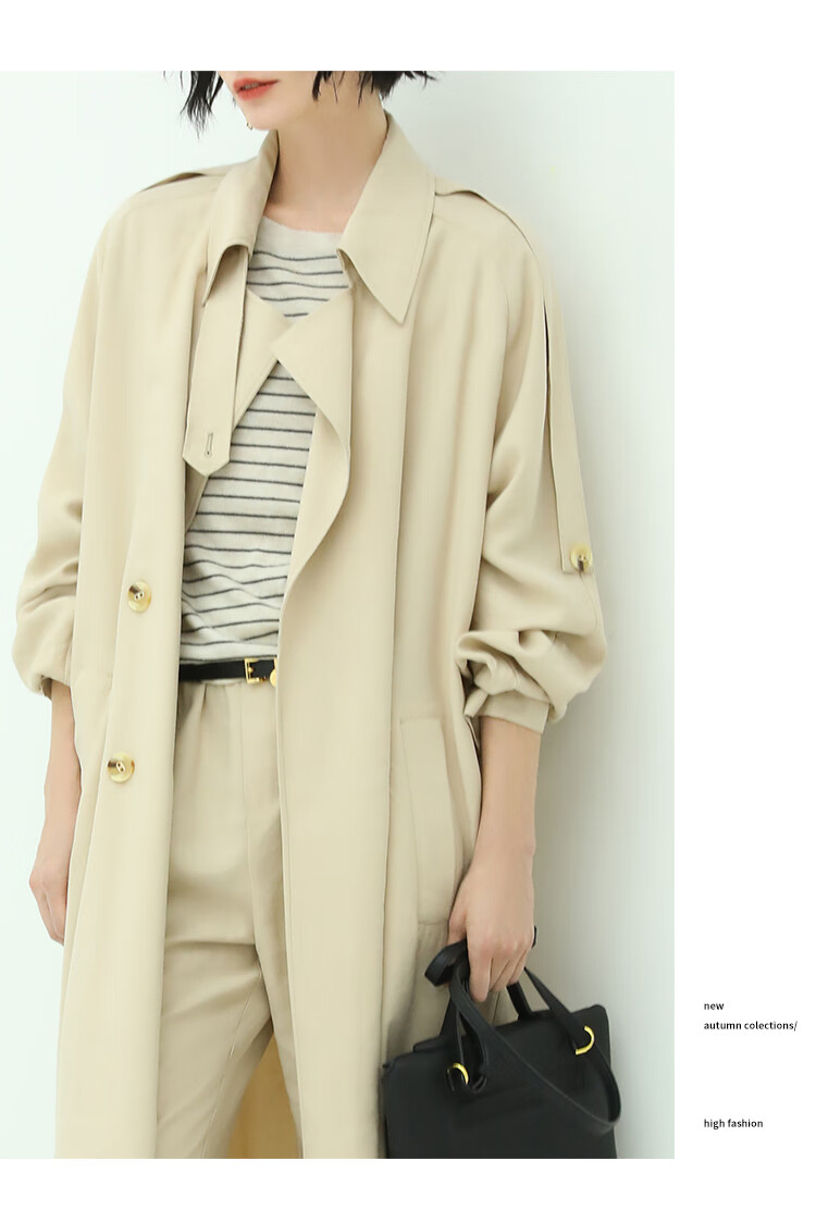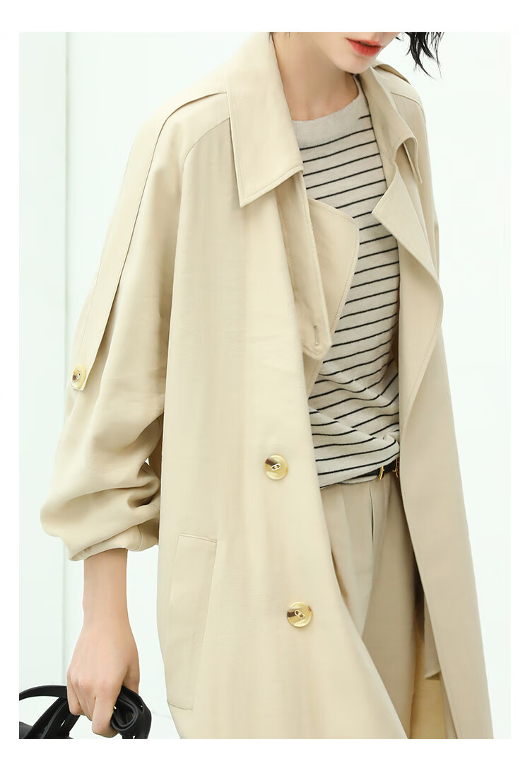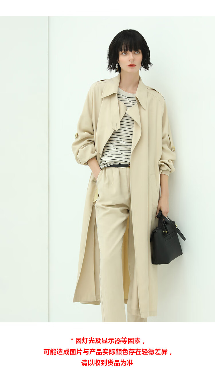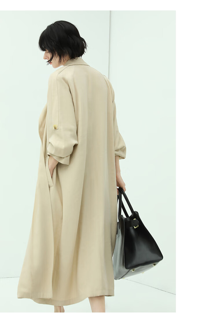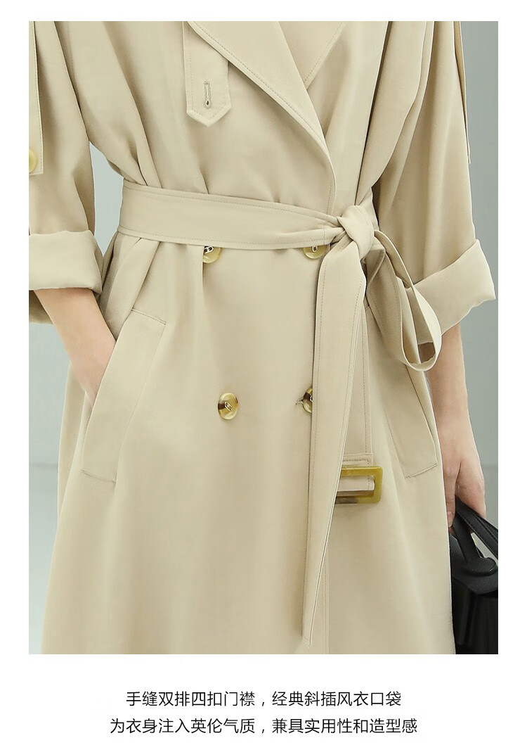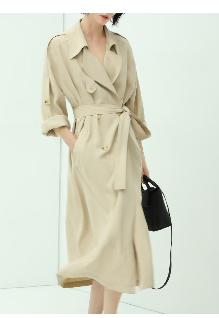 COCOBELLA纯色系气质双排扣风衣女秋知性都市长款外套WN500