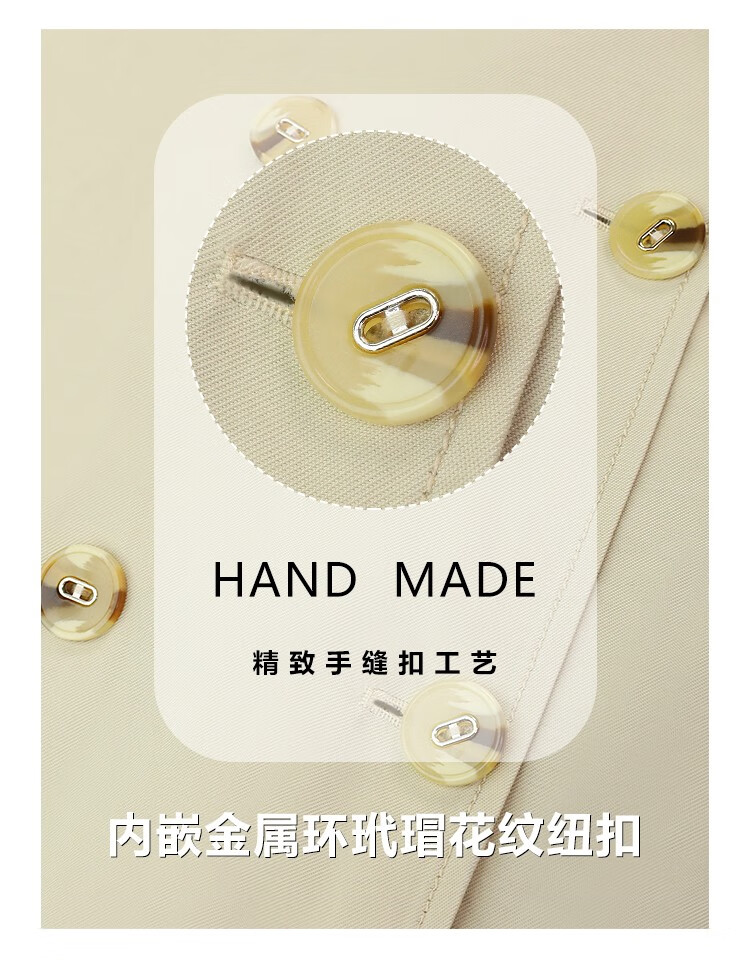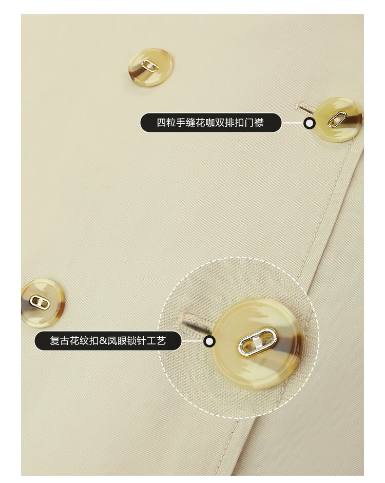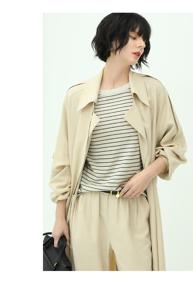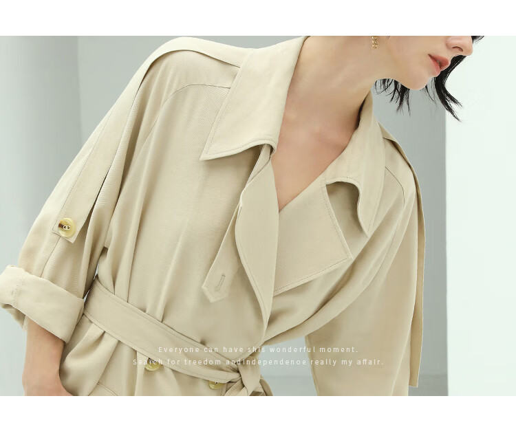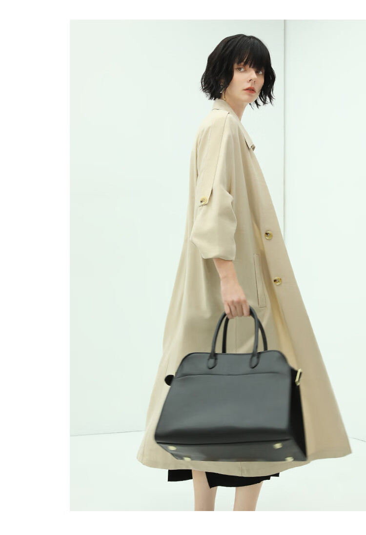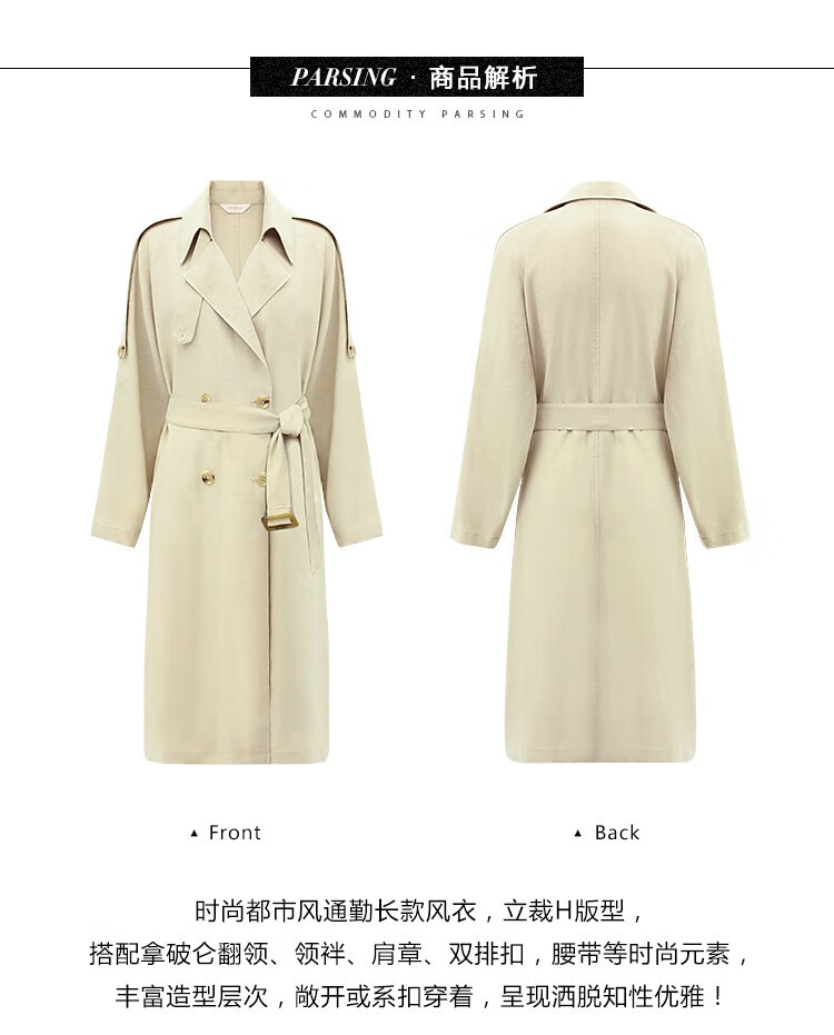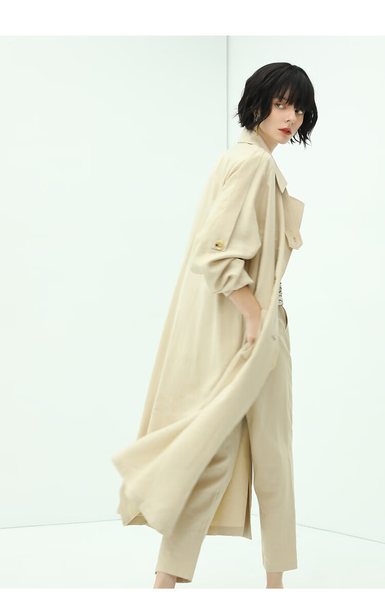 COCOBELLA纯色系气质双排扣风衣女秋知性都市长款外套WN500