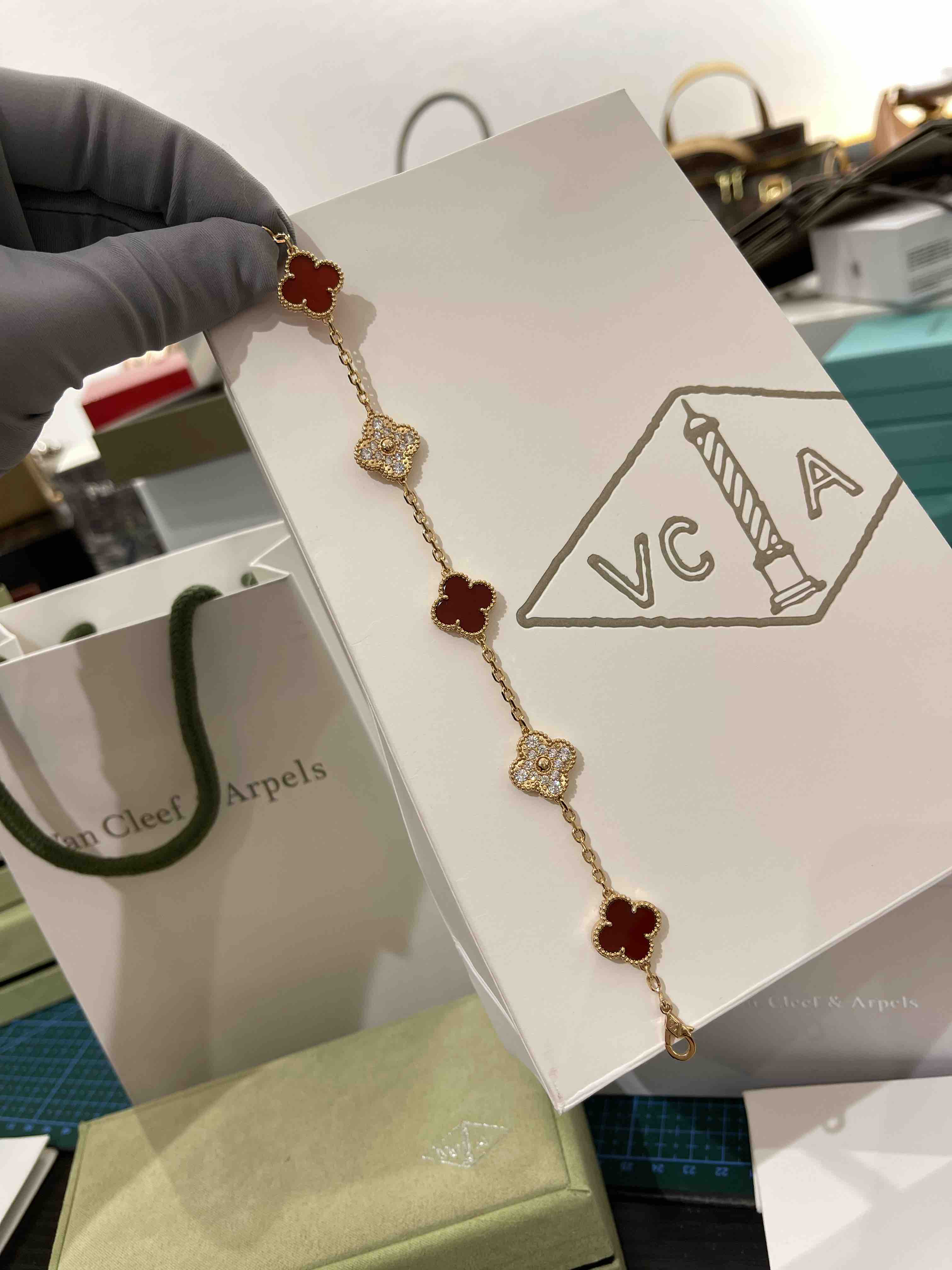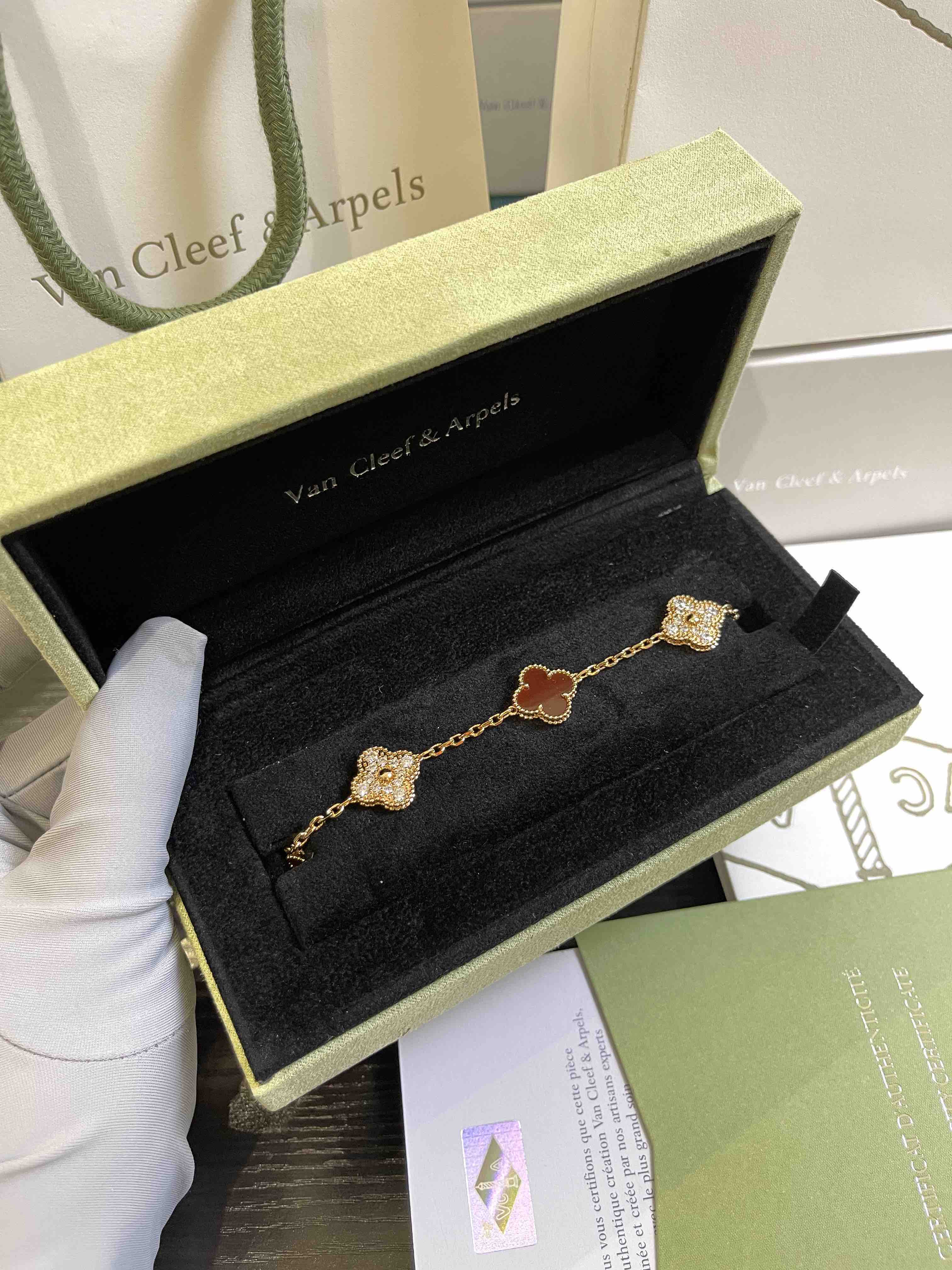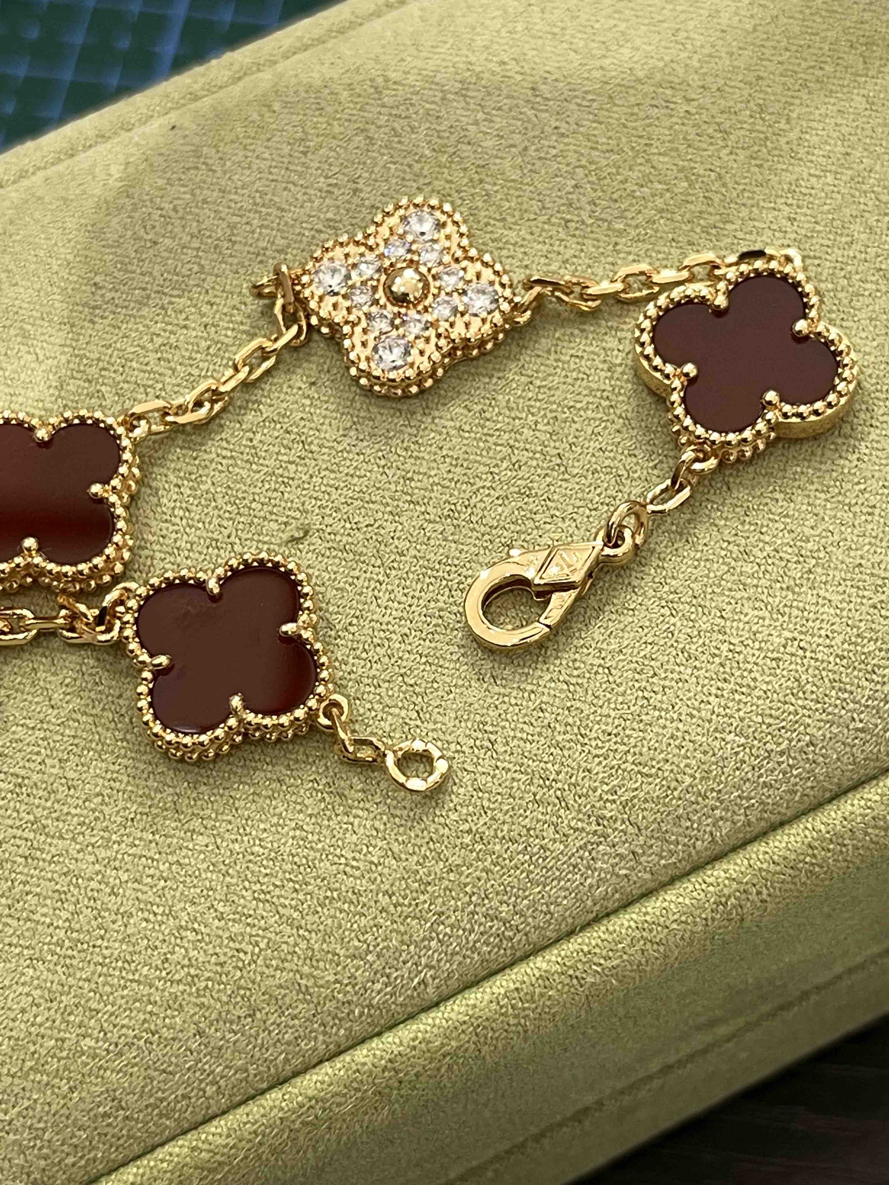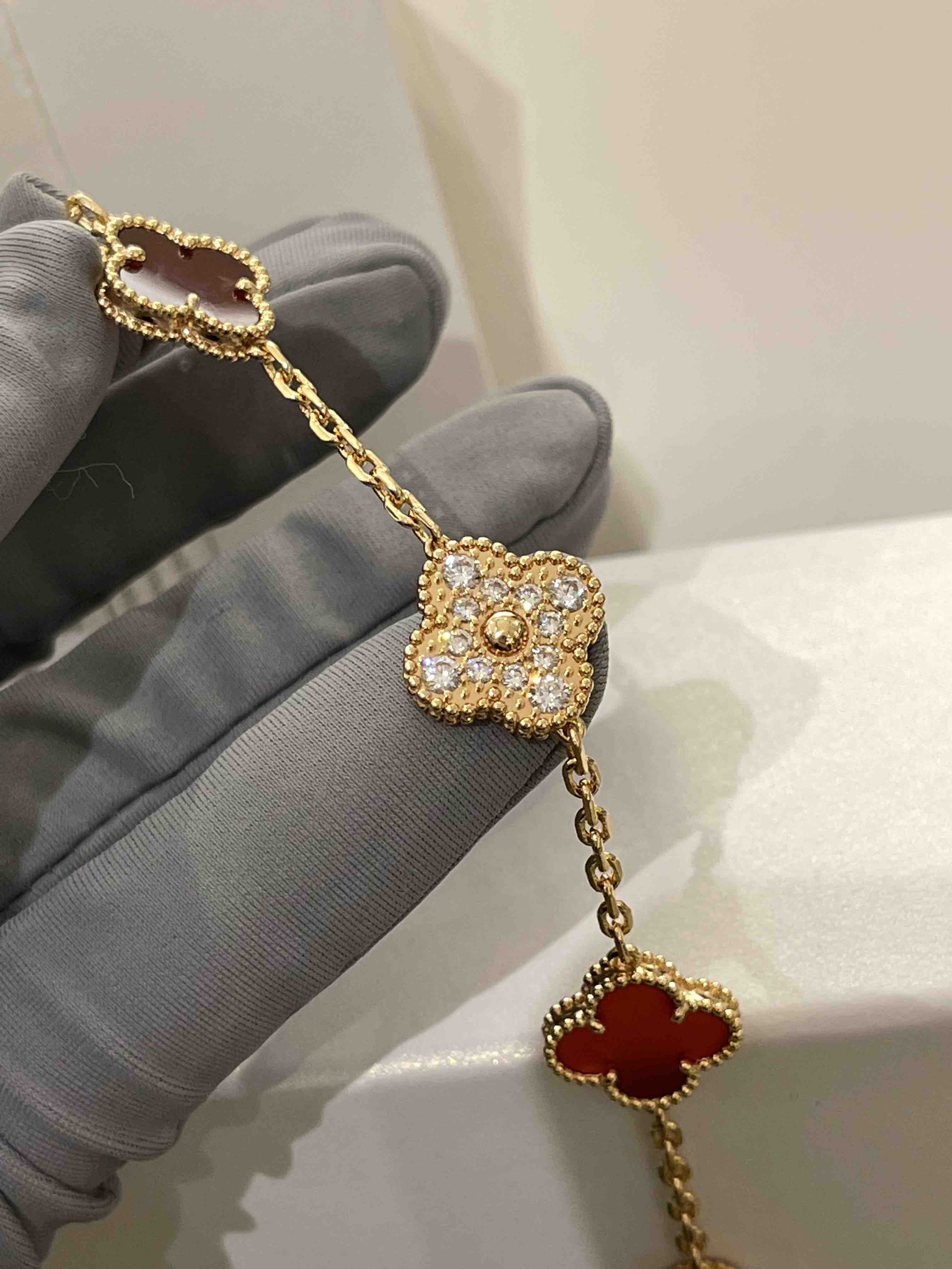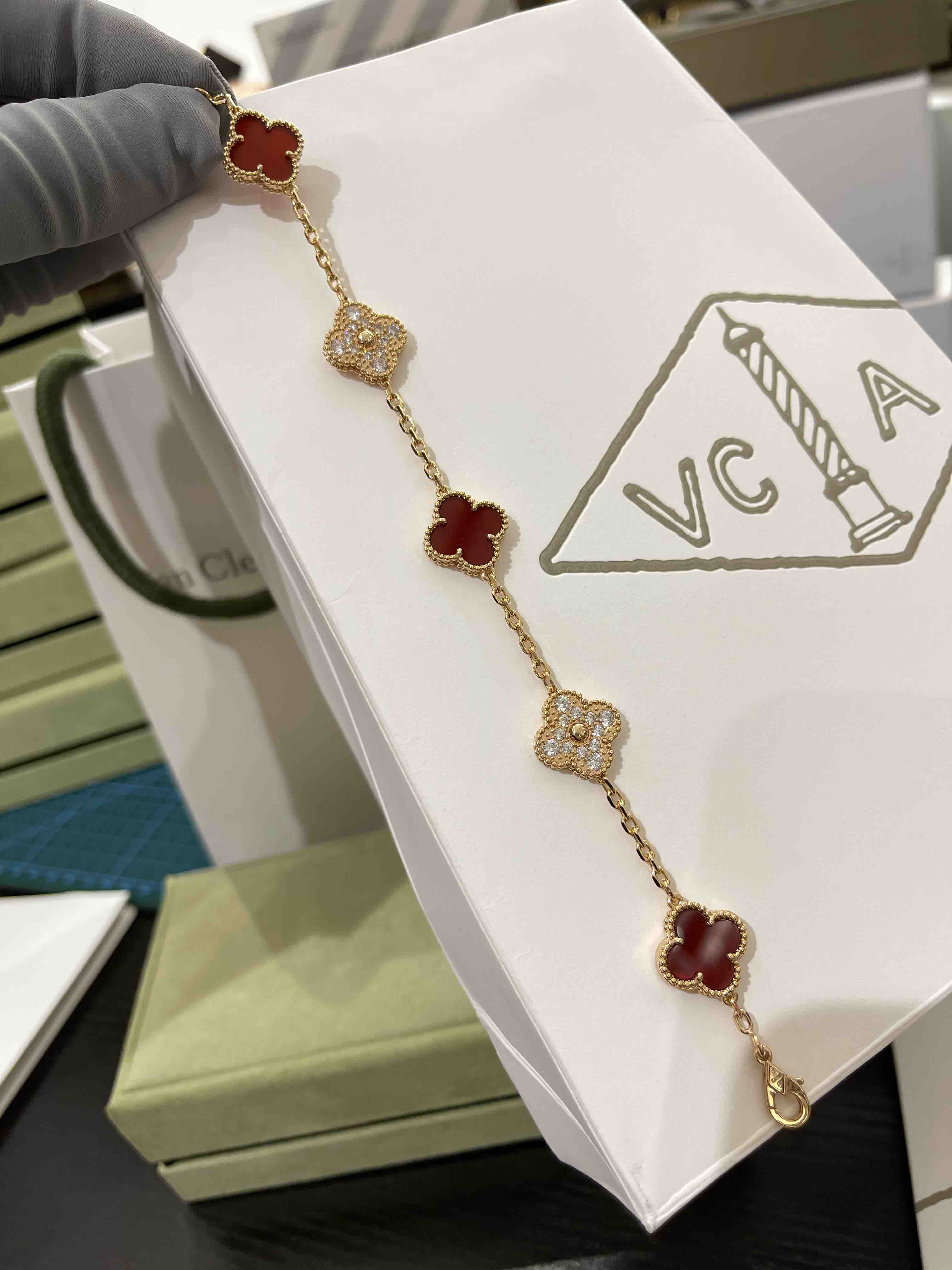 Vca四叶草🍀五花手链-红色+满钻