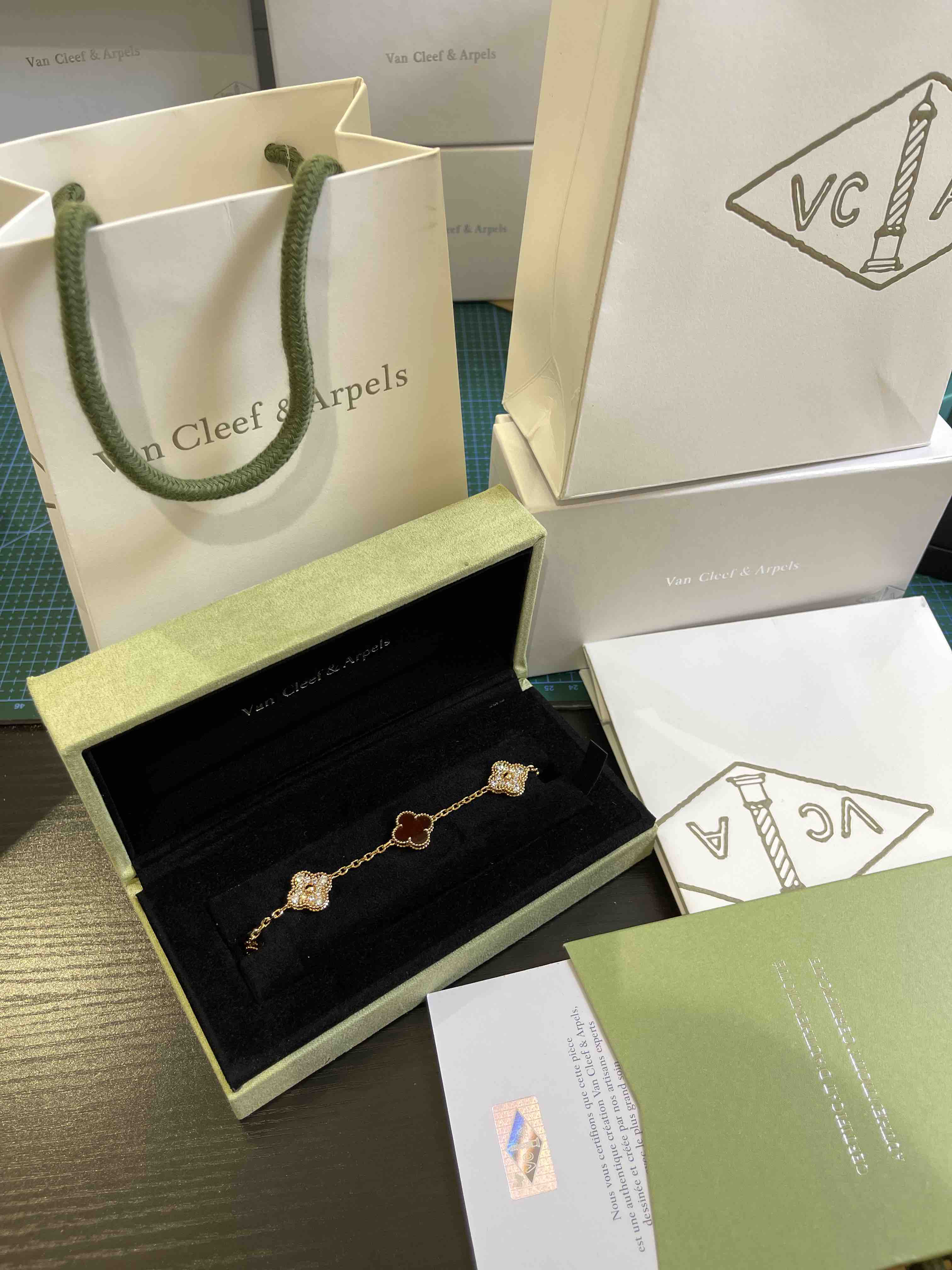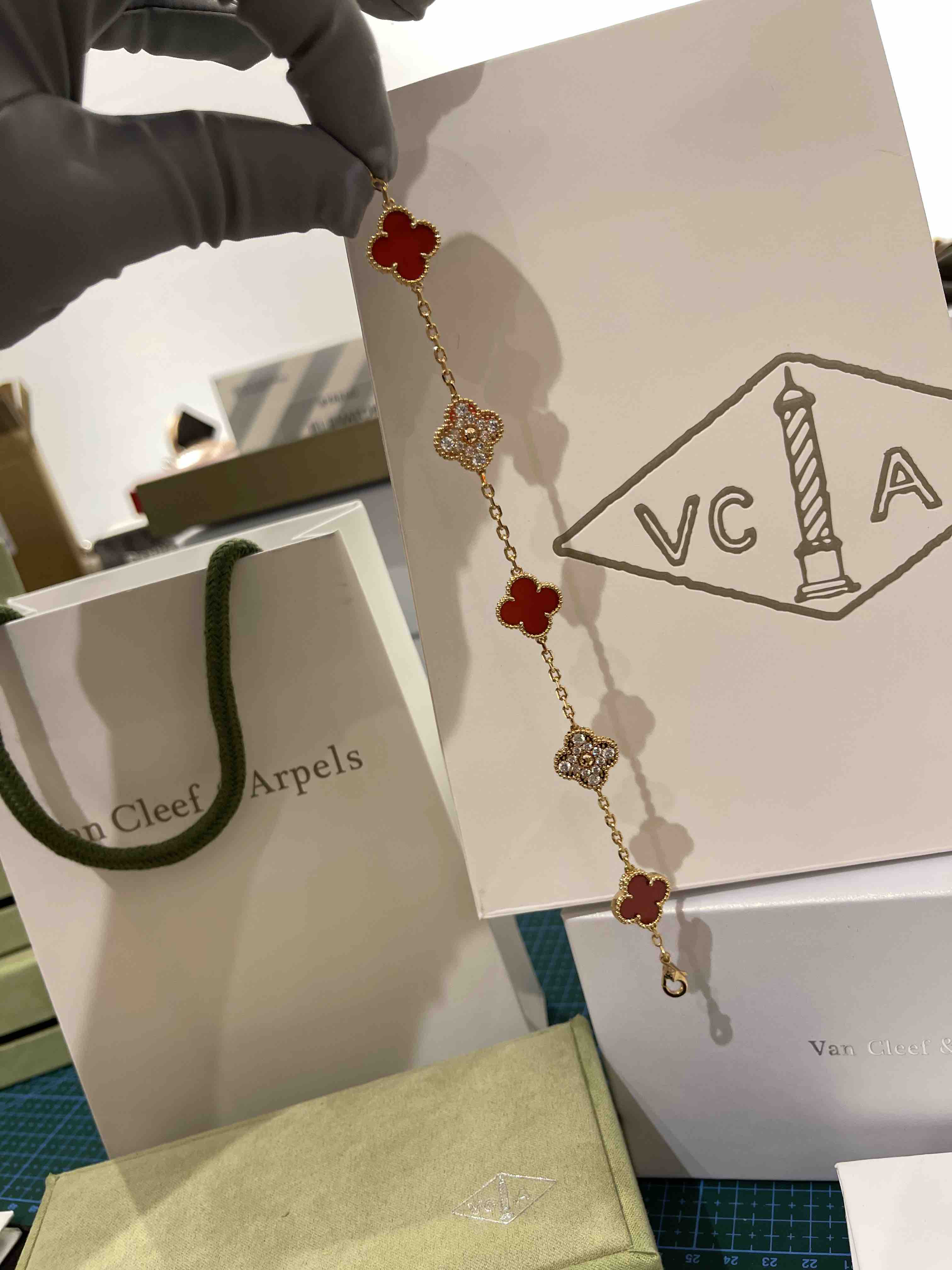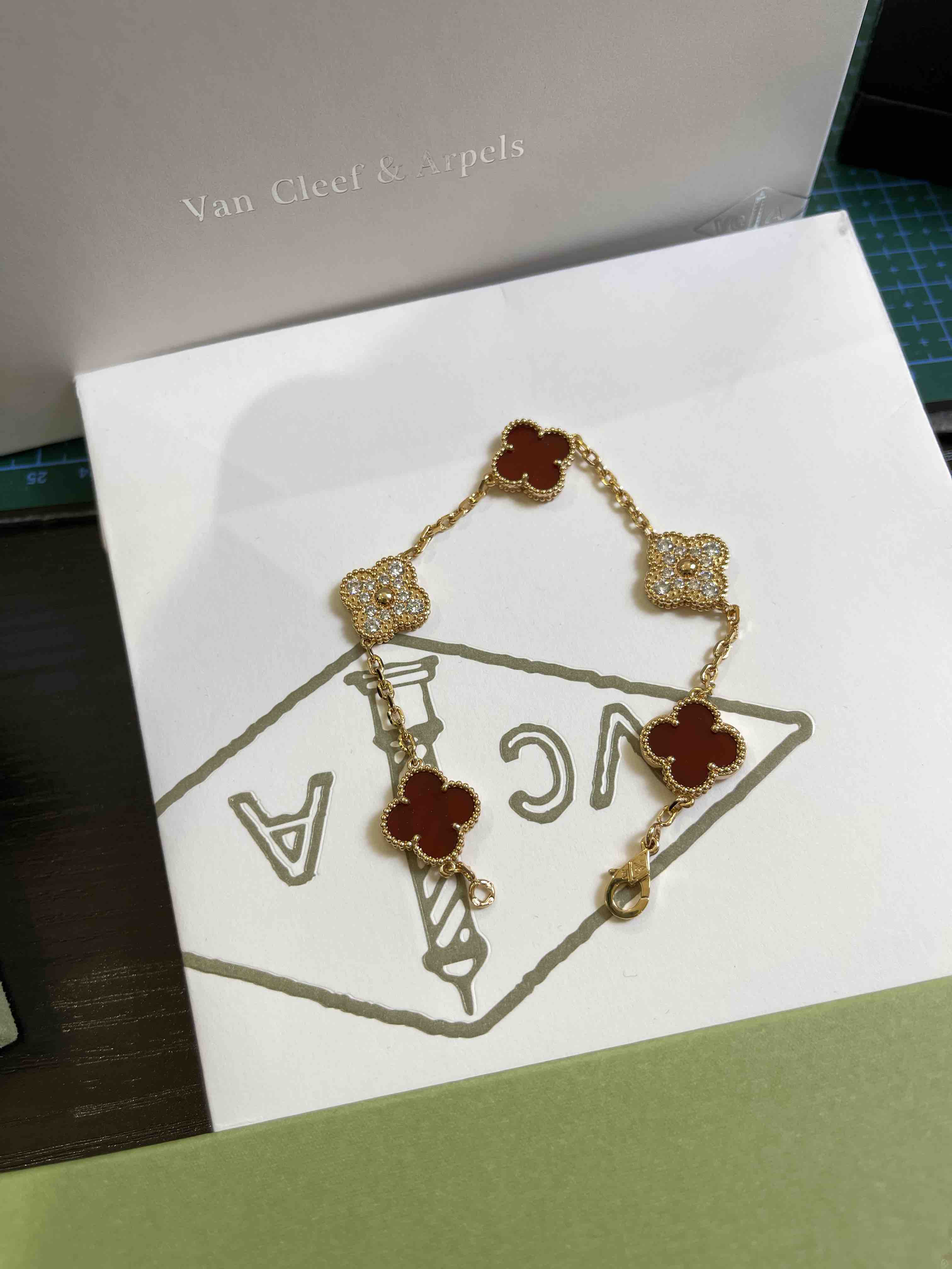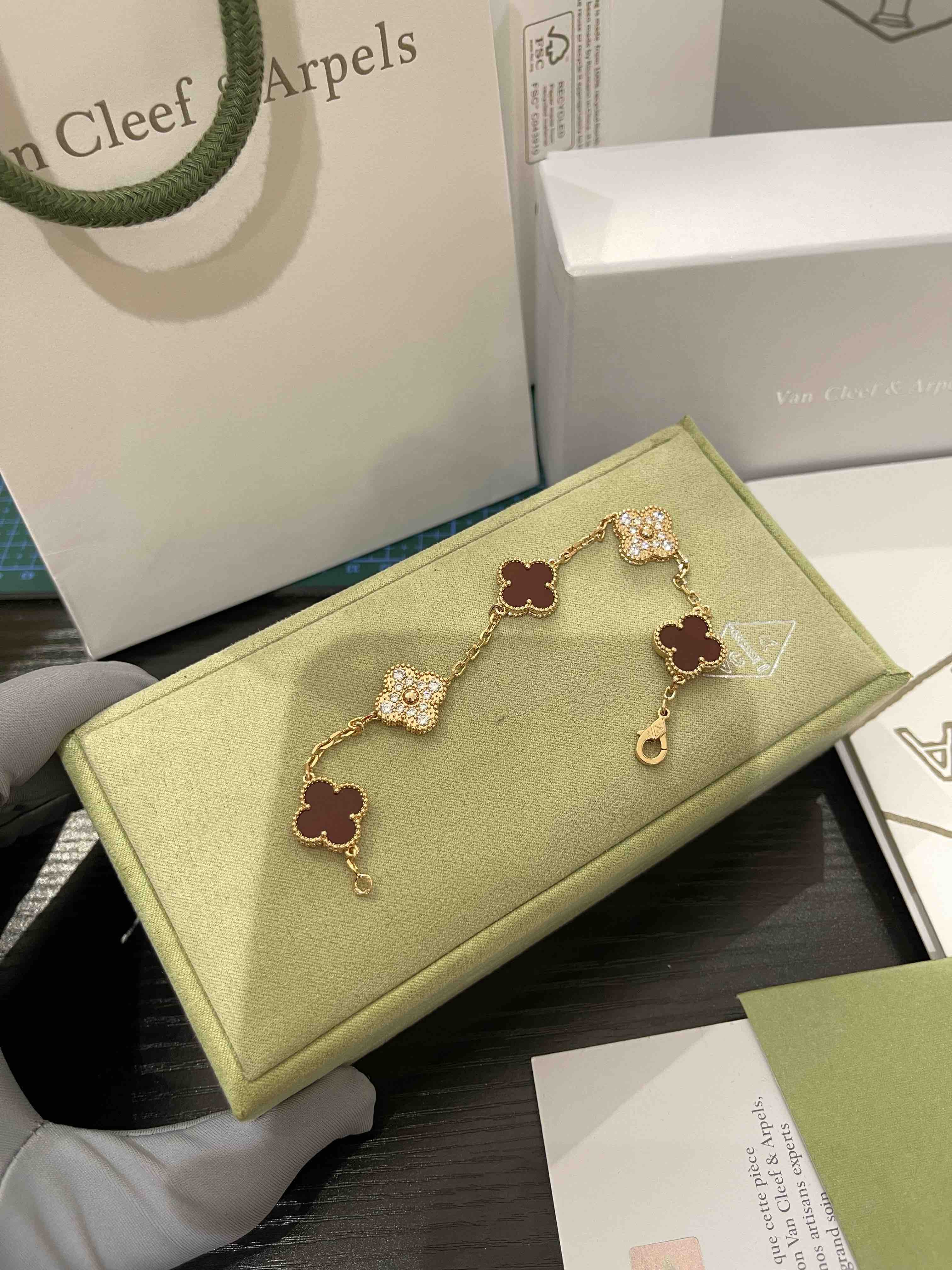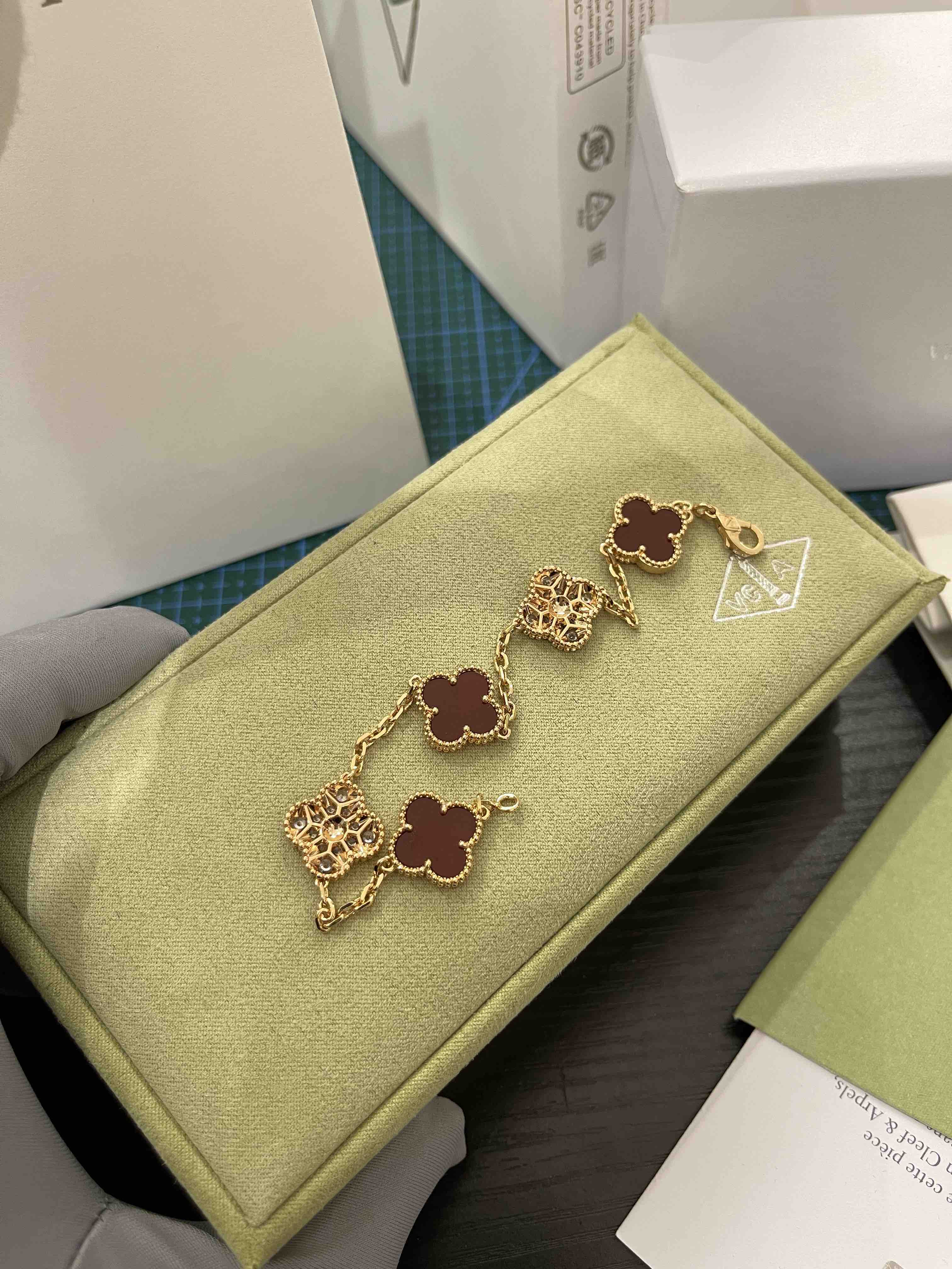 Vca四叶草🍀五花手链-红色+满钻
