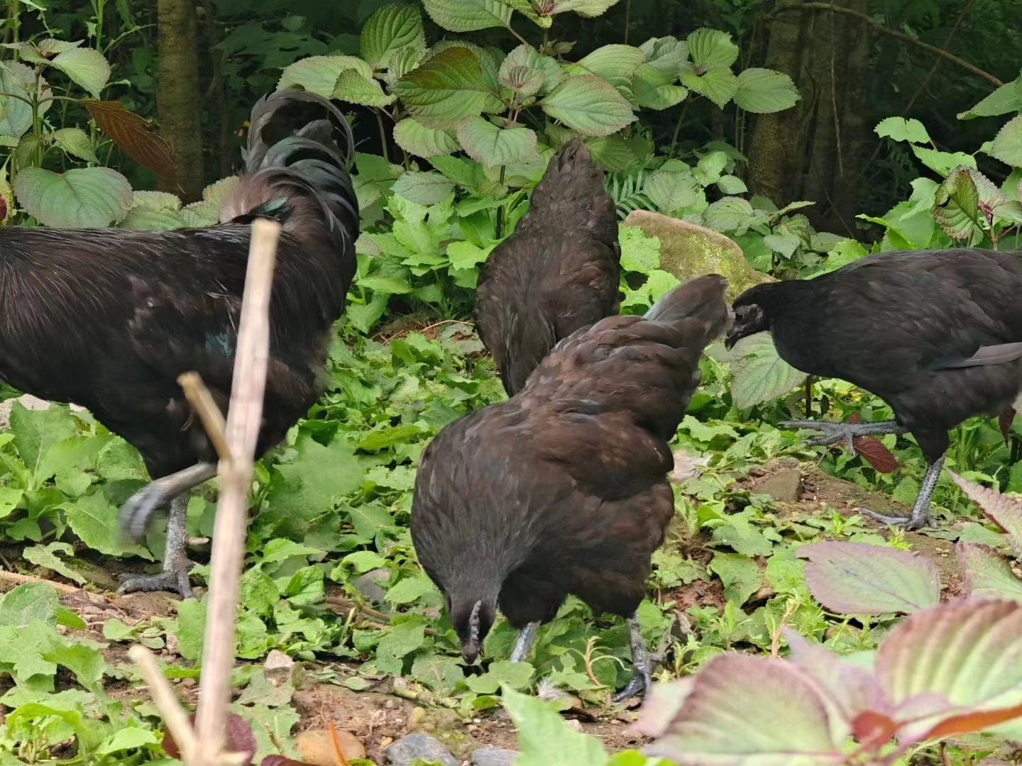林子宽阔 ,五黑鸡生活得很自由
