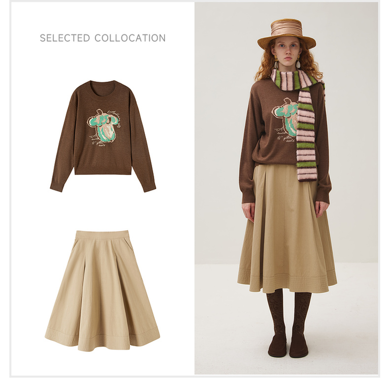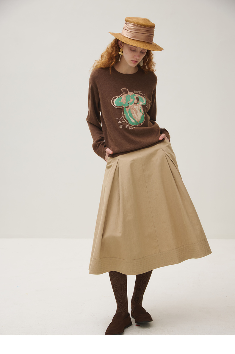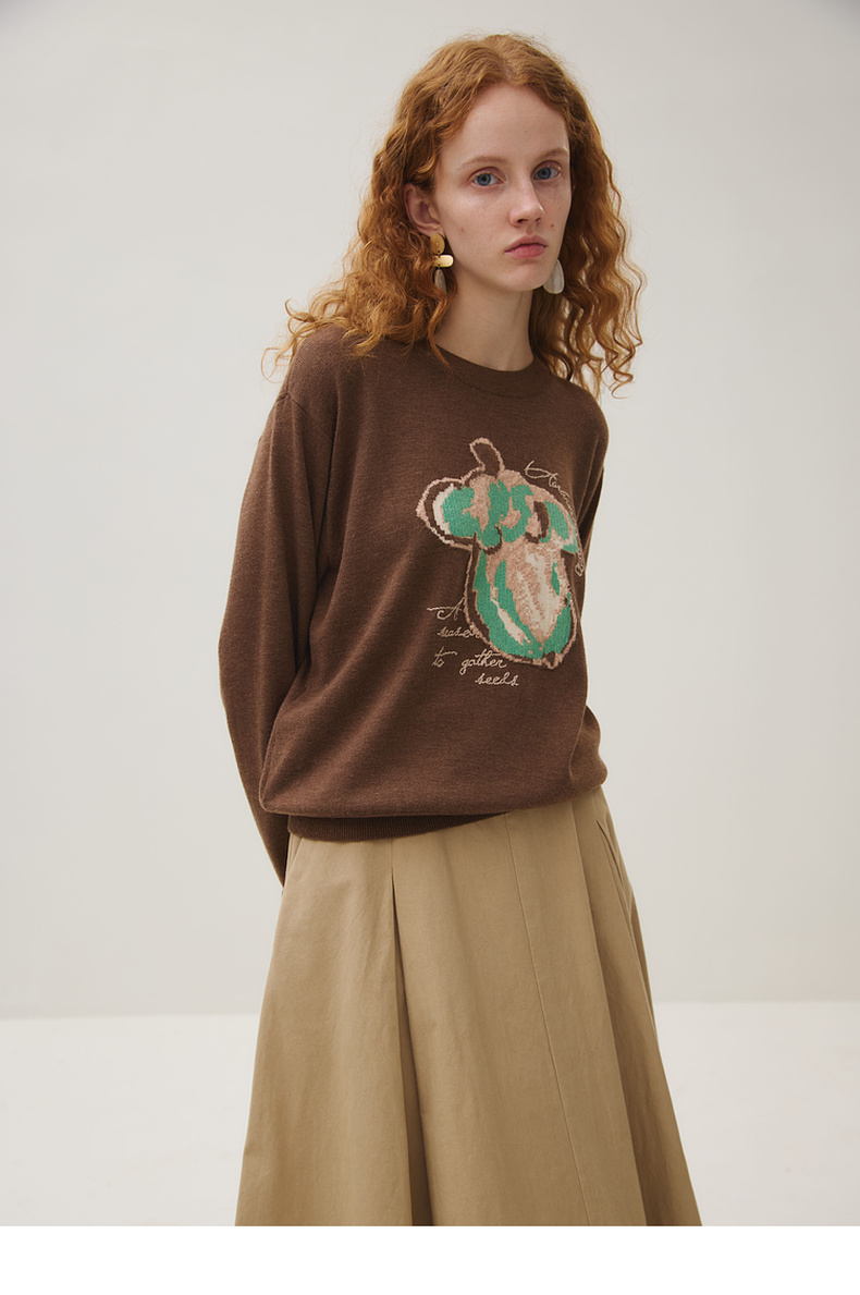 谜底套头针织衫女2025秋季新品文艺风圆领亲肤保暖百搭253MZ1366