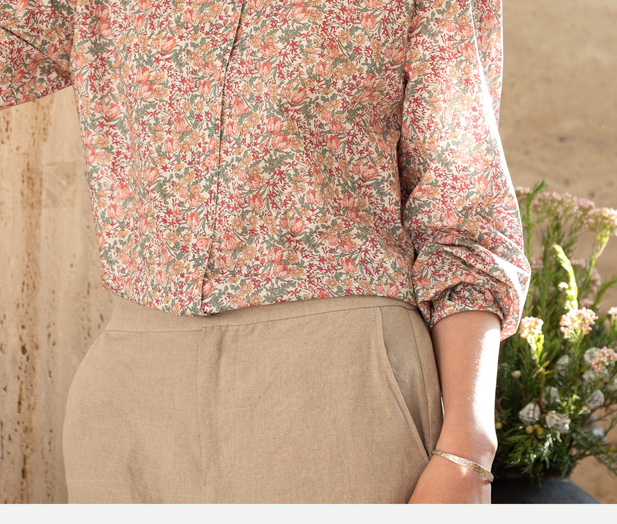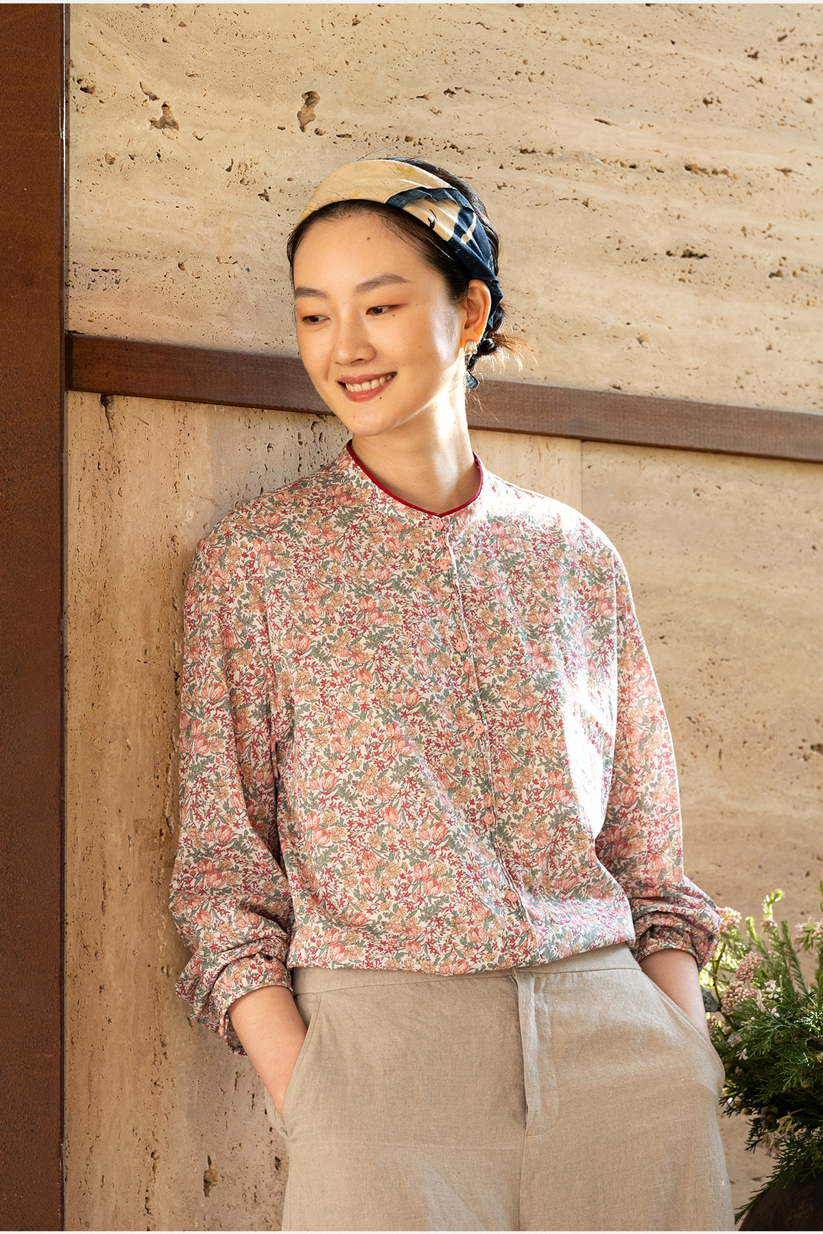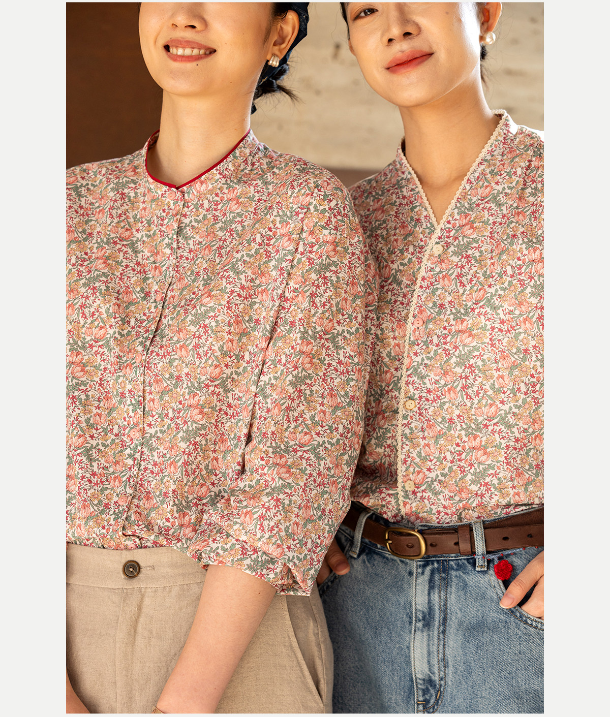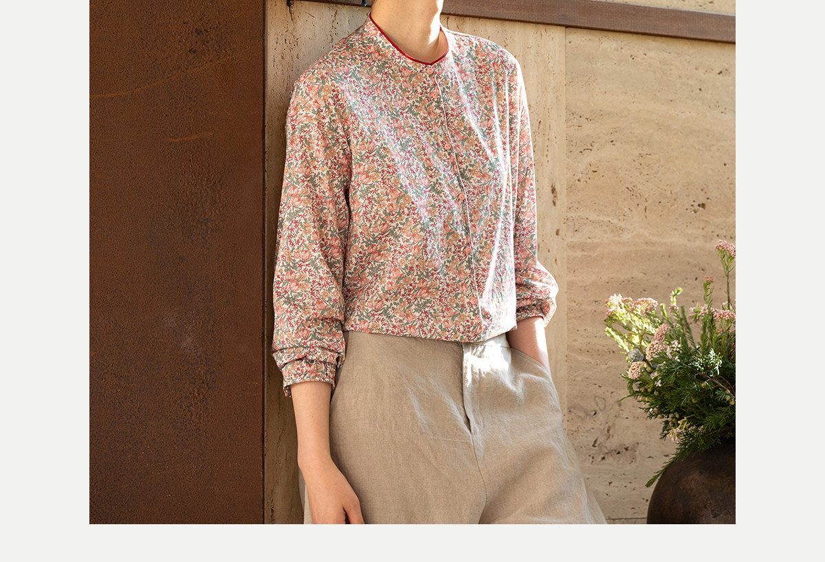 牧衣游原创 100支进口Liberty印花棉衬衫粉色通勤文艺小衫 茁初