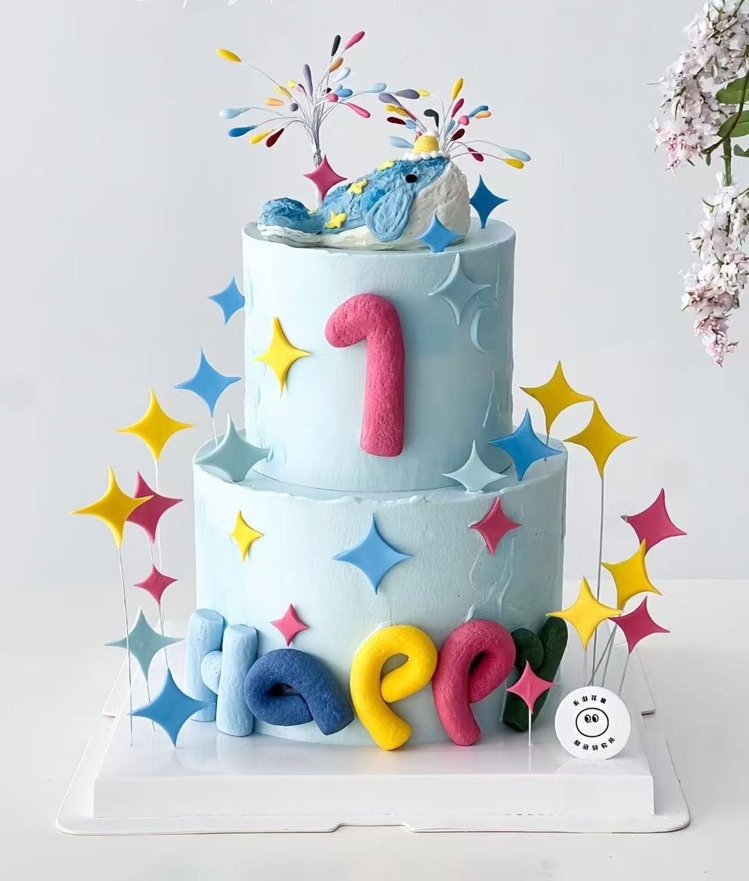 6+4双层HAPPY翻糖烟花小动物卡通蛋糕-低糖处理无添加