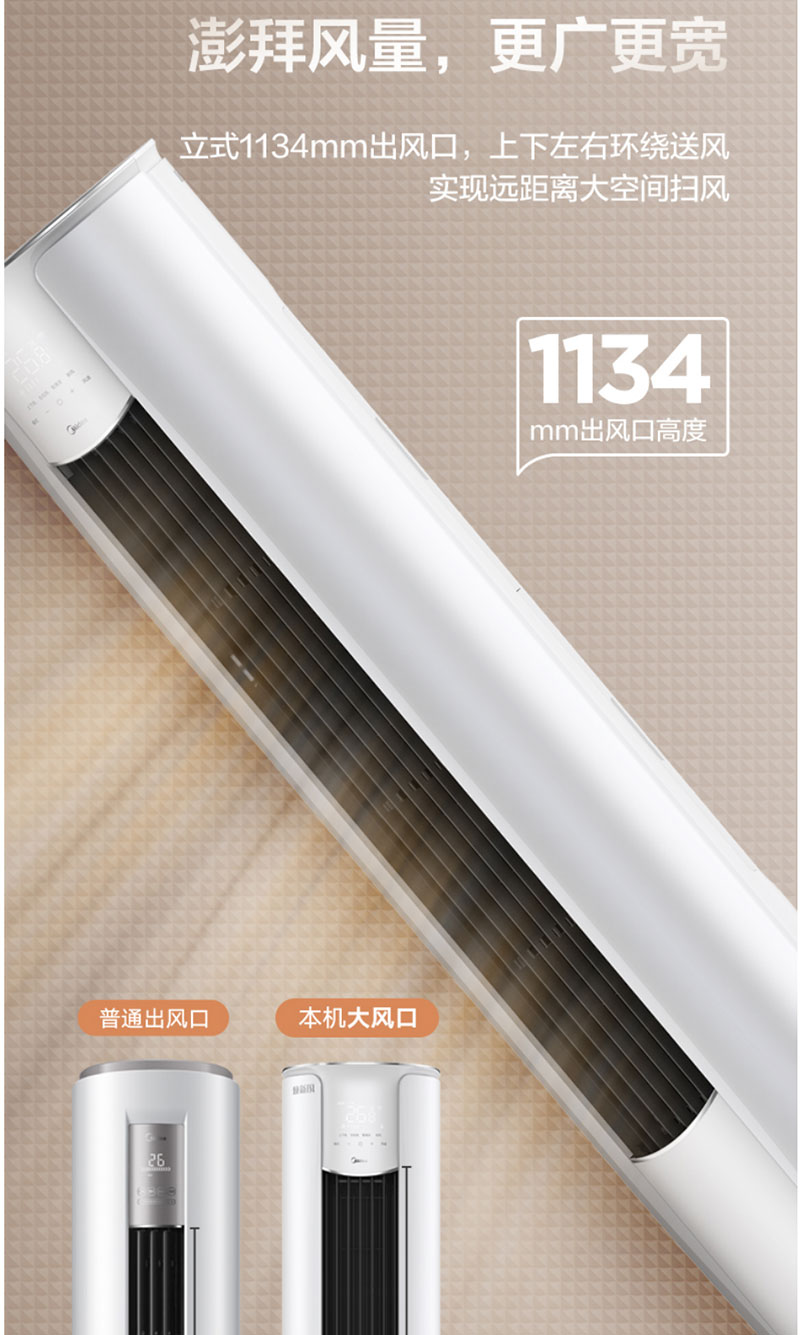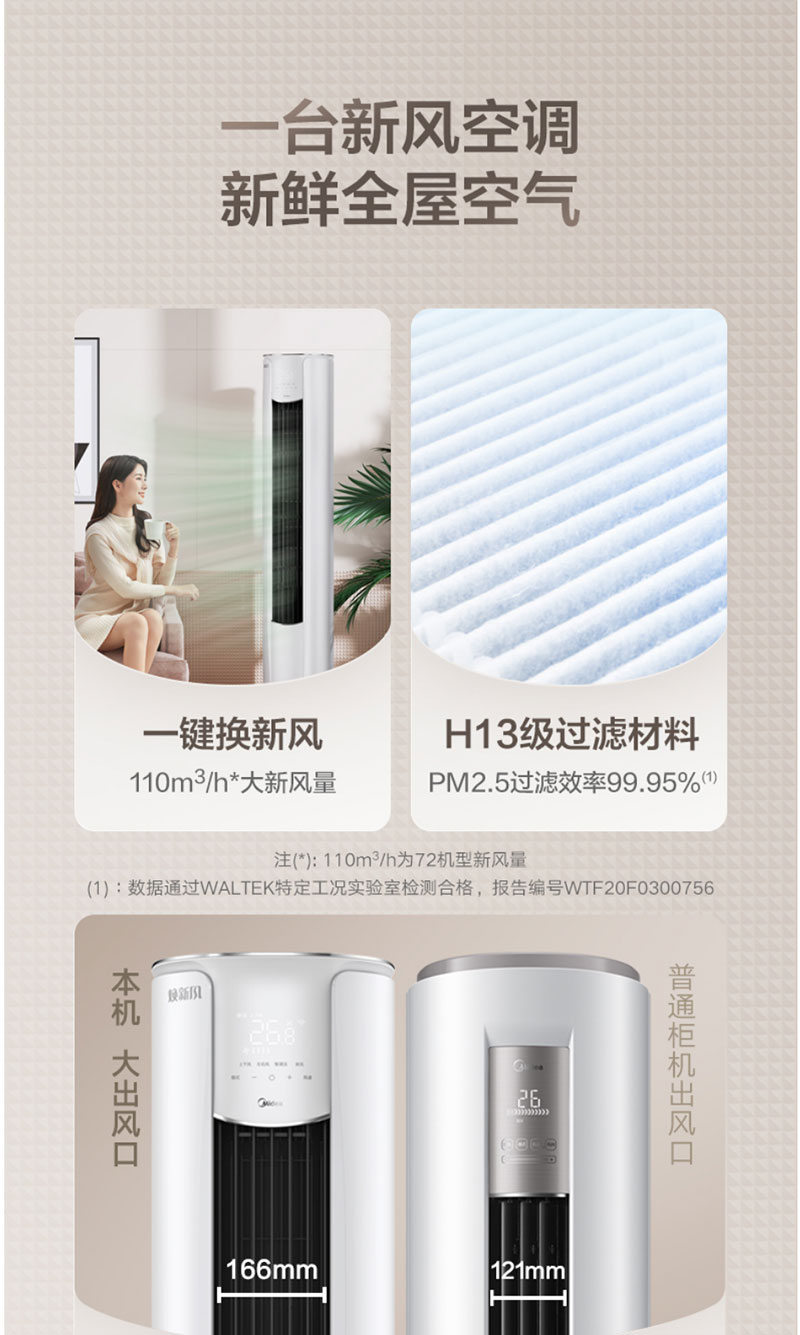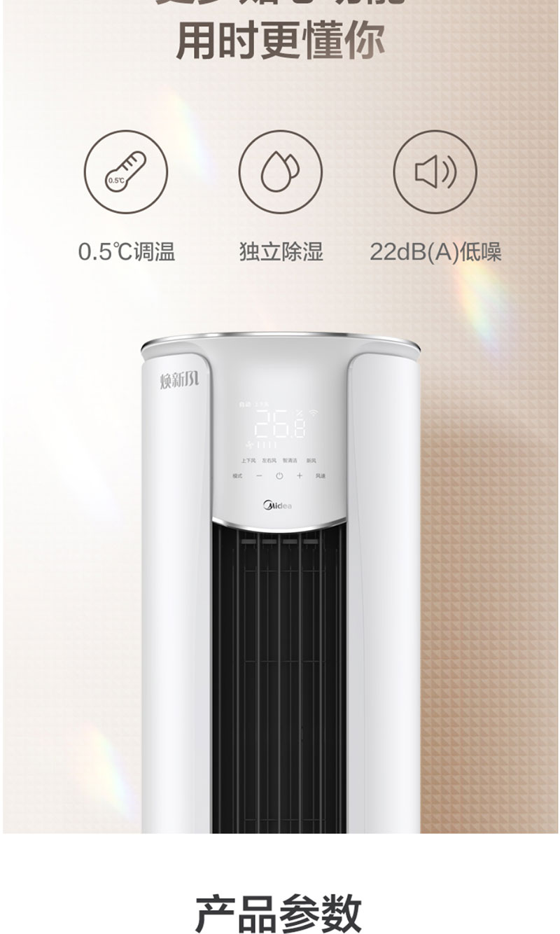 美的(Midea) 新一级焕新风 3匹 智能家电 变频冷暖 新风空调 客厅圆柱立式柜机 KFR-72LW/N8MKA1