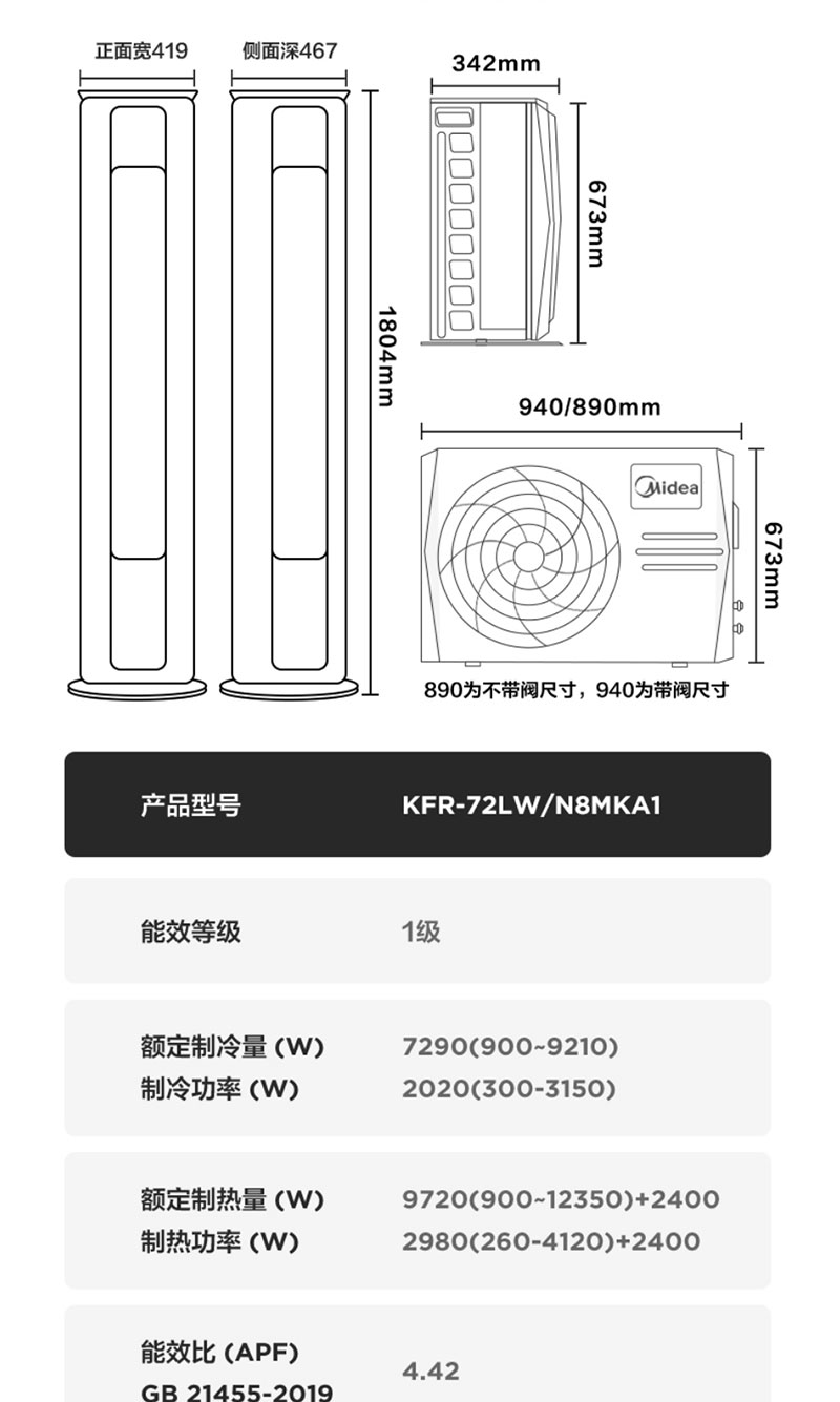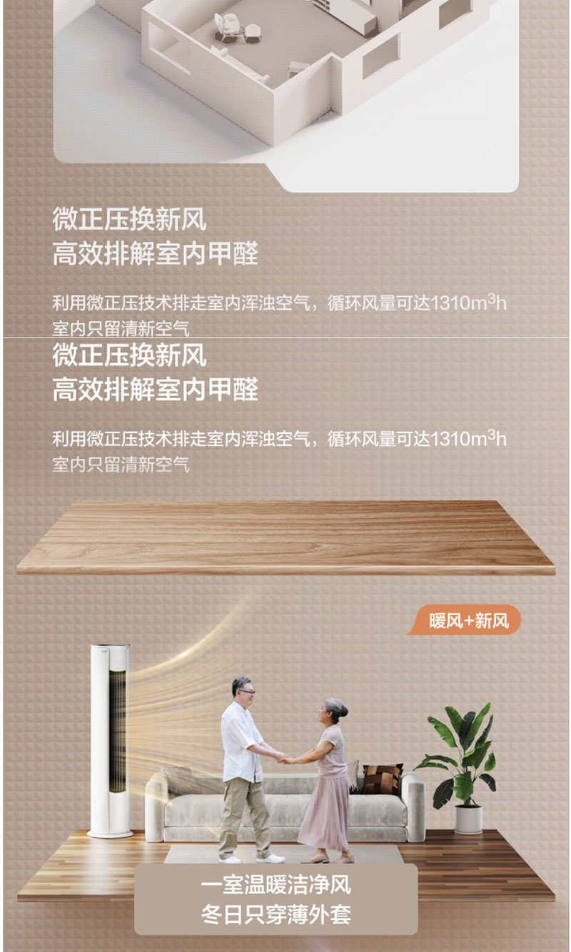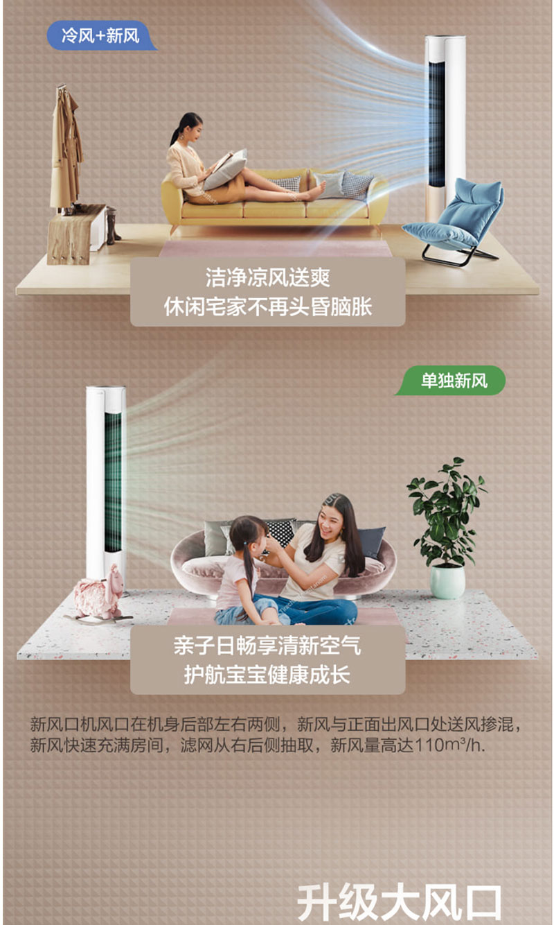 美的(Midea) 新一级焕新风 3匹 智能家电 变频冷暖 新风空调 客厅圆柱立式柜机 KFR-72LW/N8MKA1