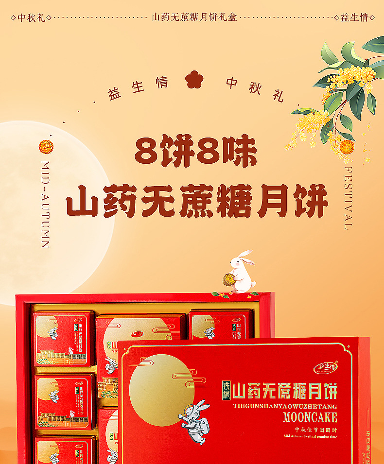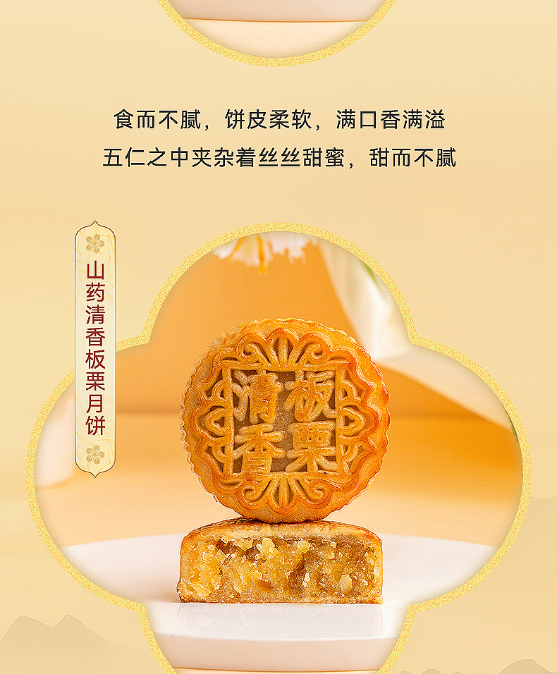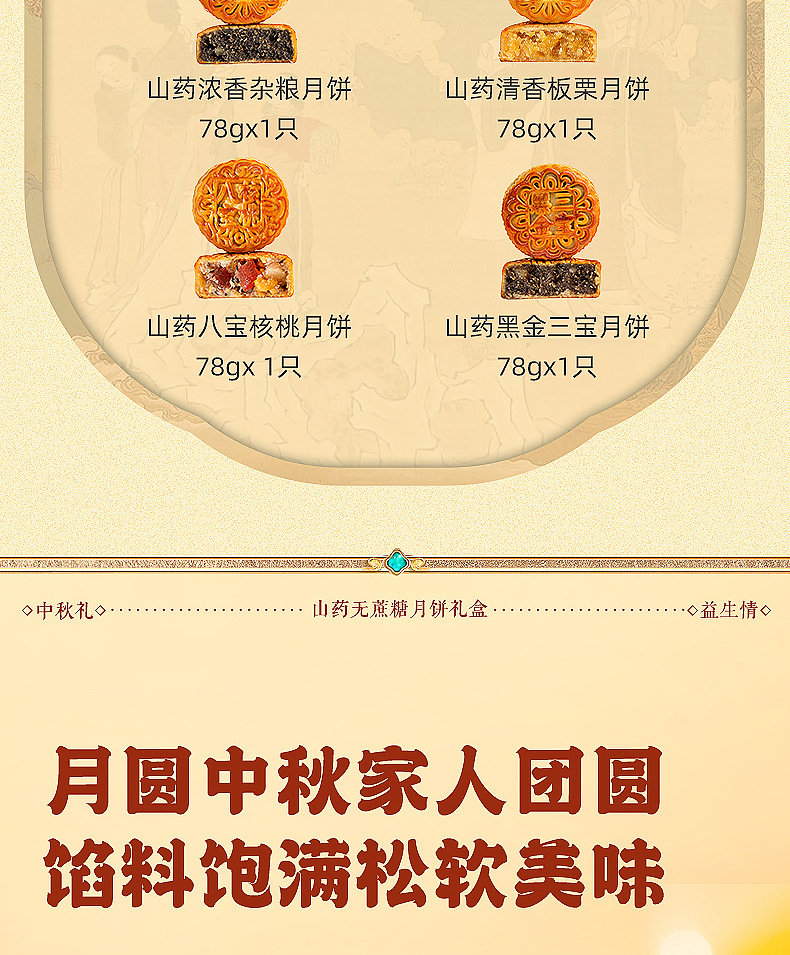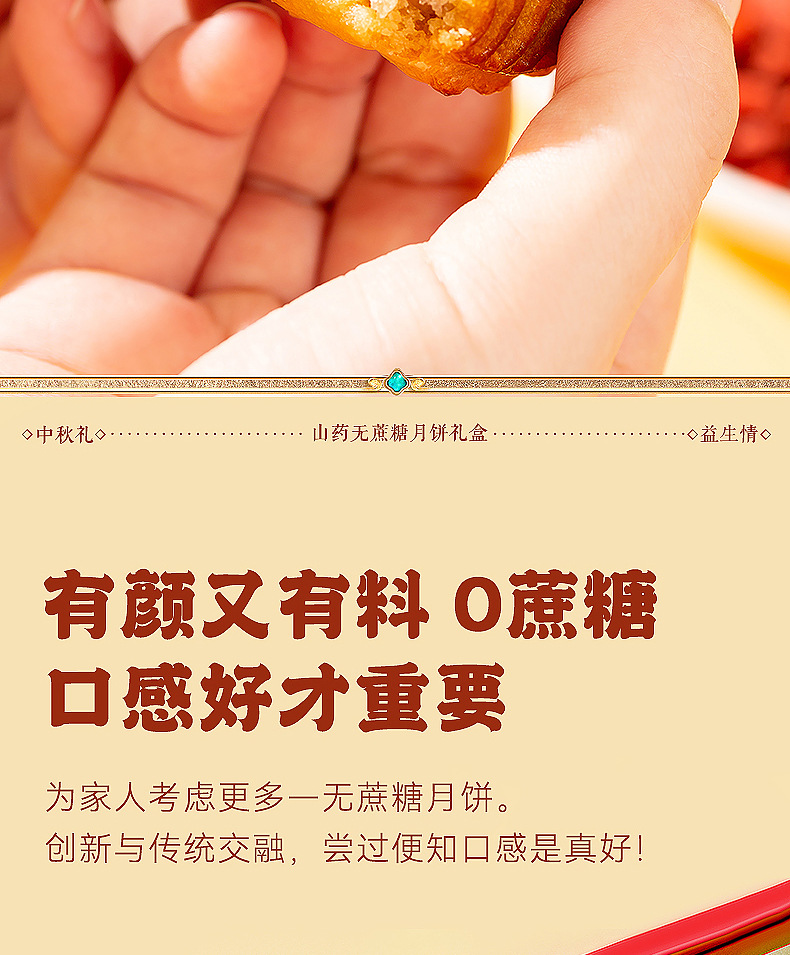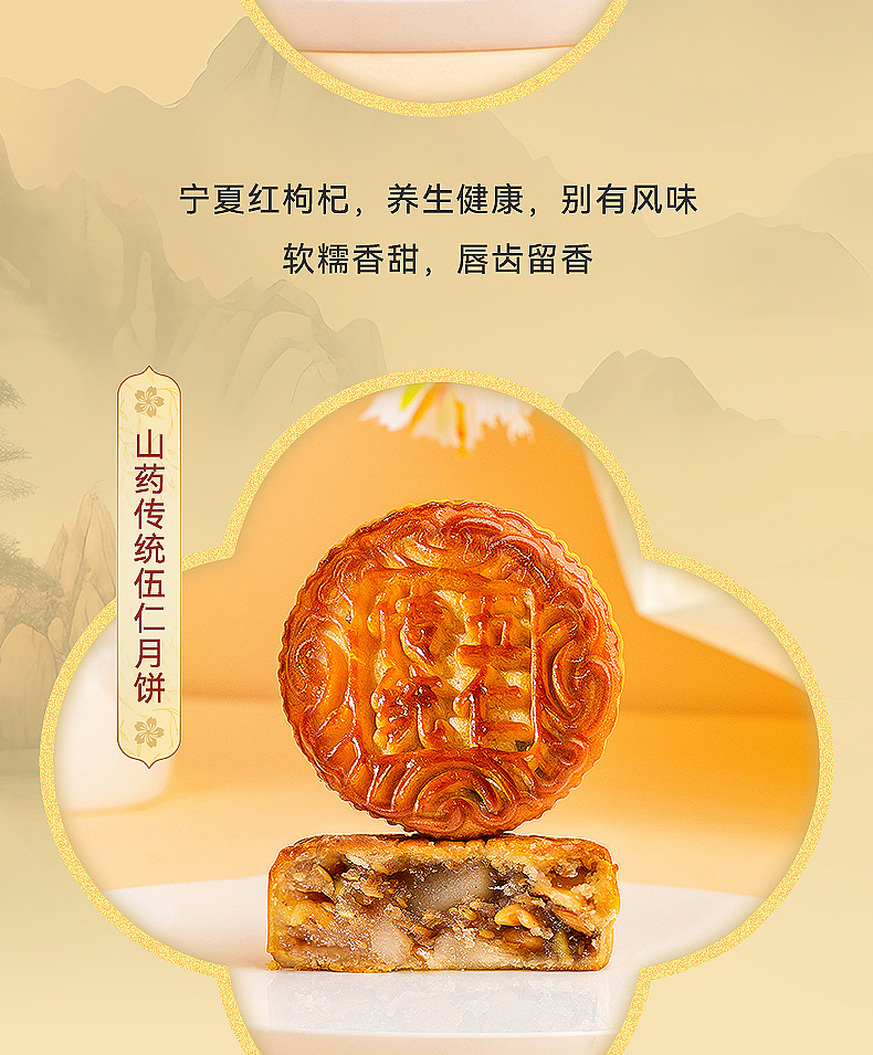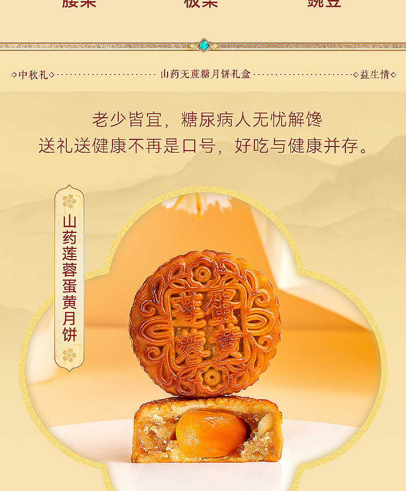 【铁棍山药无蔗糖月饼 】中秋高档礼盒装 传统五仁大月饼木糖醇月饼 老少皆宜的月饼