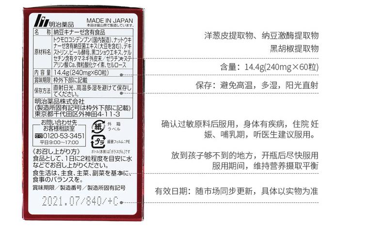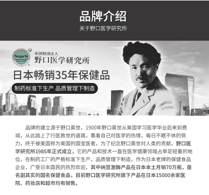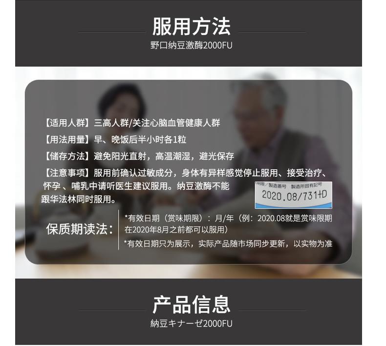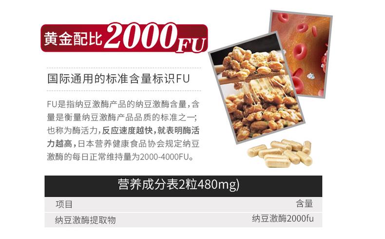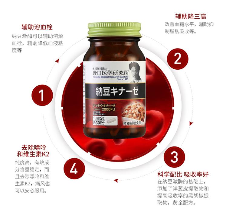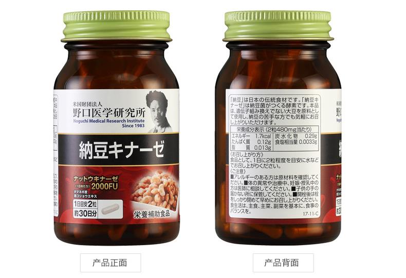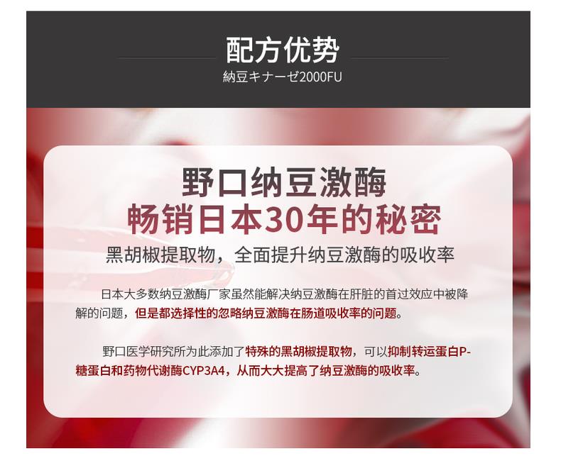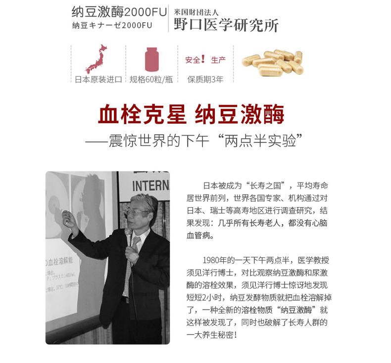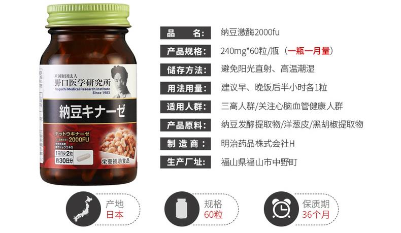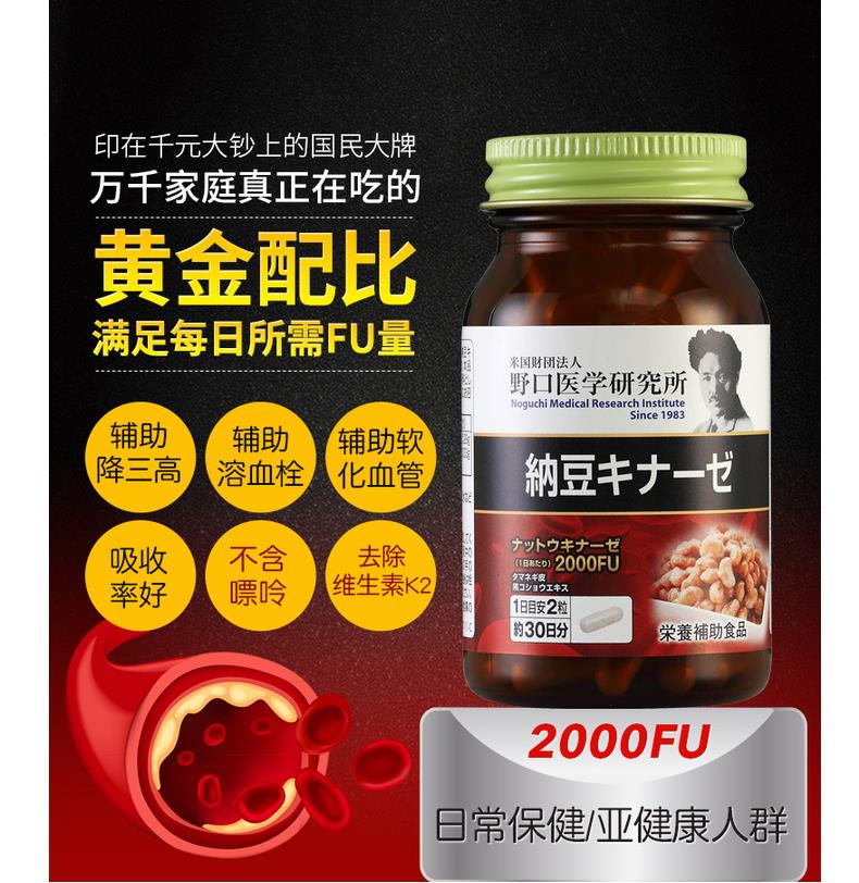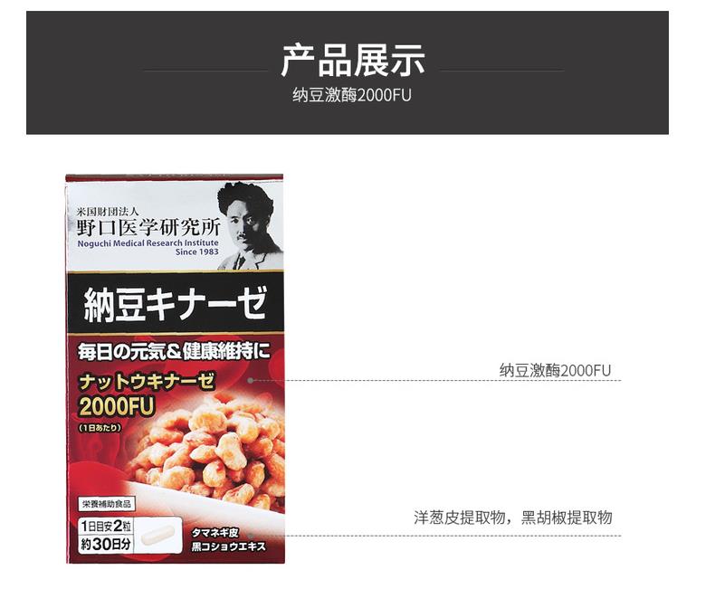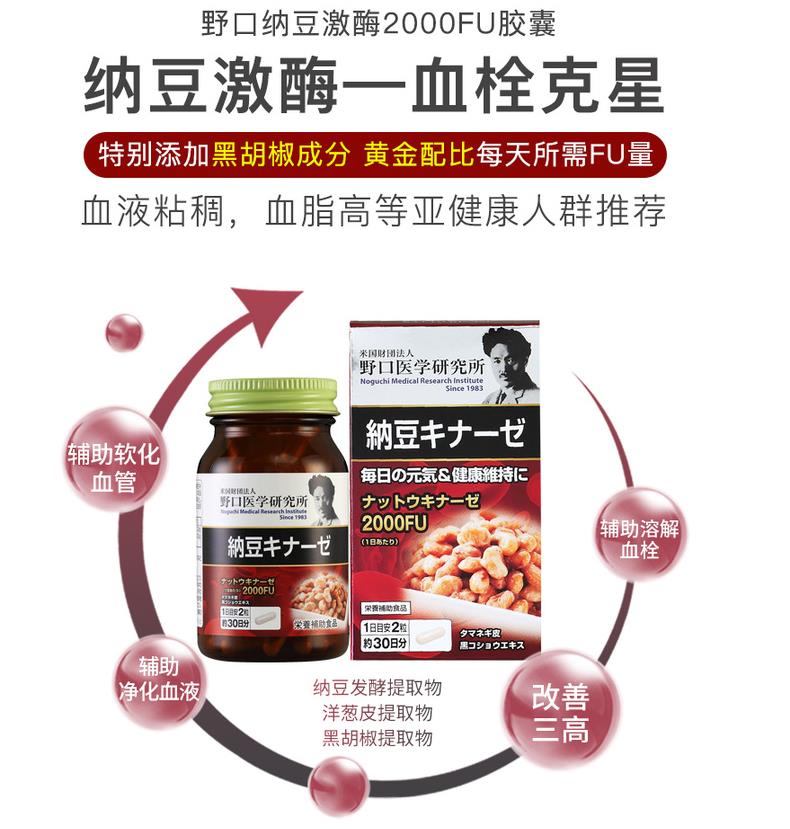 日本 野口医学研究所 纳豆激酶2000FU 纳豆精菌胶囊 60粒