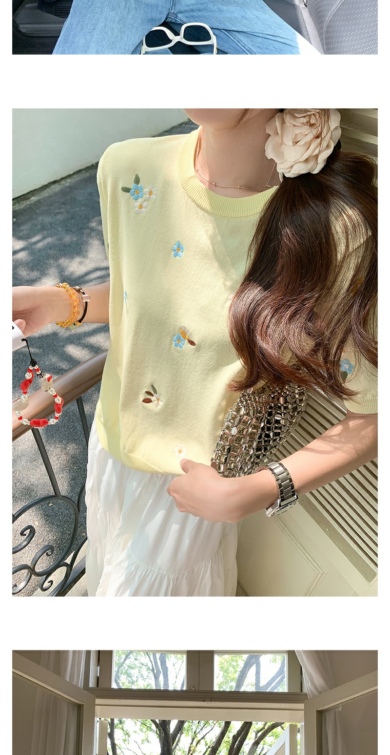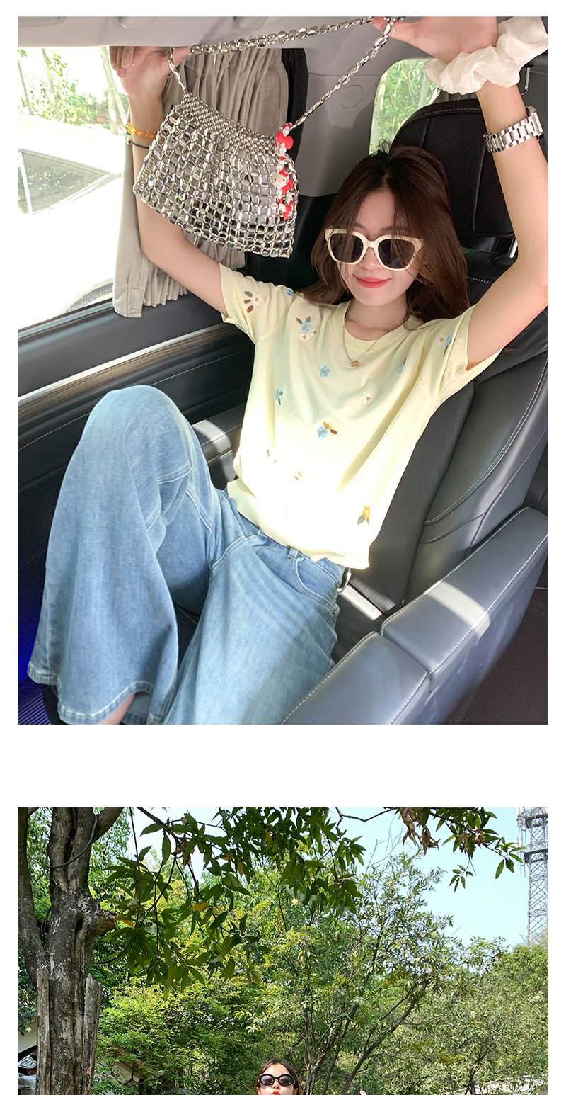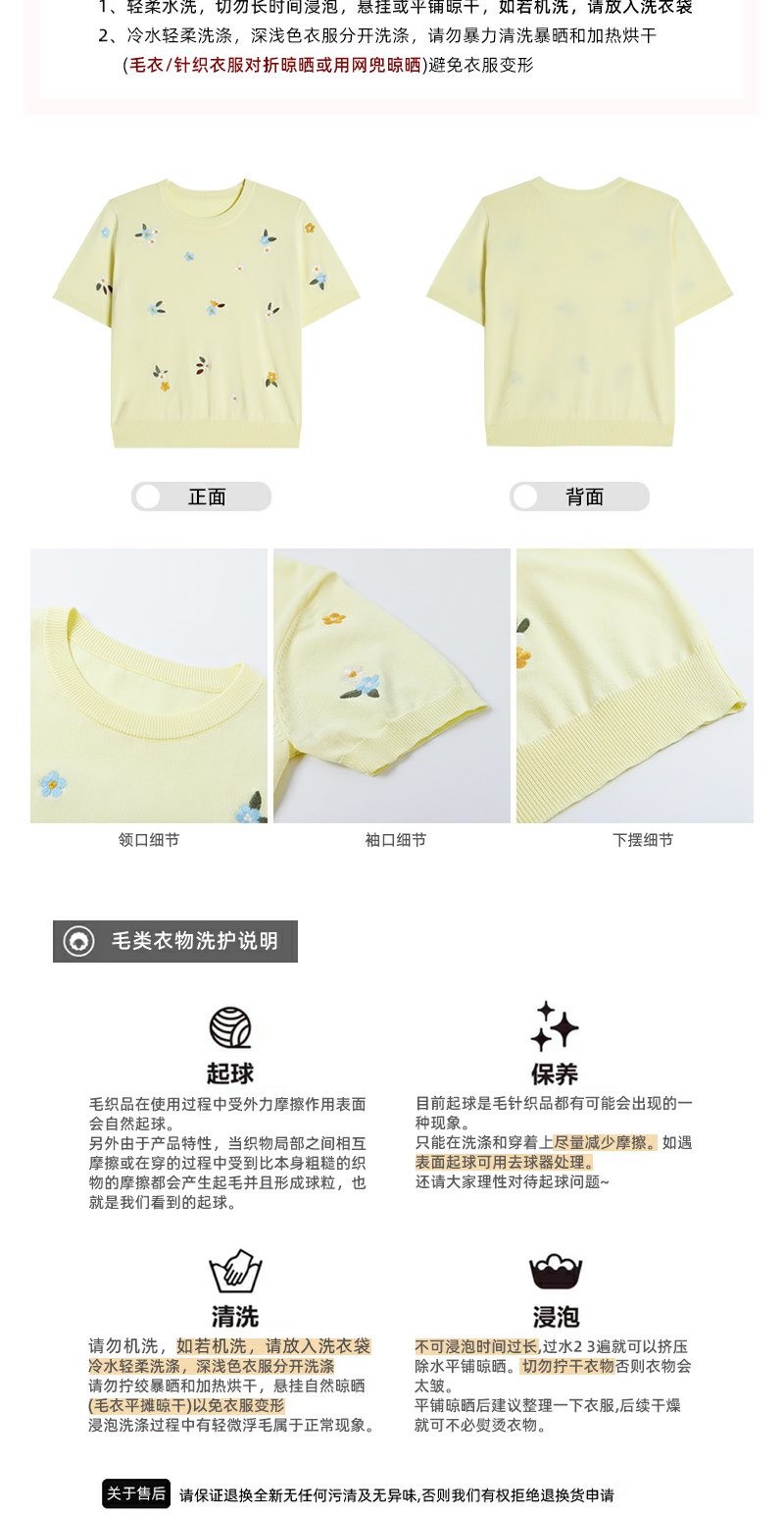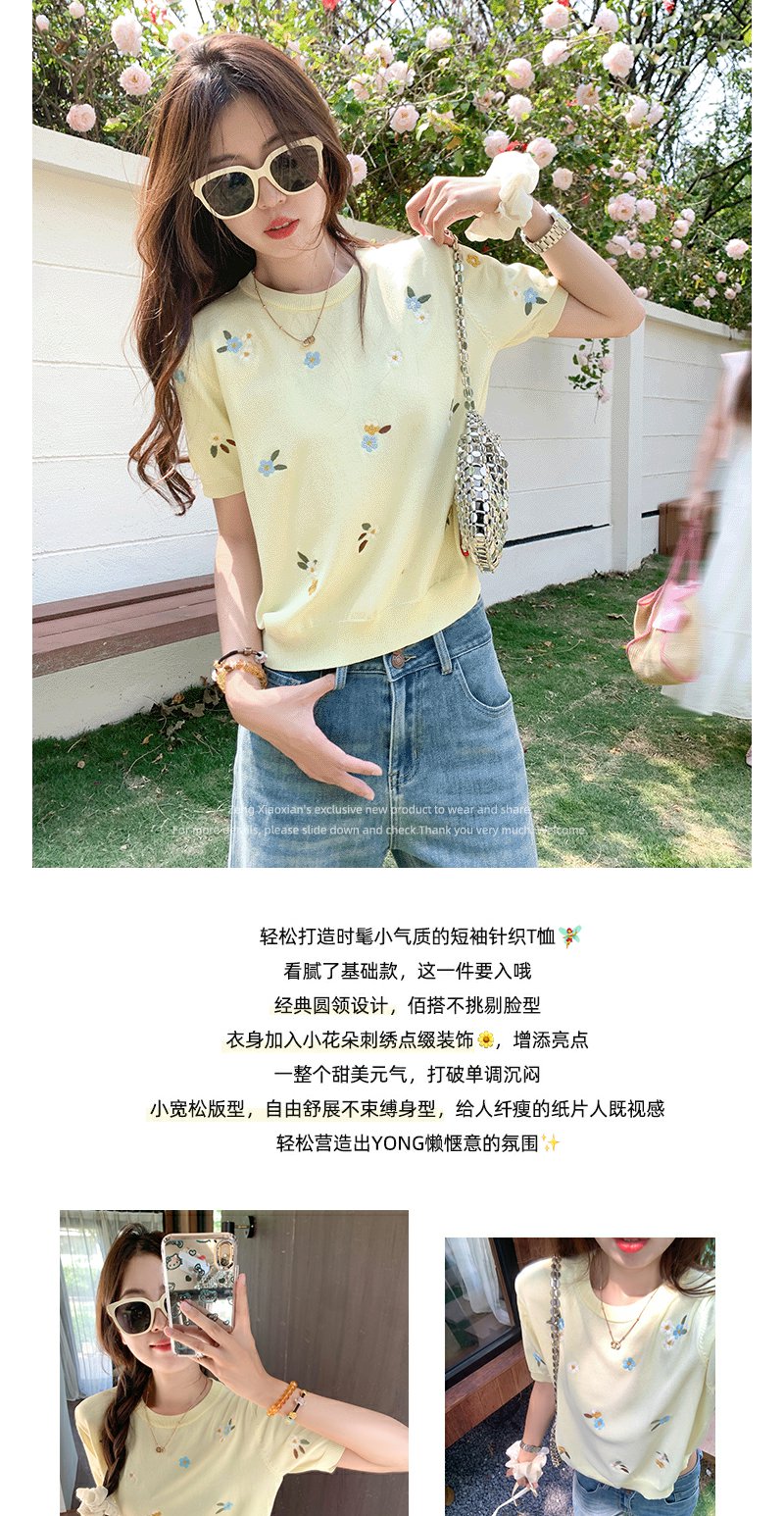 <曾小咸推荐>韩系黄色重工刺绣针织短袖T恤