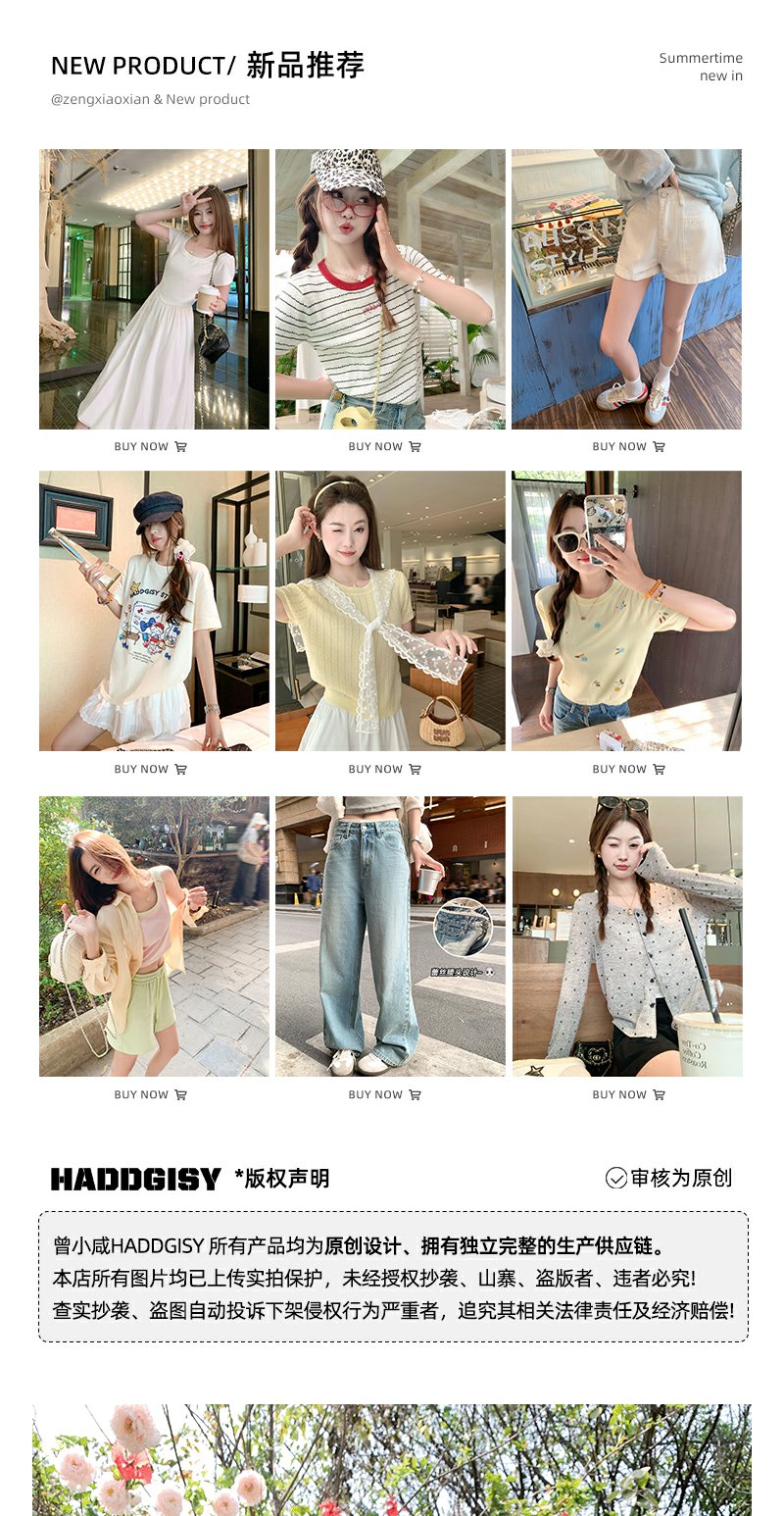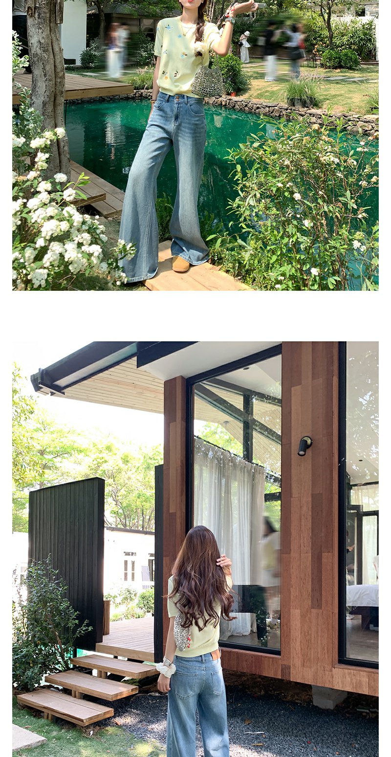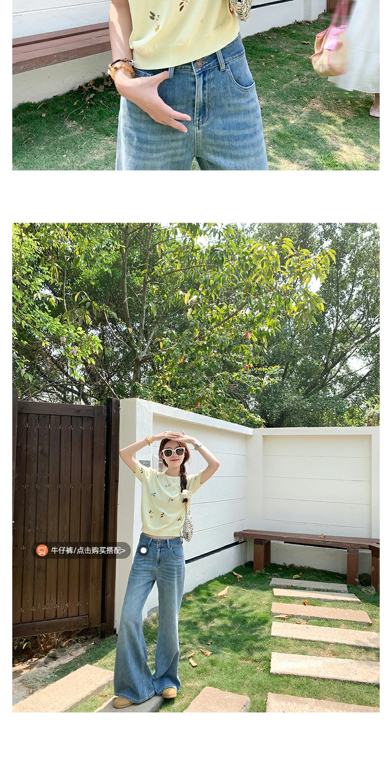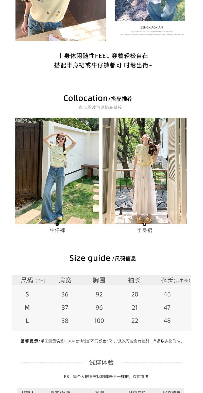 <曾小咸推荐>韩系黄色重工刺绣针织短袖T恤