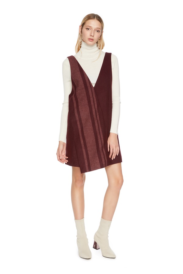 LILY 不对称条纹背带裙 5040