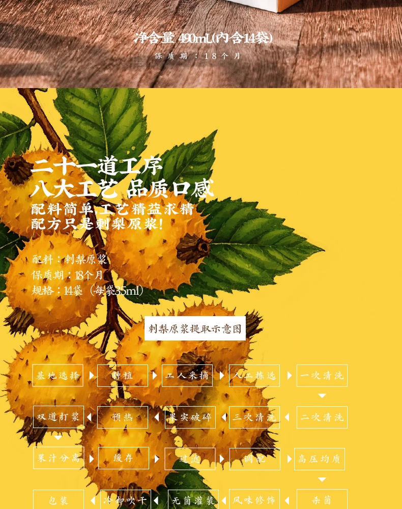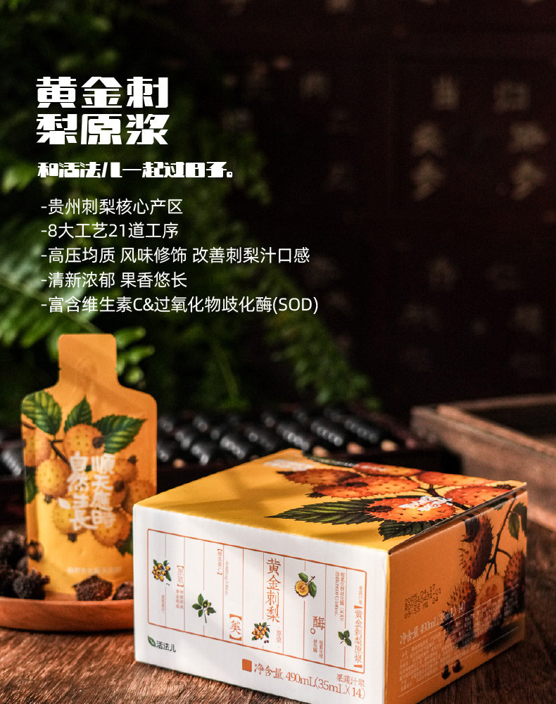 活法儿黄金刺梨原浆物理萃取贵州刺梨果蔬汁浆原浆果汁每盒14袋入
