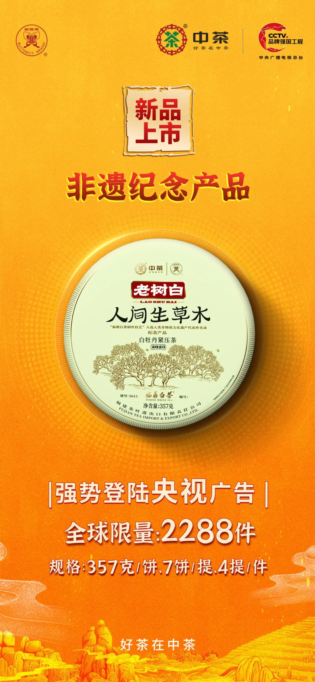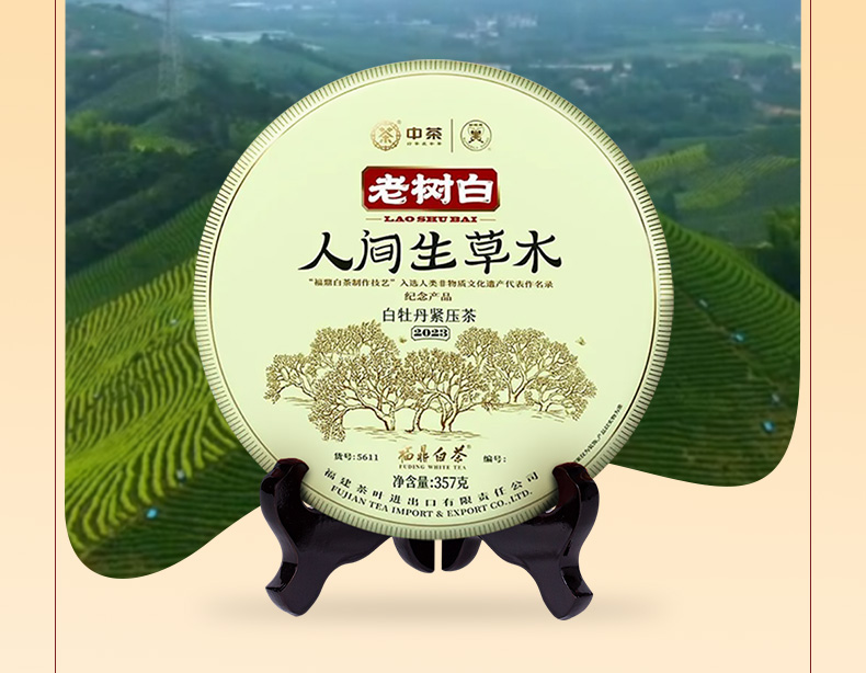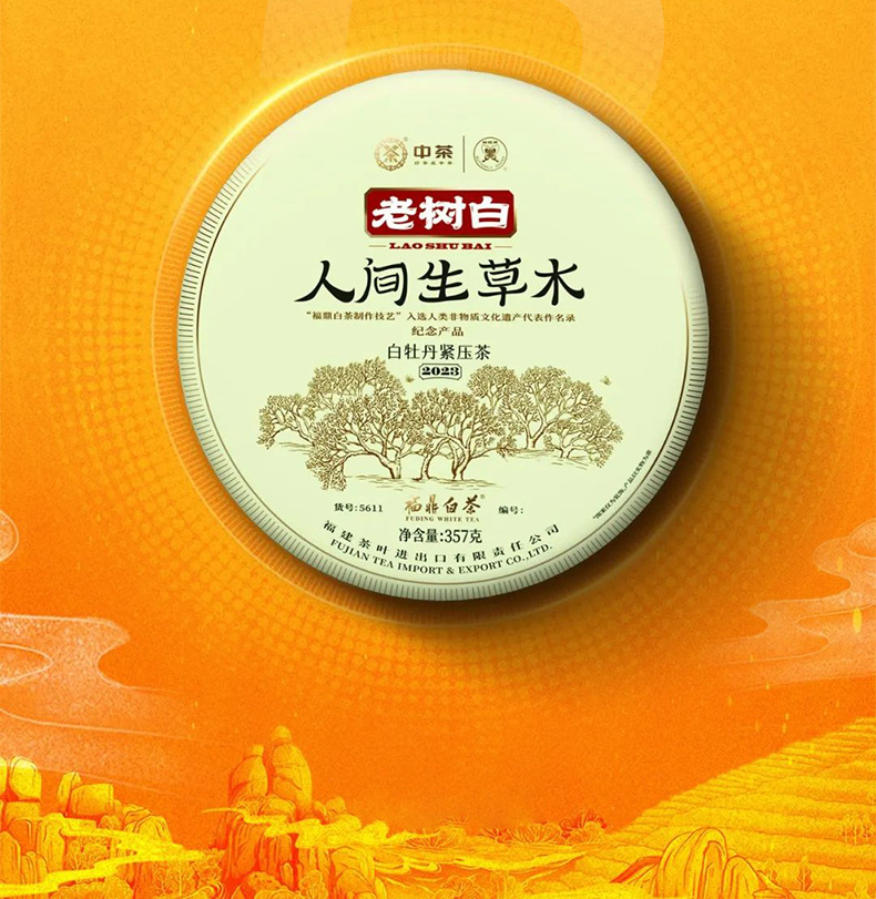 中粮-中茶2023年福鼎白茶蝴蝶老树白人间生草木白牡丹白茶357g/饼((限量发行/从茶园到茶杯)