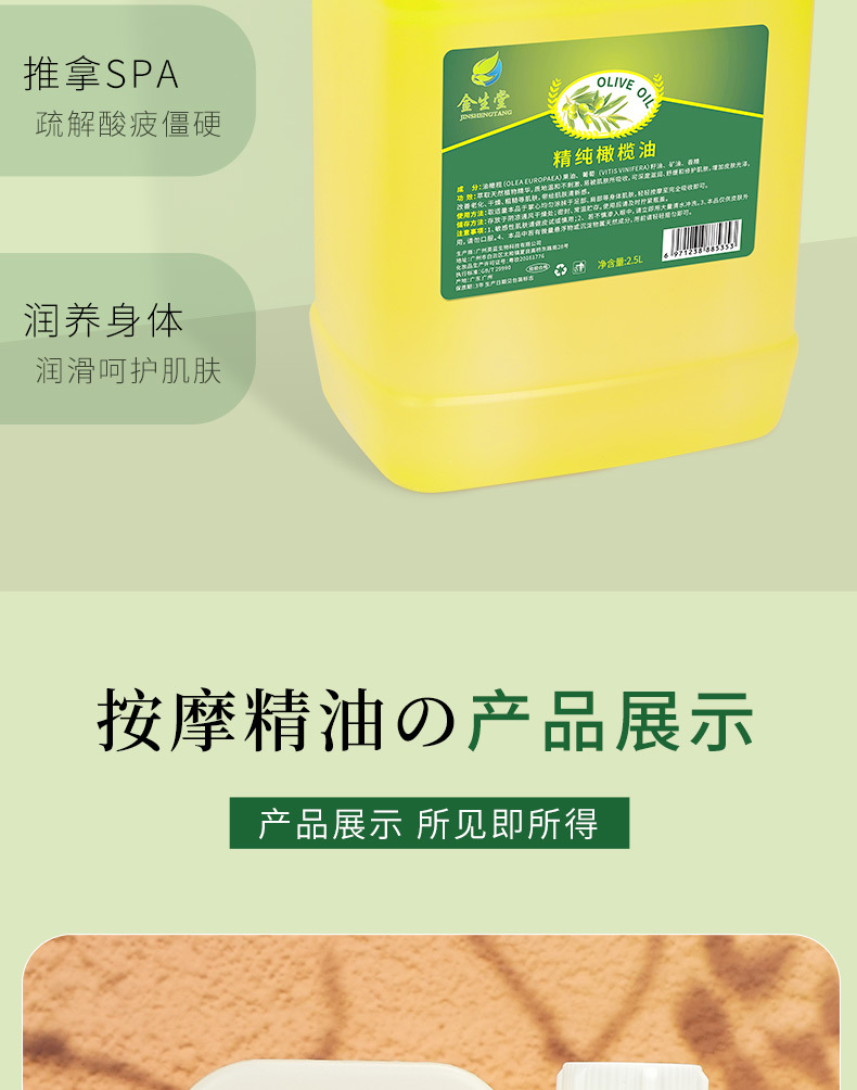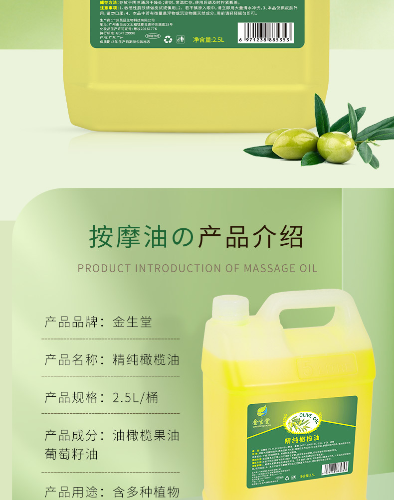 2.5升大桶橄榄按摩油全身体通经络推拿刮痧精油美容院装推油spa