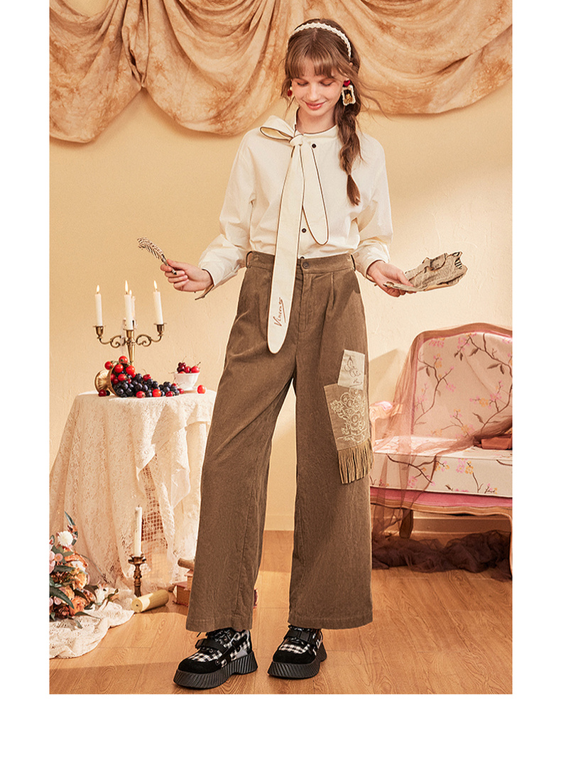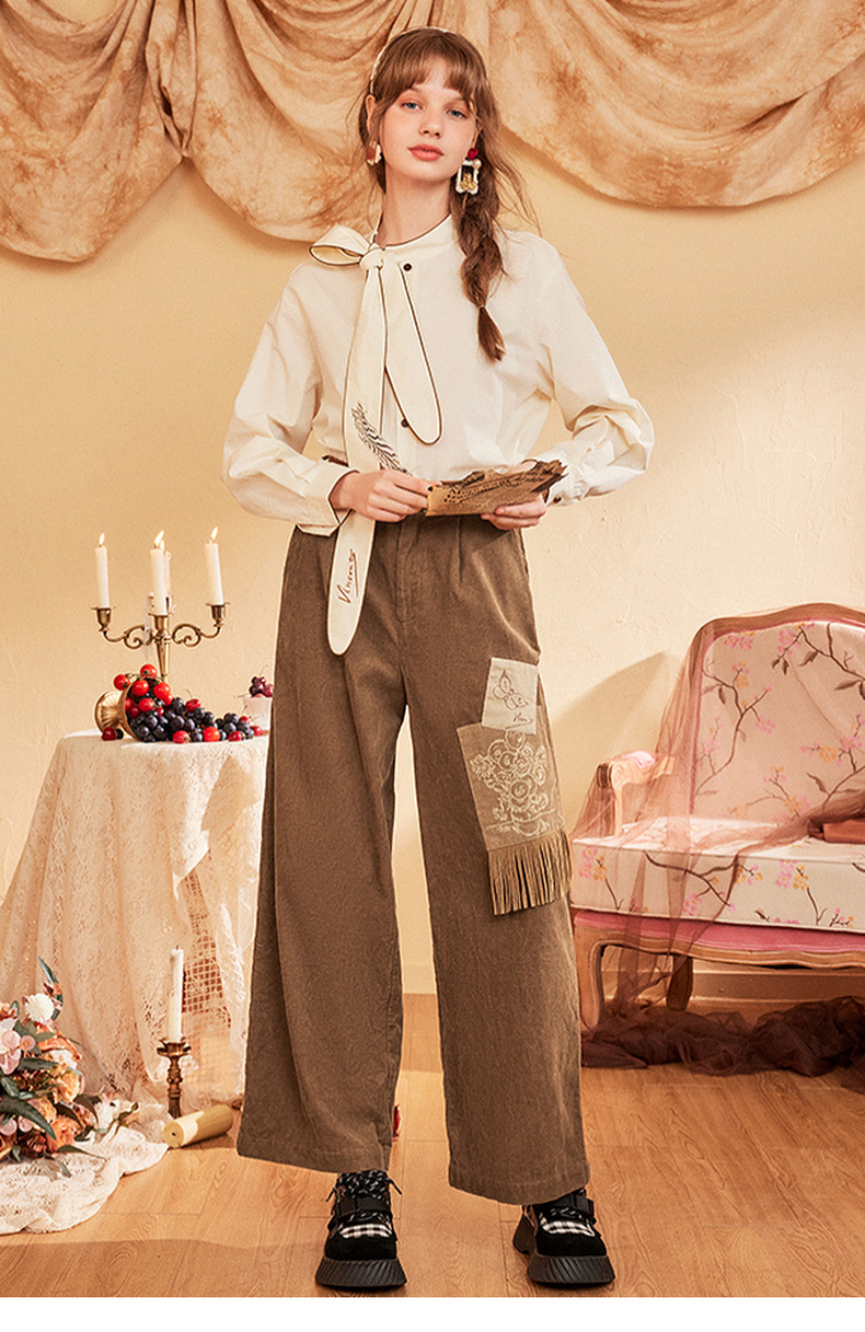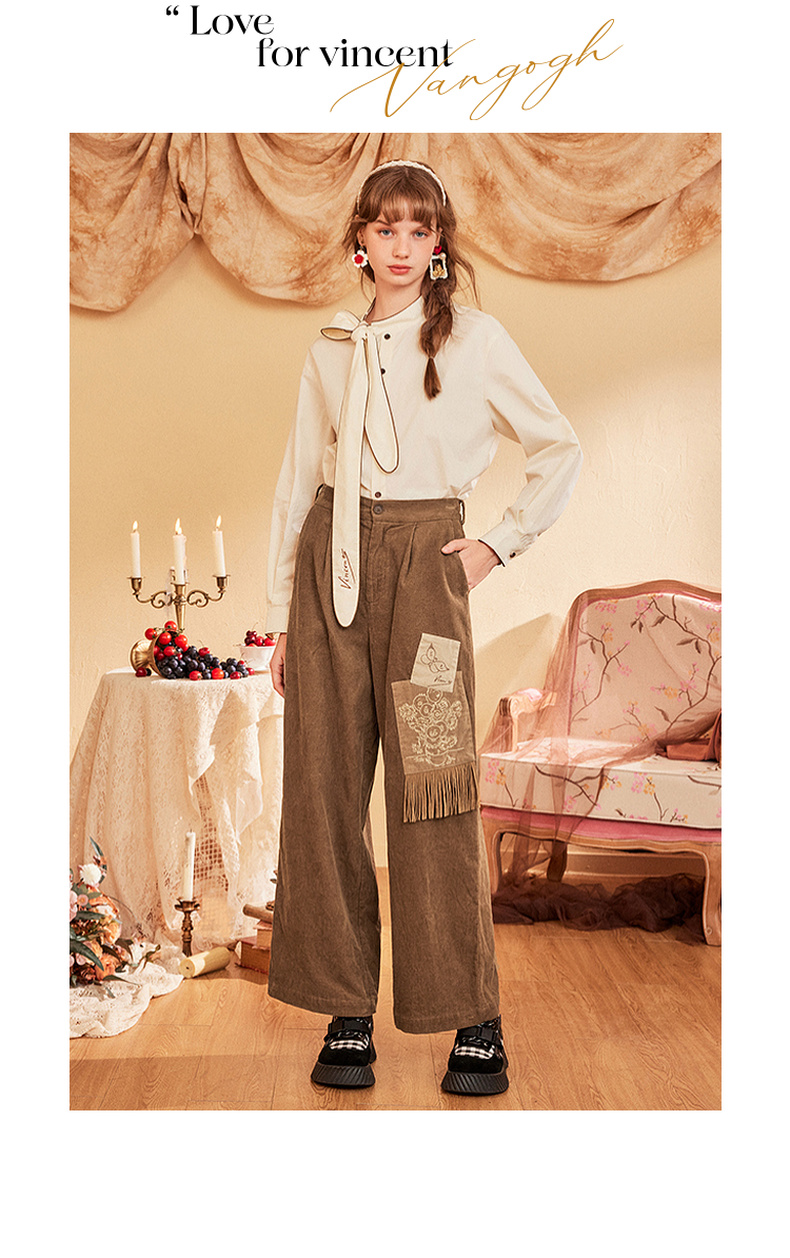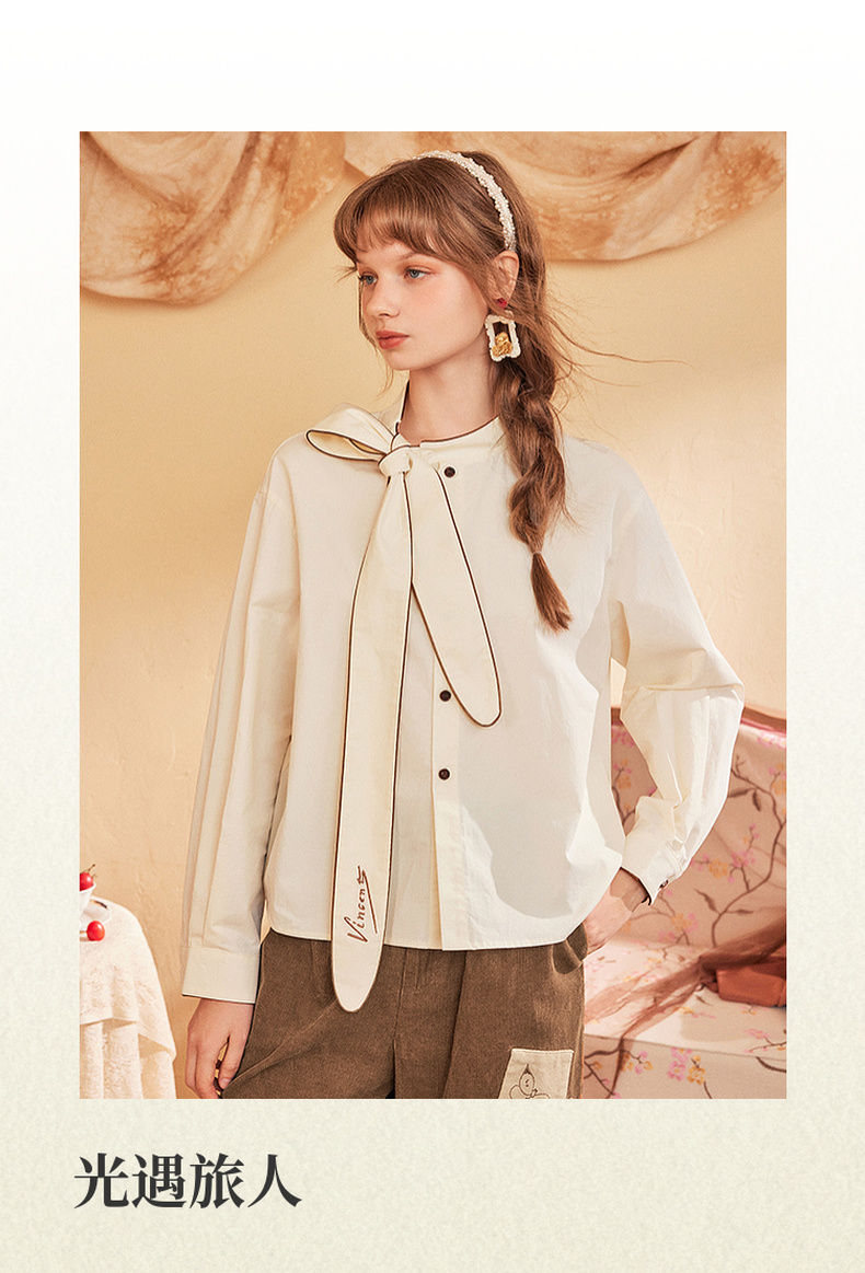两三事梵高文艺光遇旅人2024秋季新款字母刺绣绑带领衬衫女宽松