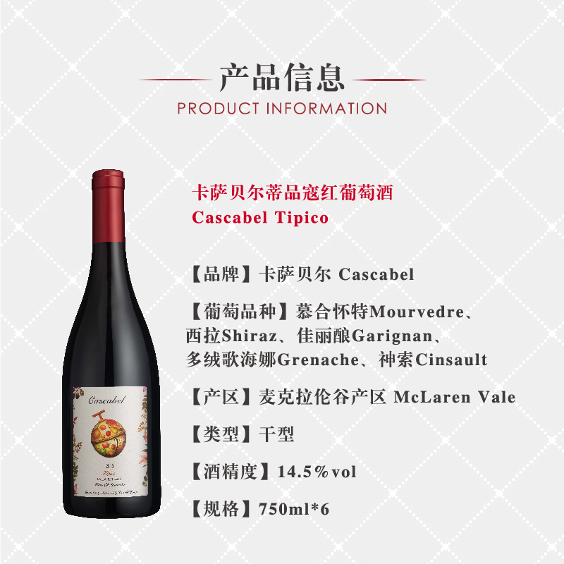 澳大利亚卡萨贝尔蒂品蔻红葡萄酒750ml*6