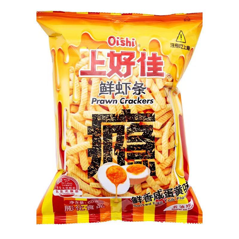 上好佳鲜虾片鲜虾条、纤虾条组合装(原味,咸蛋黄味,蒜香味,青花椒味)(60g-65g)*6袋