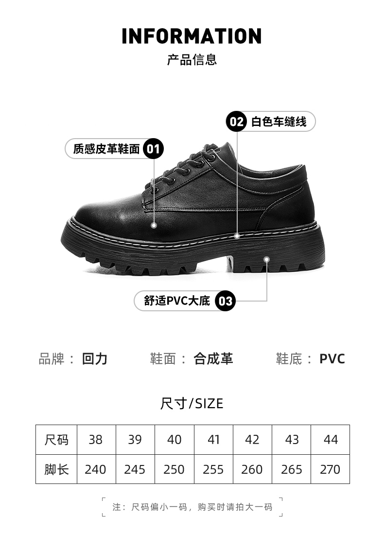 回力皮鞋英伦风马丁靴黑色小皮鞋休闲圆头男鞋2023新款鞋子WXP(WZ)-0827