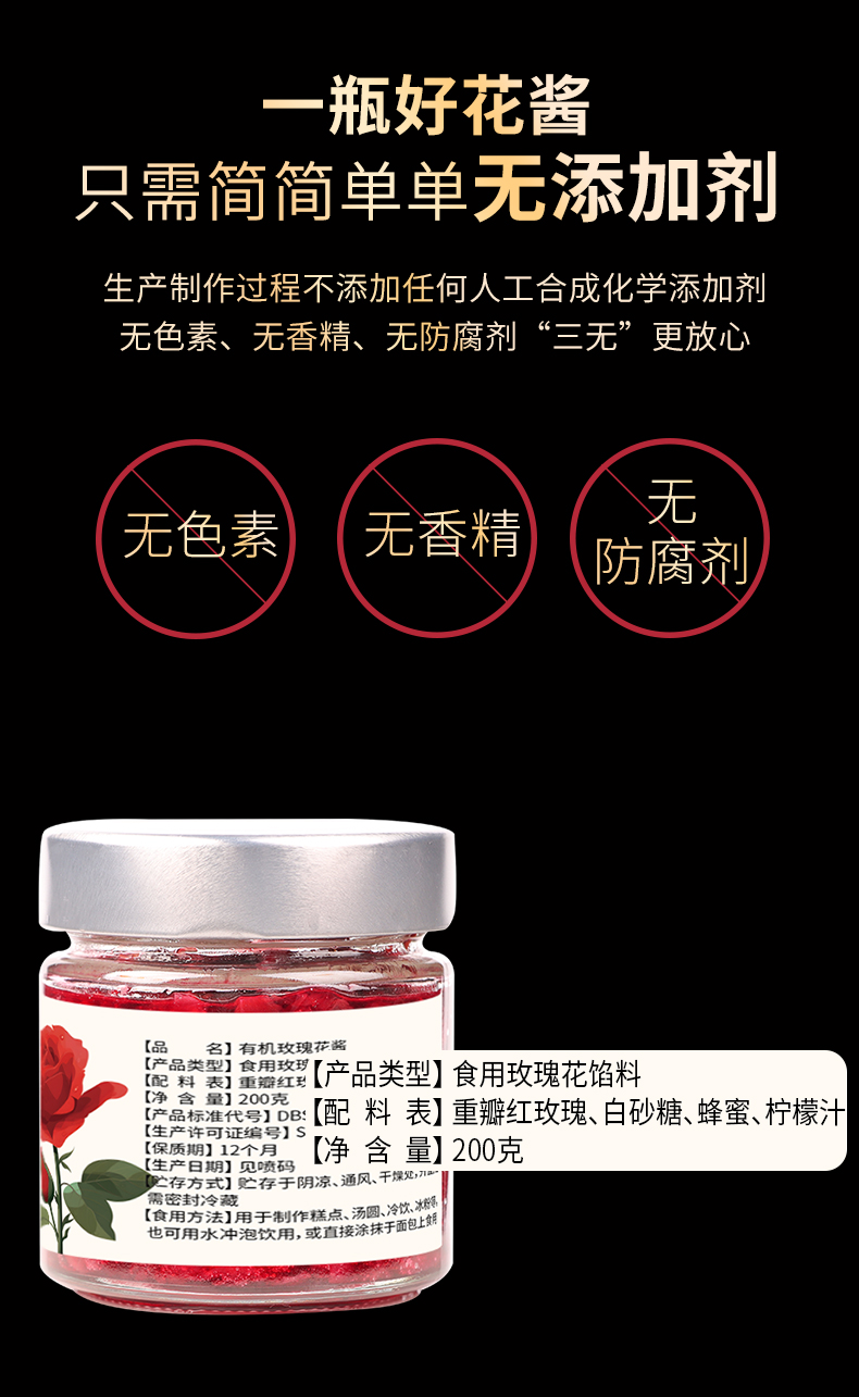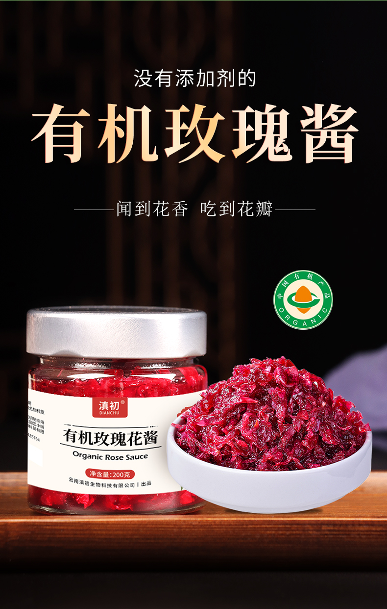 古训 有机玫瑰花酱 200g 云南鲜花饼甜品调味酱 冲饮抹面包蛋糕夹心