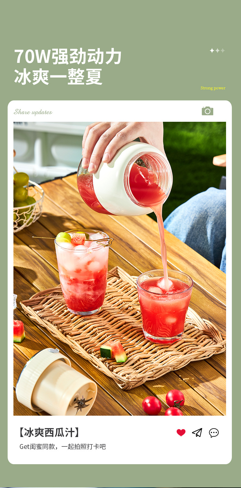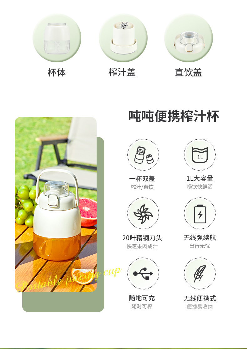 电动便携提手榨款汁机吨吨桶大容量果汁杯多功能学生800ml榨汁户外便携榨汁机