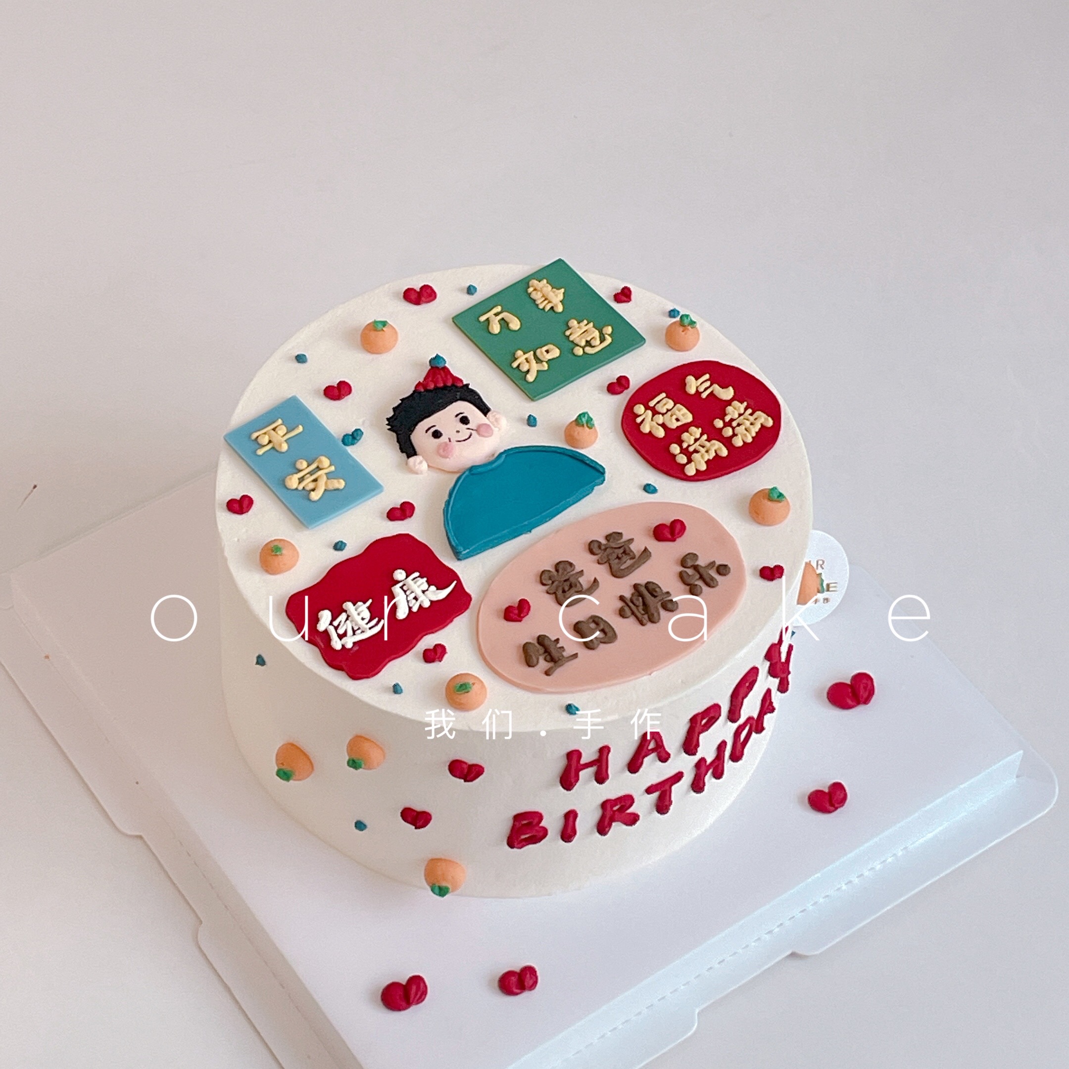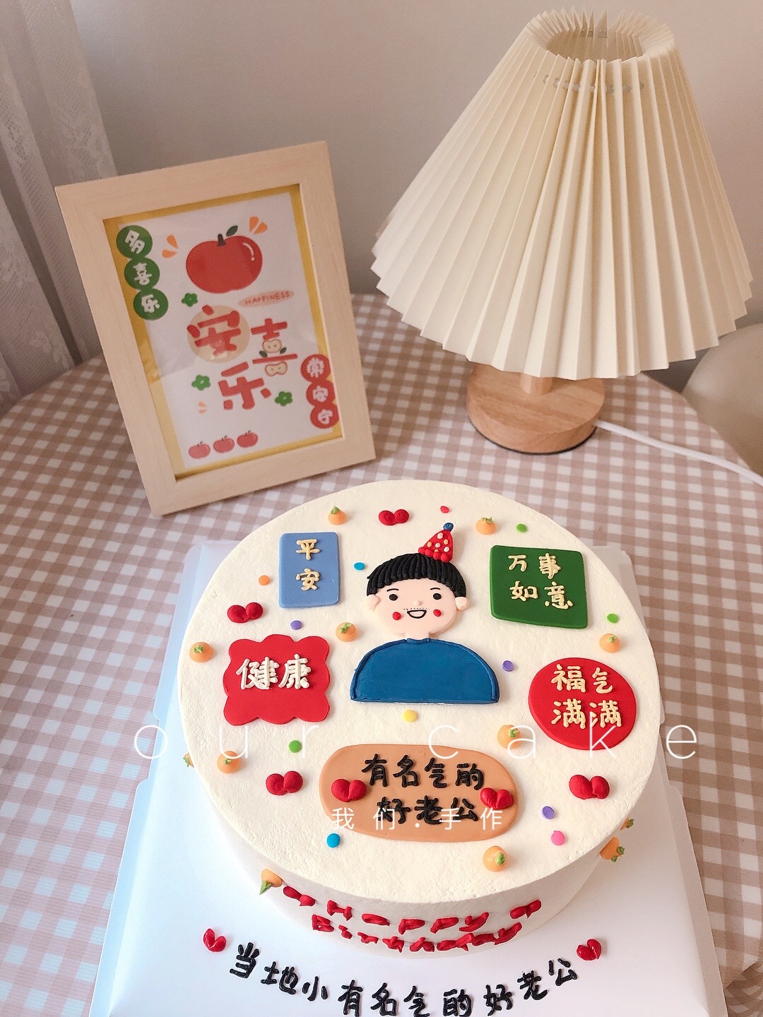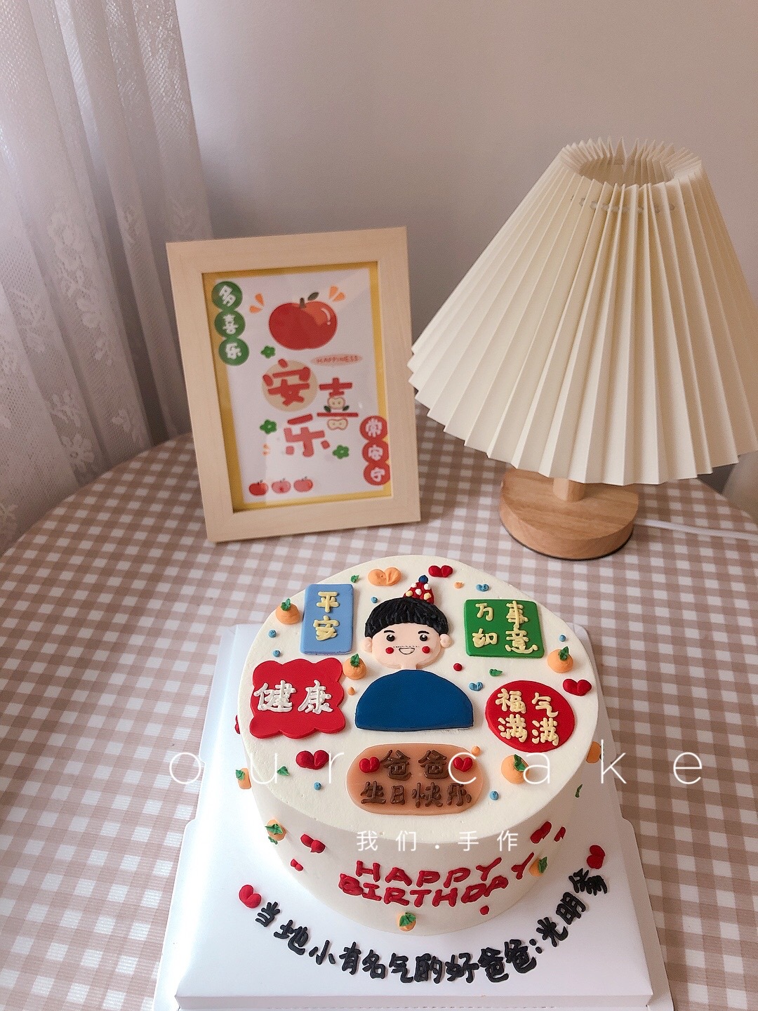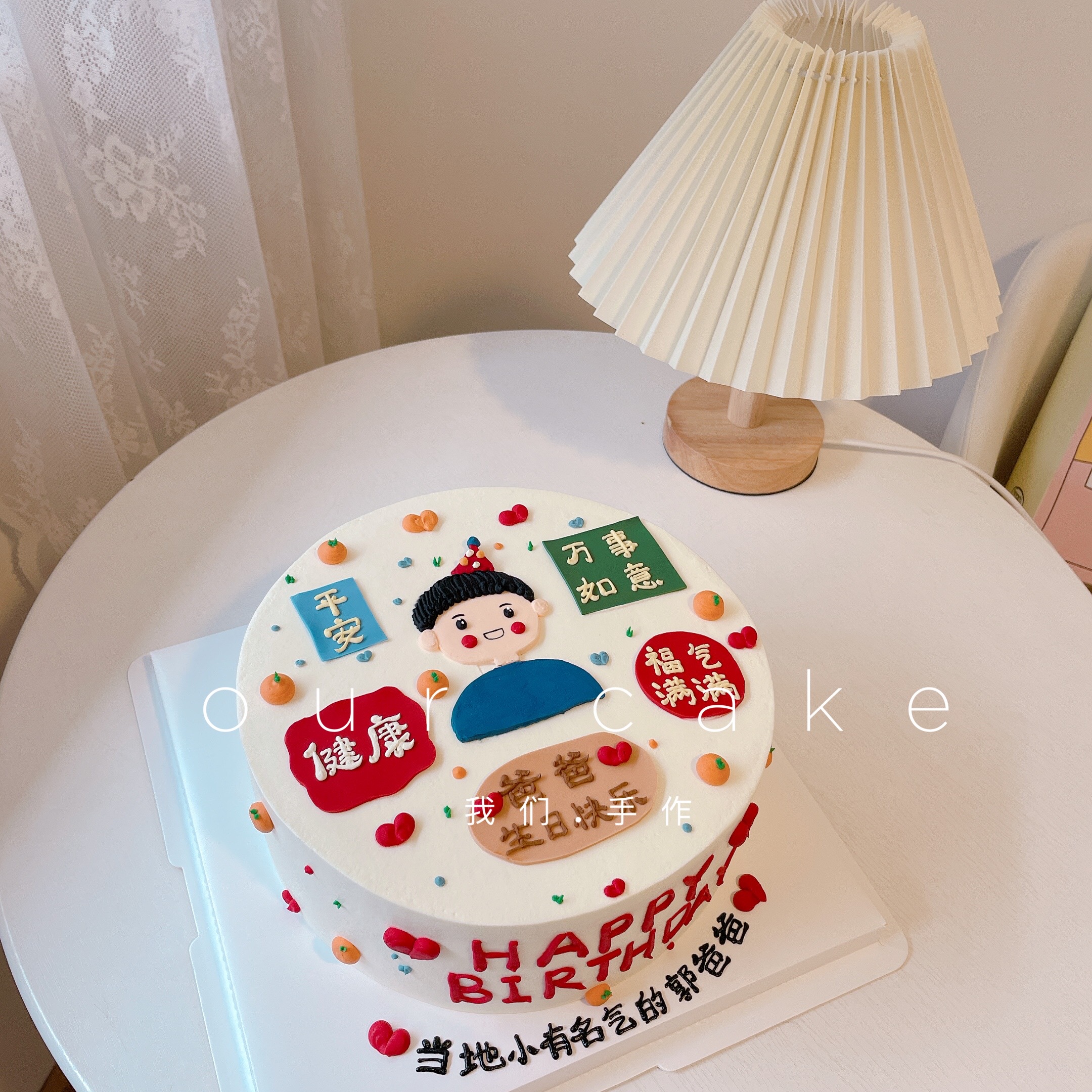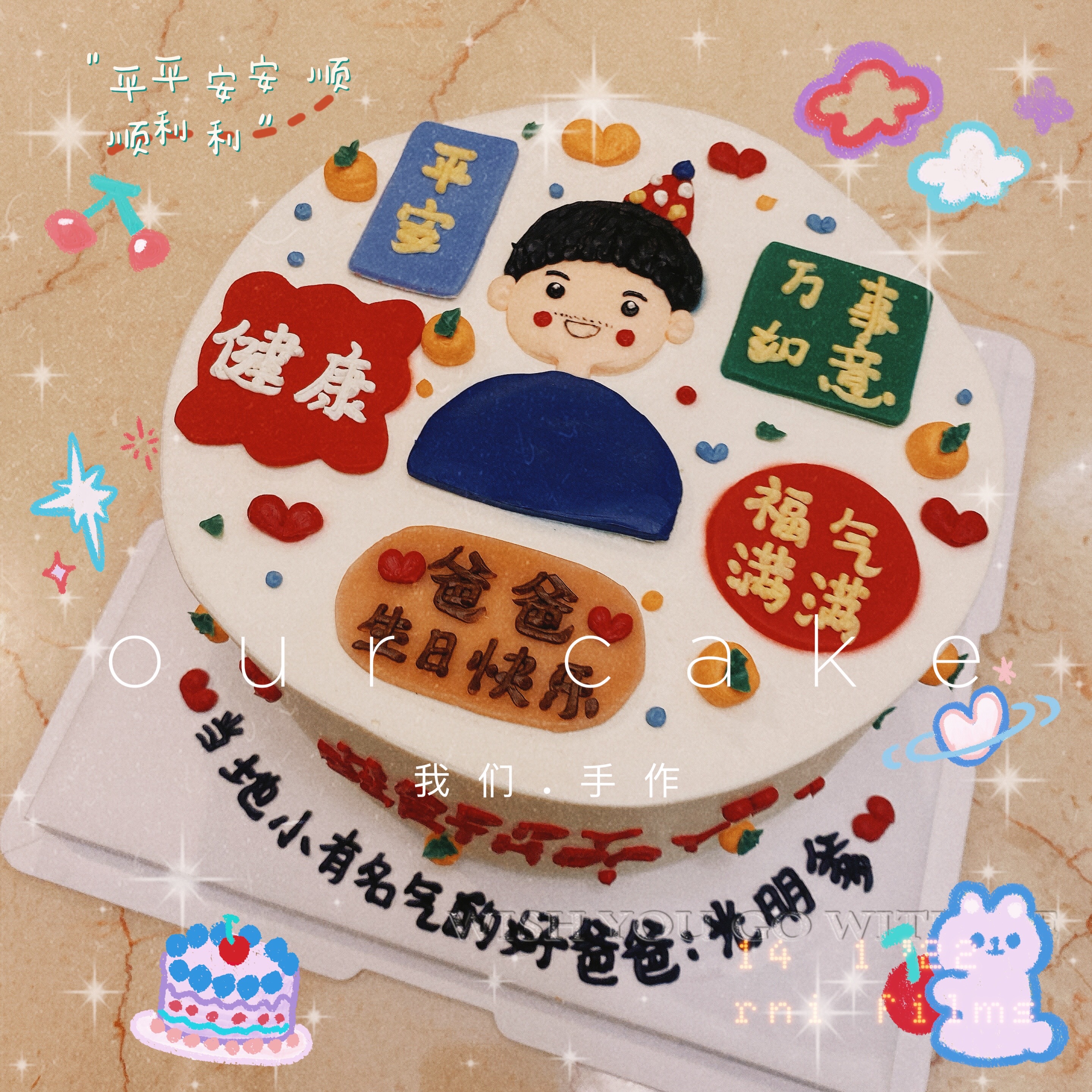 手绘男士+祝福语蛋糕送爸爸送老公-低糖处理无添加