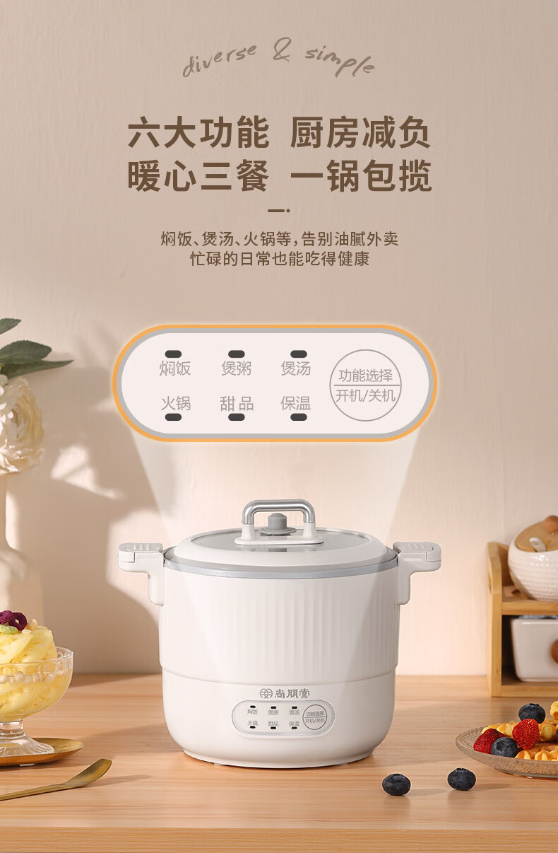 【多样屋专柜】尚朋堂电煮锅多功能宿舍学生煮面火锅煲粥多用锅1.2L
