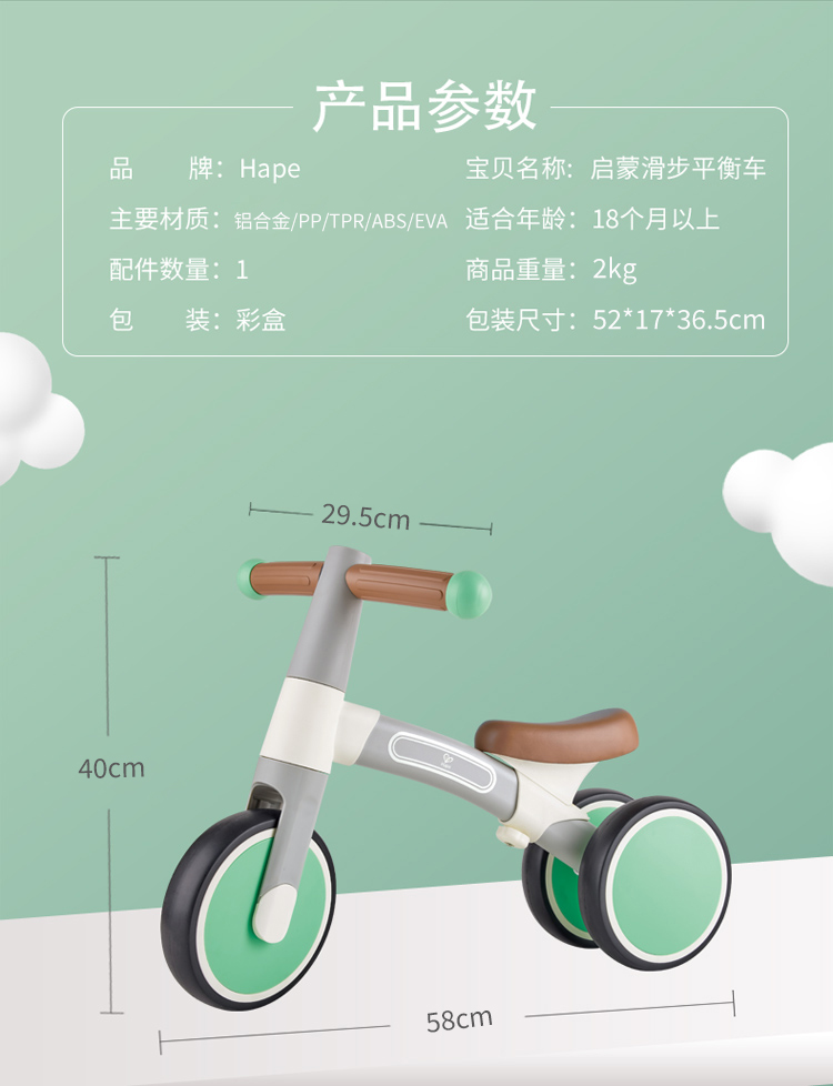 Hape平衡车儿童二合一2岁+入门宝宝滑步车玩具滑行车三轮车1一3岁