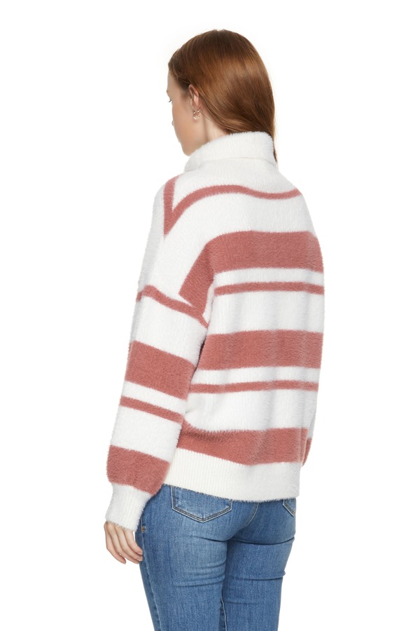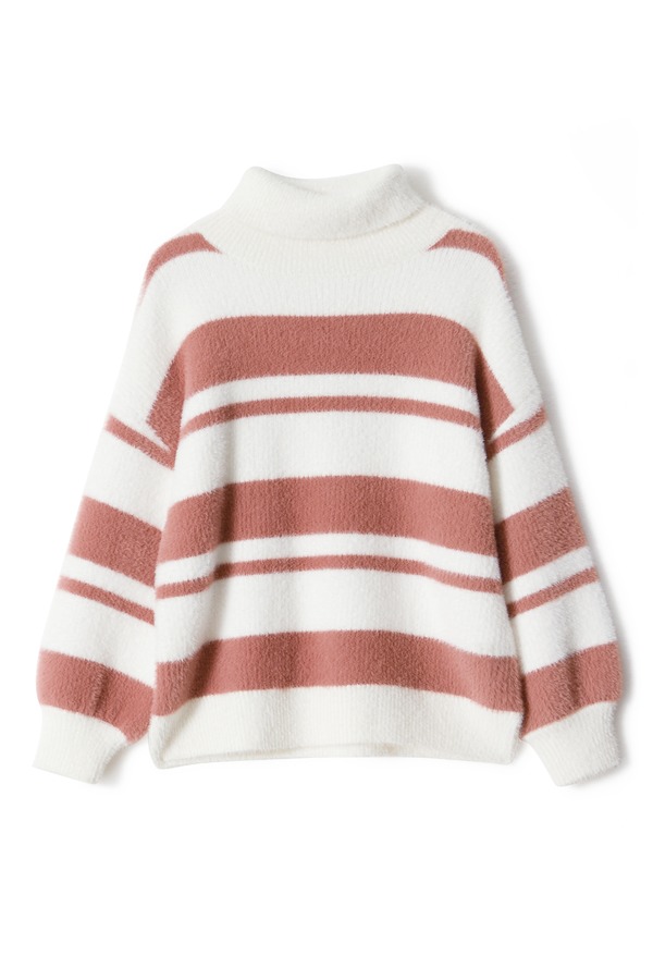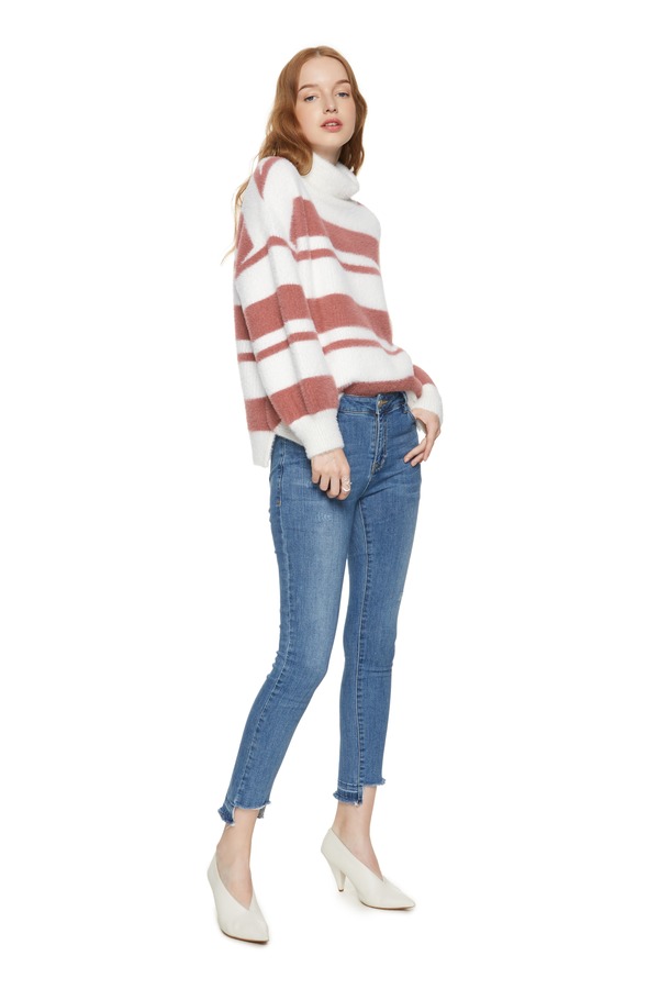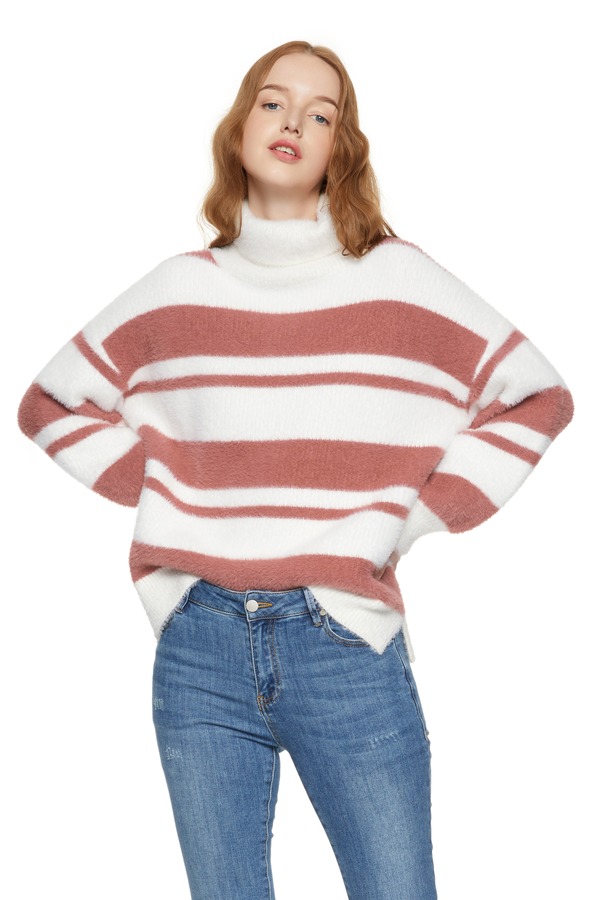 SUMMER & SAGE 拼色条纹卷边高领毛衣 8121