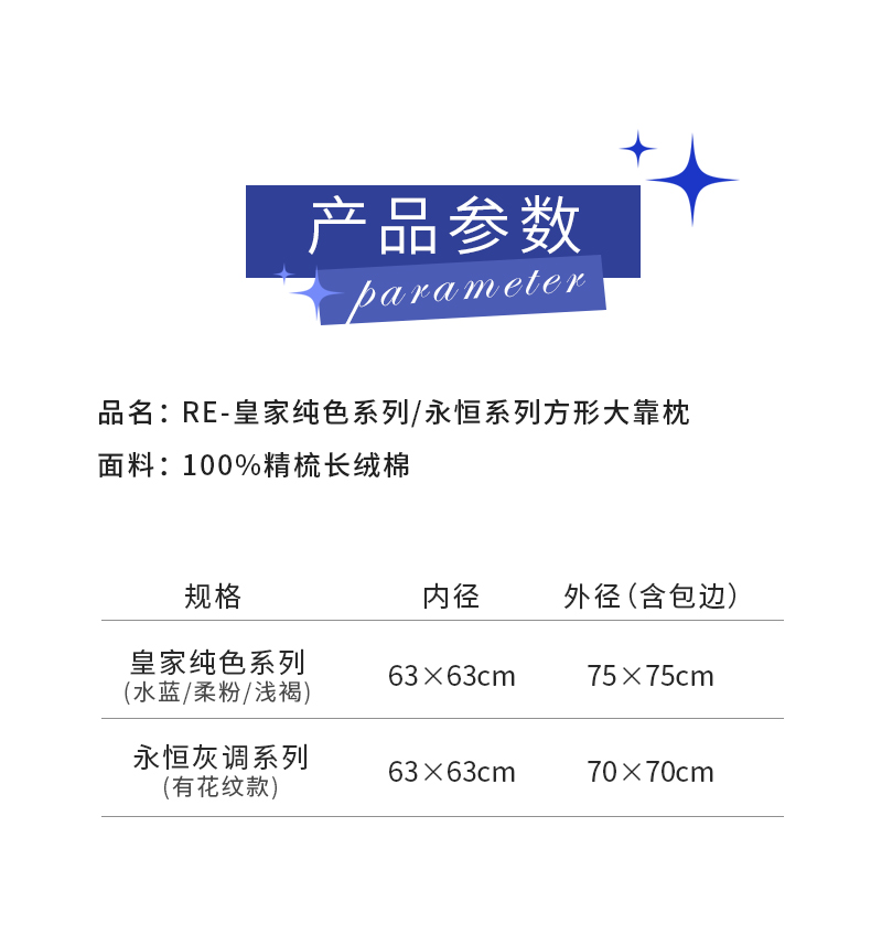 【Rêve par Essix】【Royal Bleu Glacier】皇家纯色-方形大靠枕(带芯)