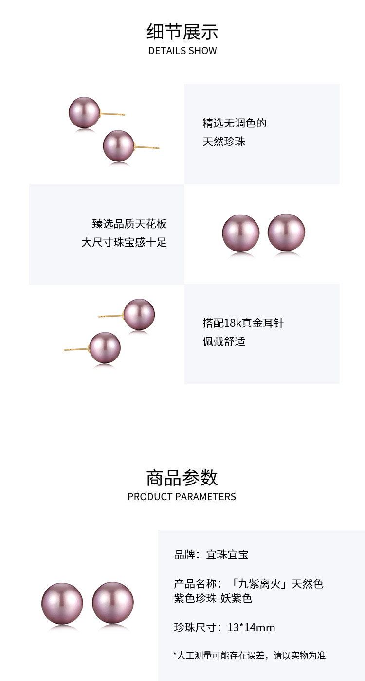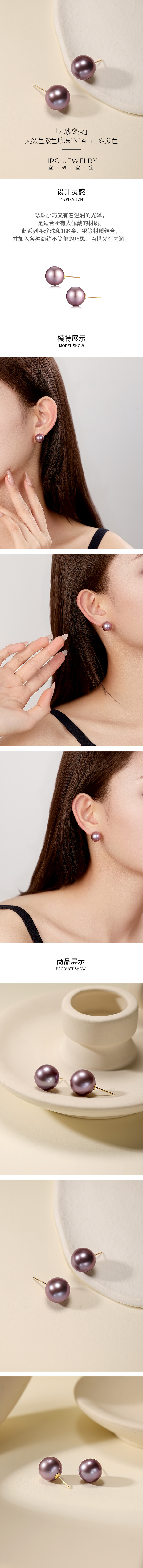 IIPO宜珠宜宝「九紫离火」天然色紫色珍珠13-14mm-妖紫色(礼盒装)