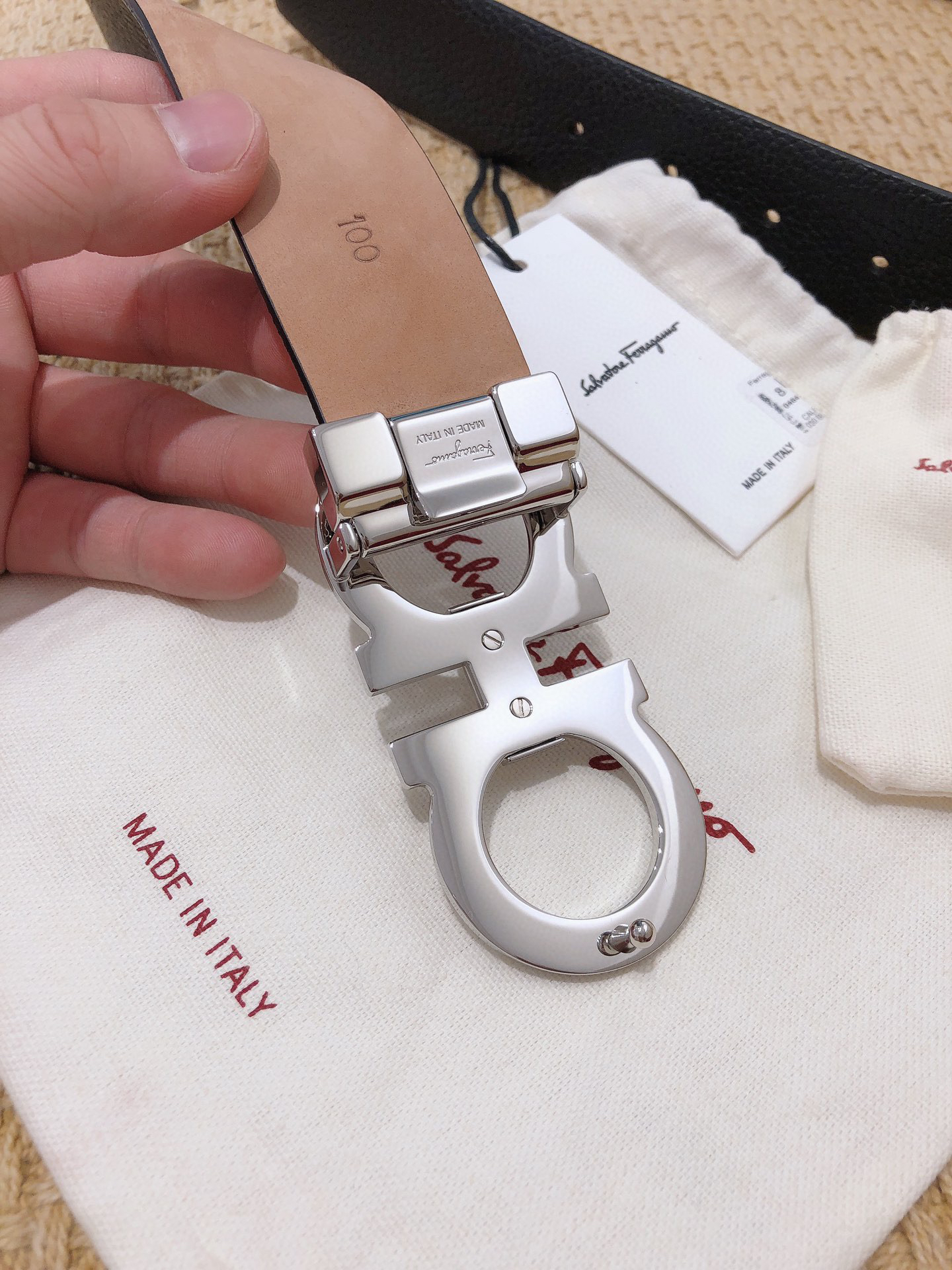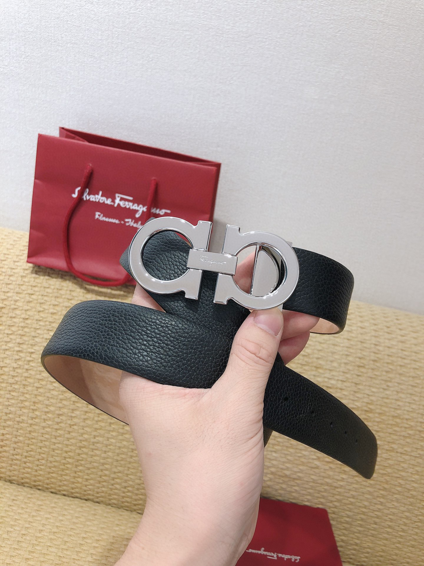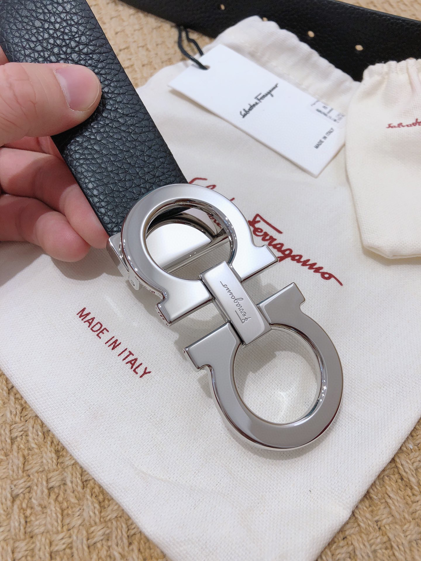 SF菲拉格慕-银色扣-荔枝纹+树膏皮