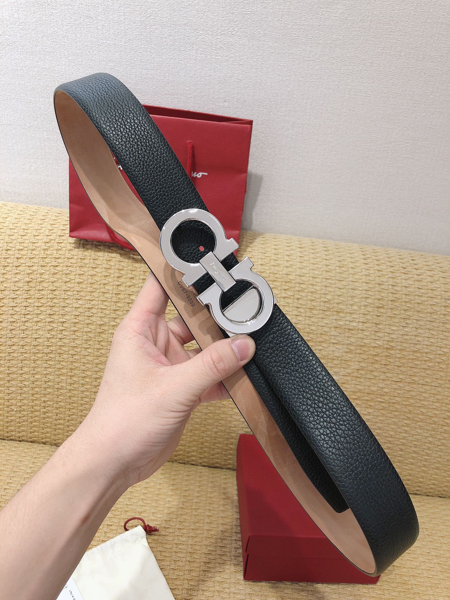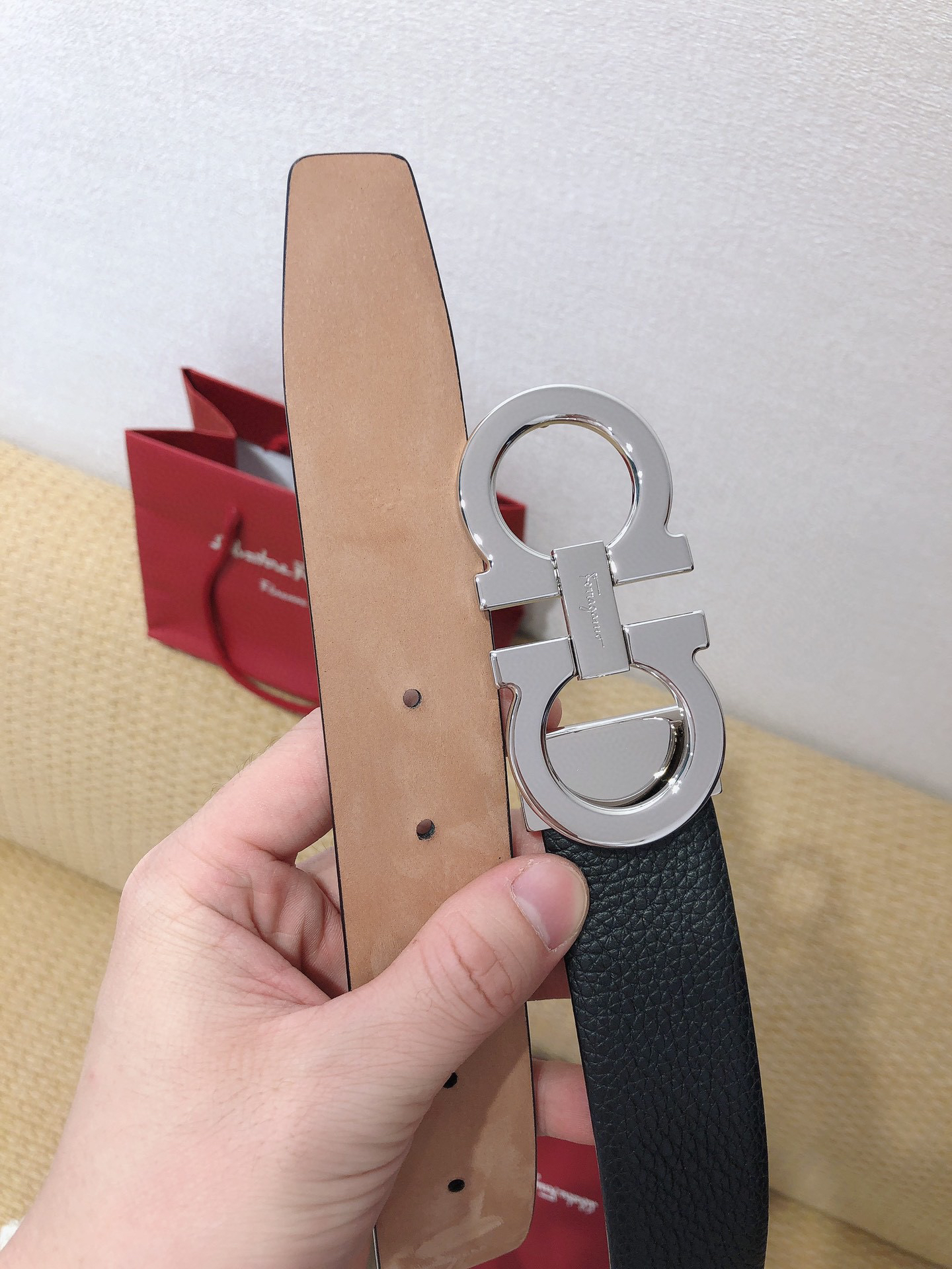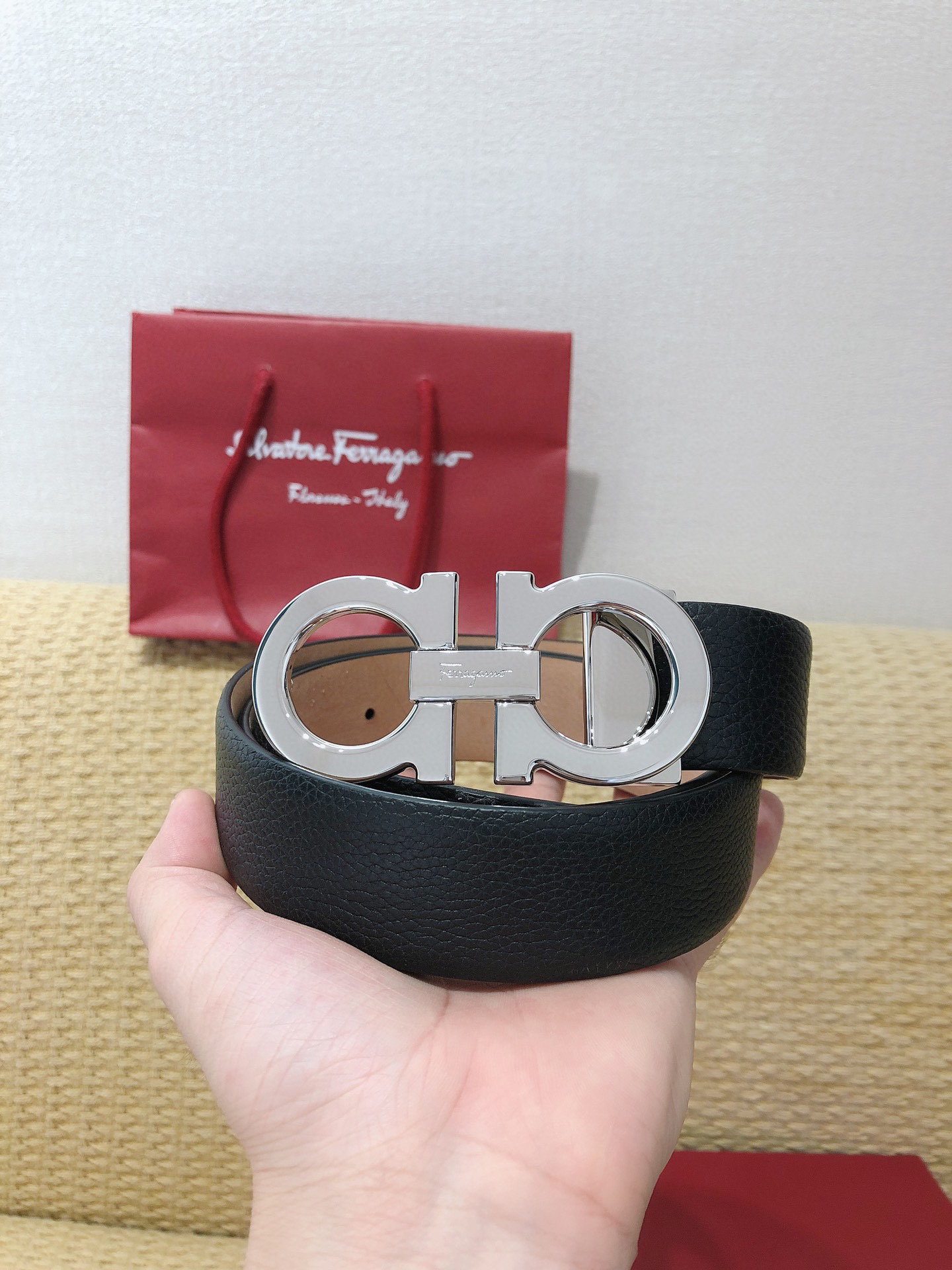 SF菲拉格慕-银色扣-荔枝纹+树膏皮
