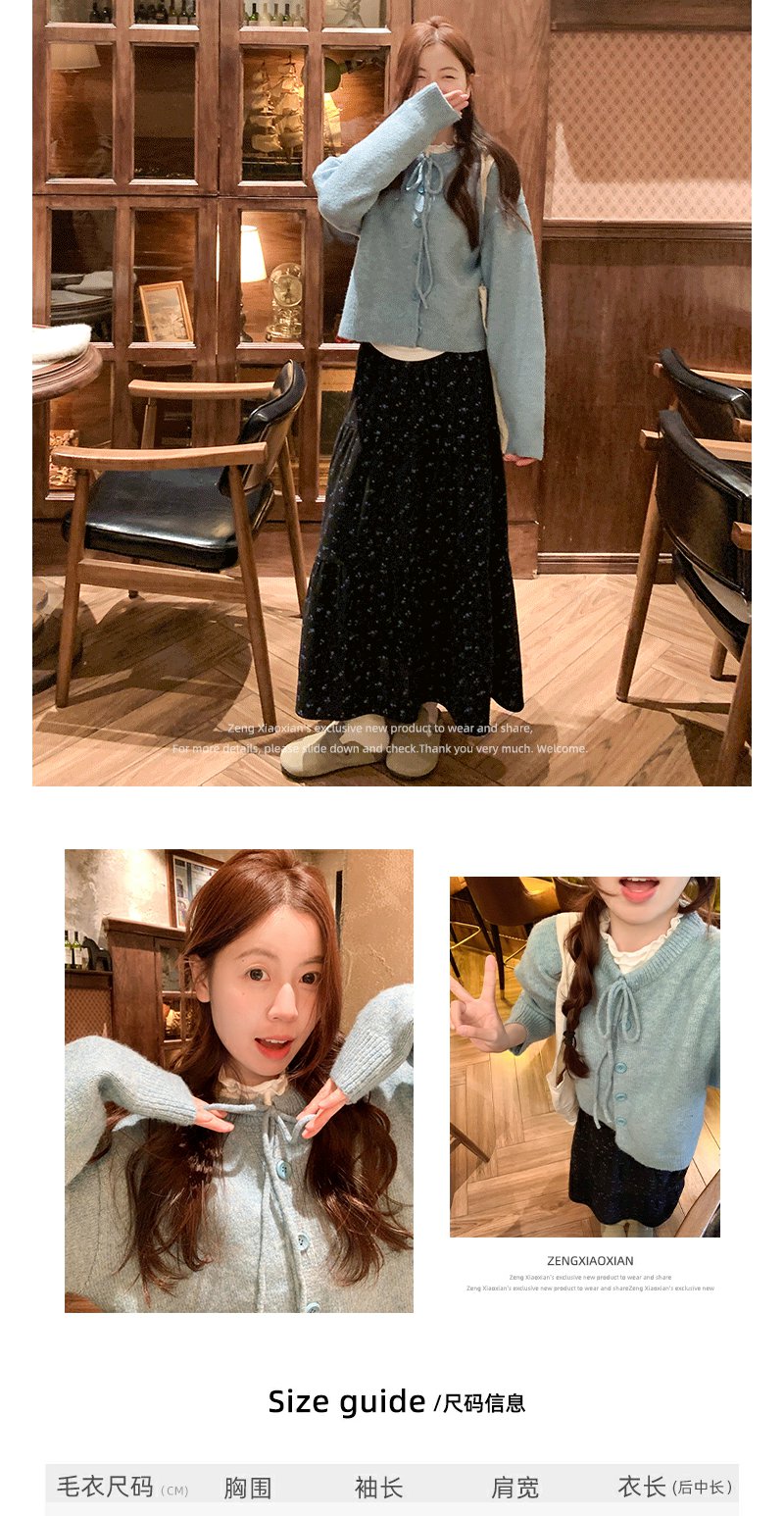 <曾小咸推荐> 现货秒杀!微信超特价!蓝色蝴蝶结短款毛衣开衫 日常179.99 立减90 秒杀89.99!