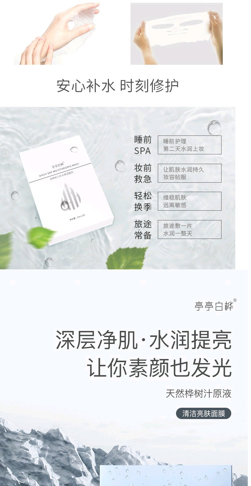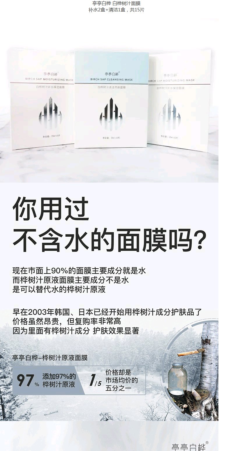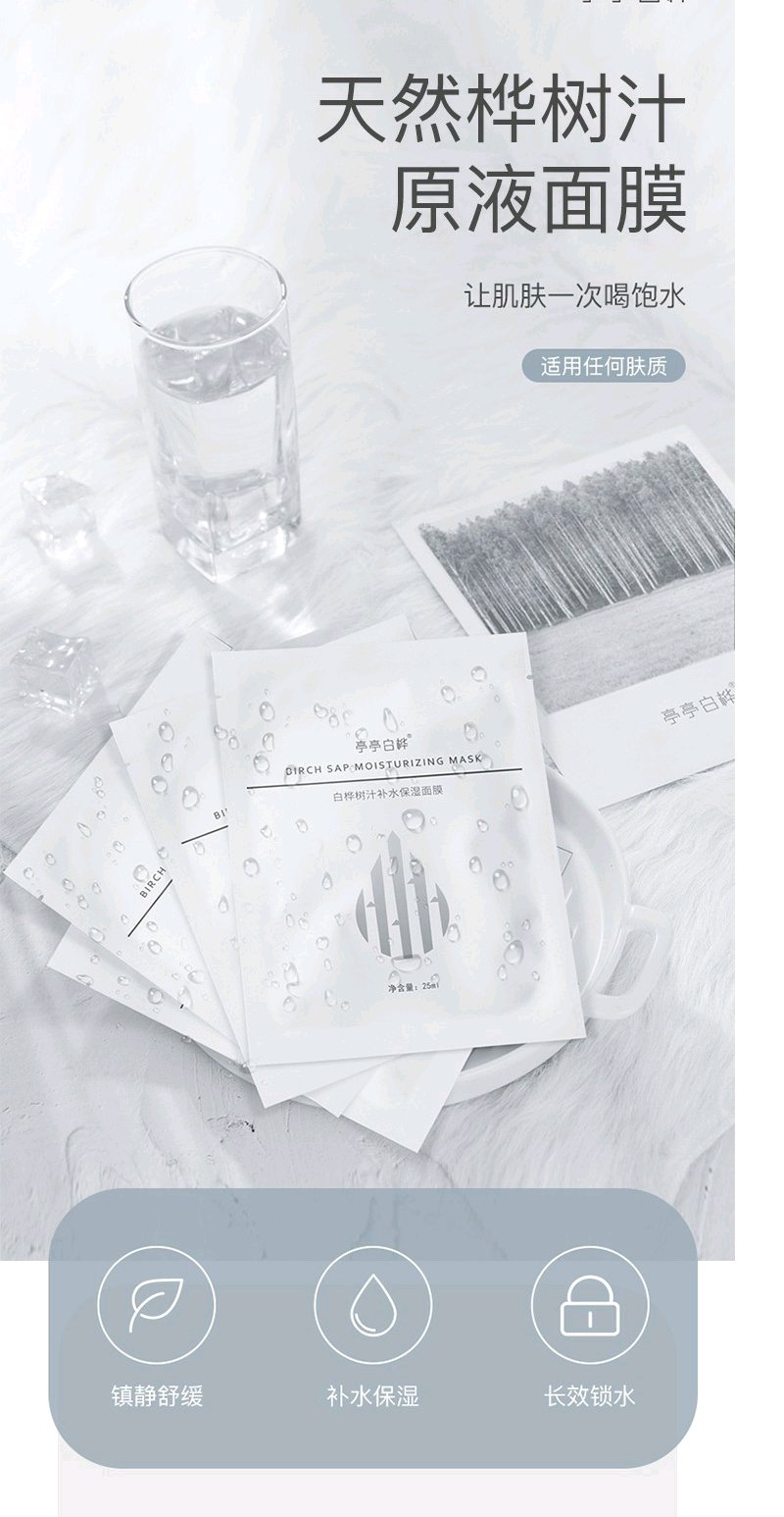 【不含水的面膜】亭亭白桦天然桦树汁原液面膜补水面膜*2+清洁面膜*1补水清洁组合装补水修护